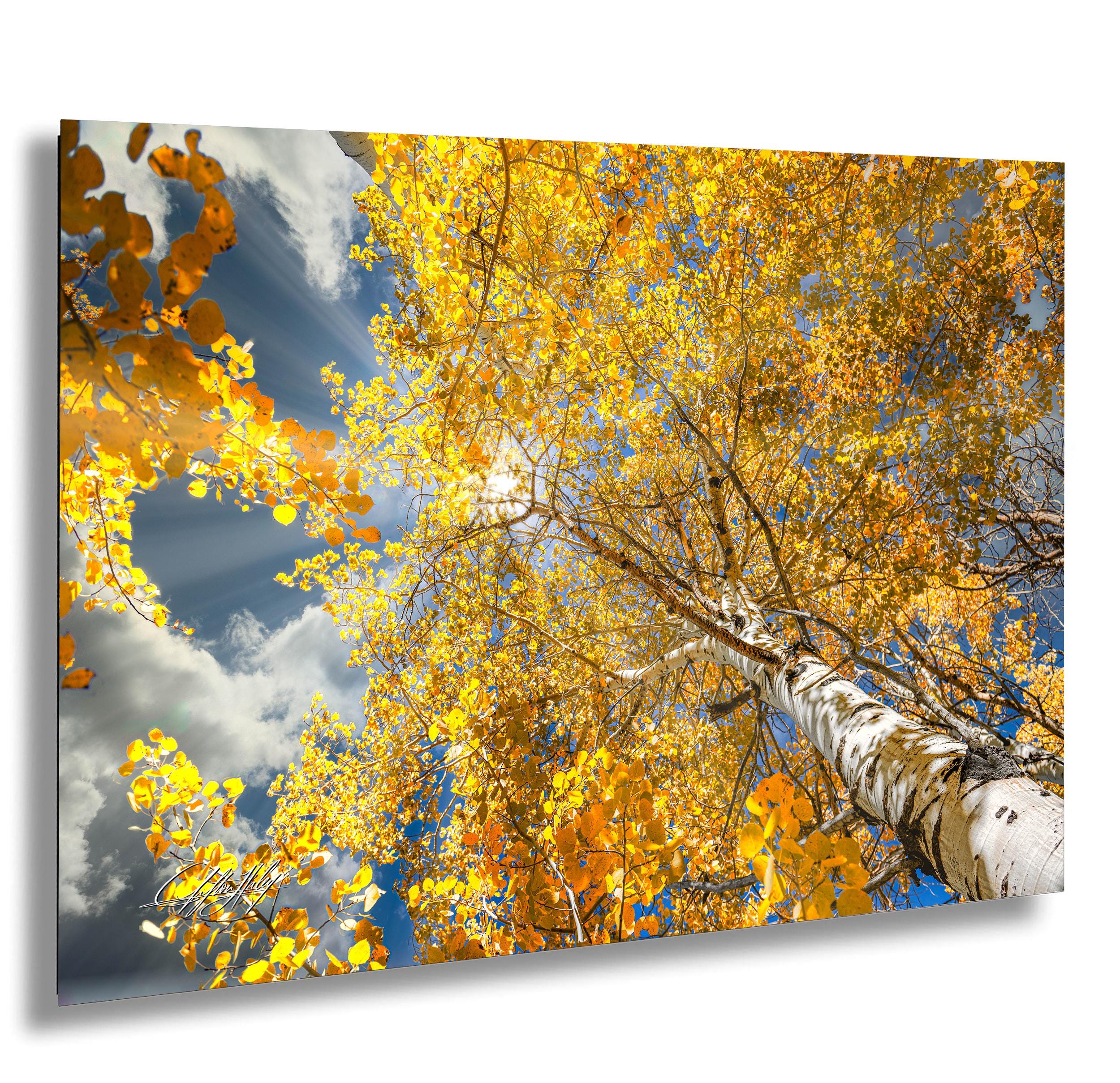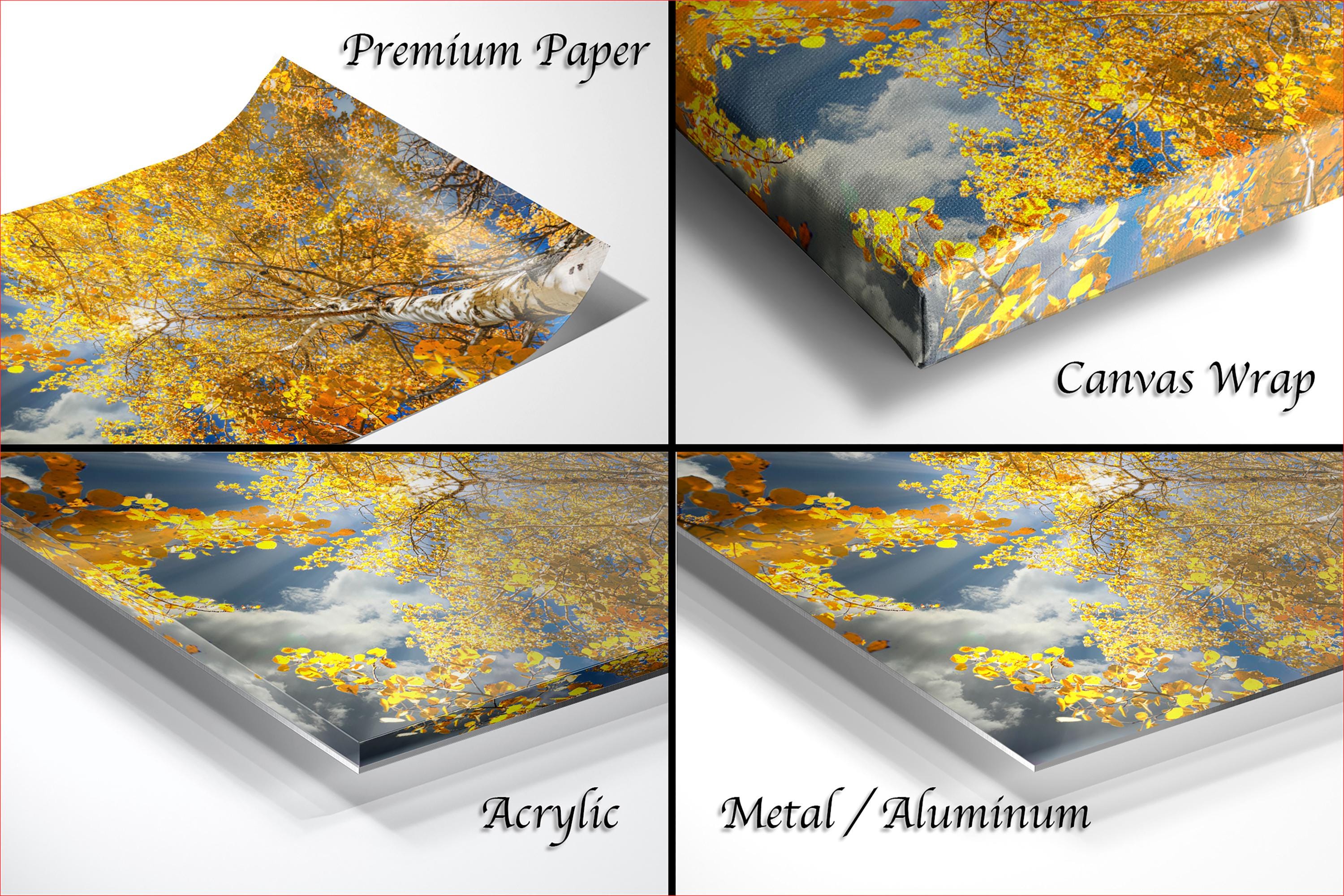 Immerse yourself in this stunning artwork that brings the essence of autumn in the Rockies right into your home. This fine art piece features golden aspen leaves in their full glory, inspired by the breathtaking landscapes of Park City, Utah. Whether you're looking for a lake house gift or a nature lover gift, this mountain wall art offers a serene escape to the wilderness.