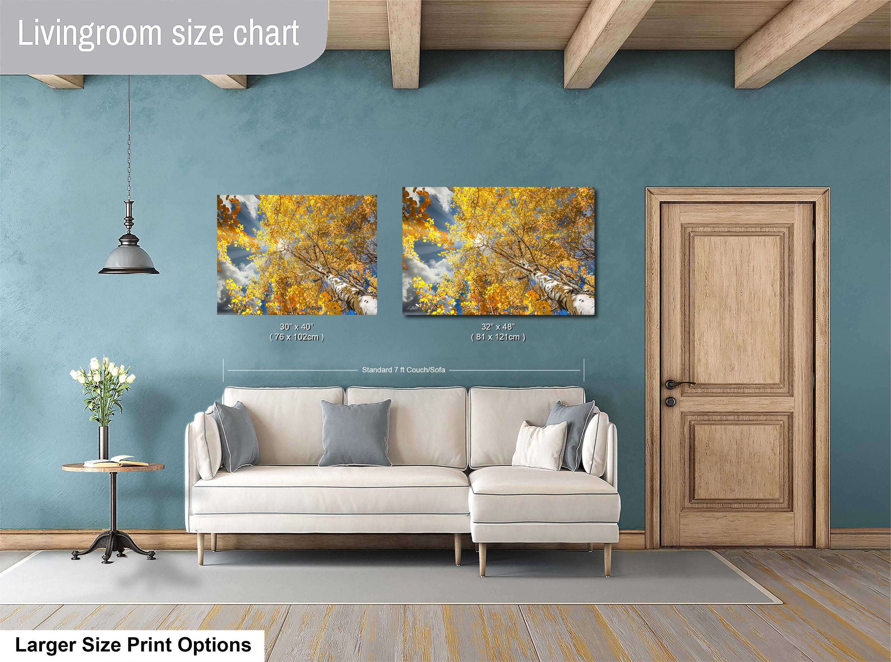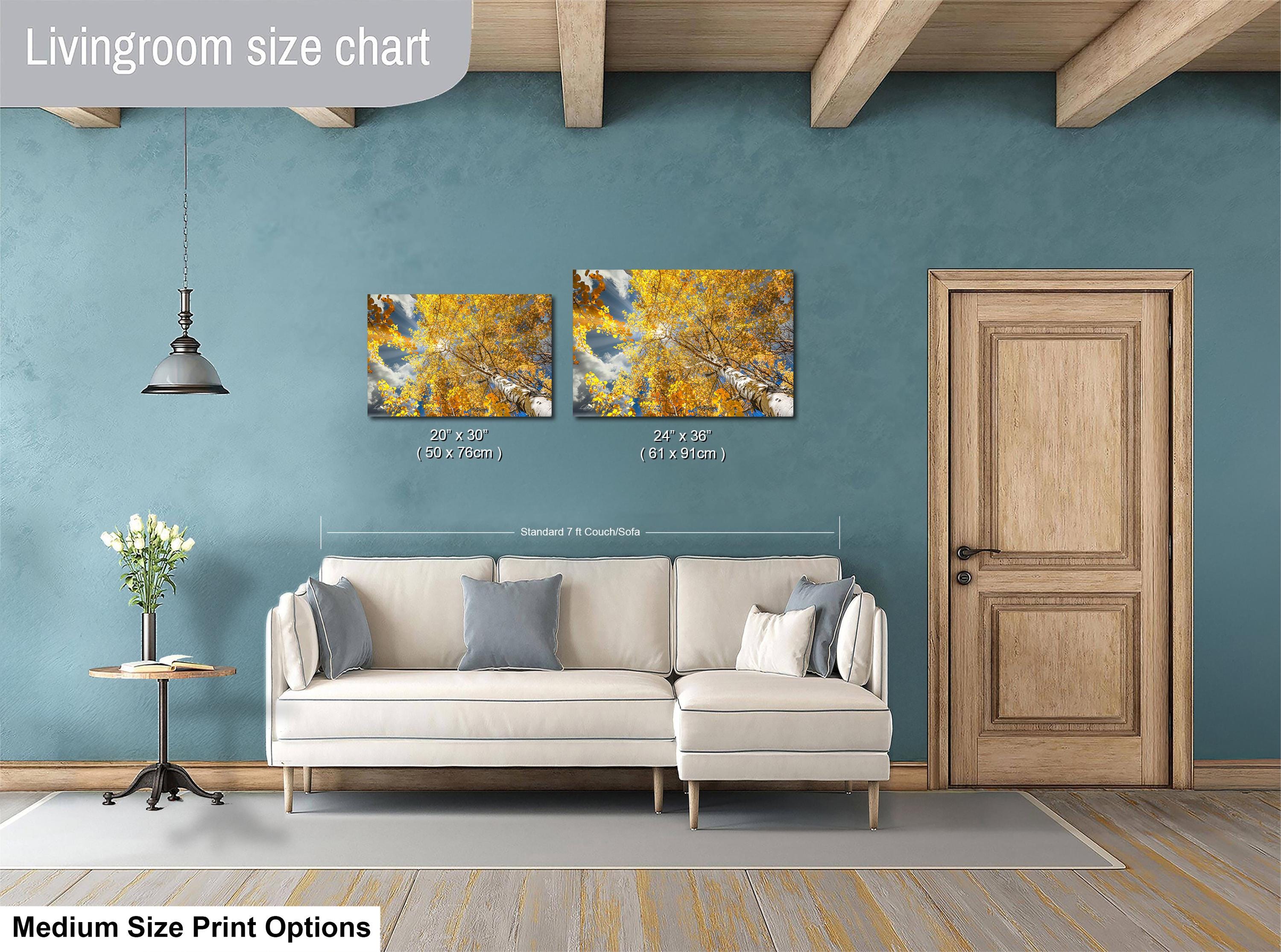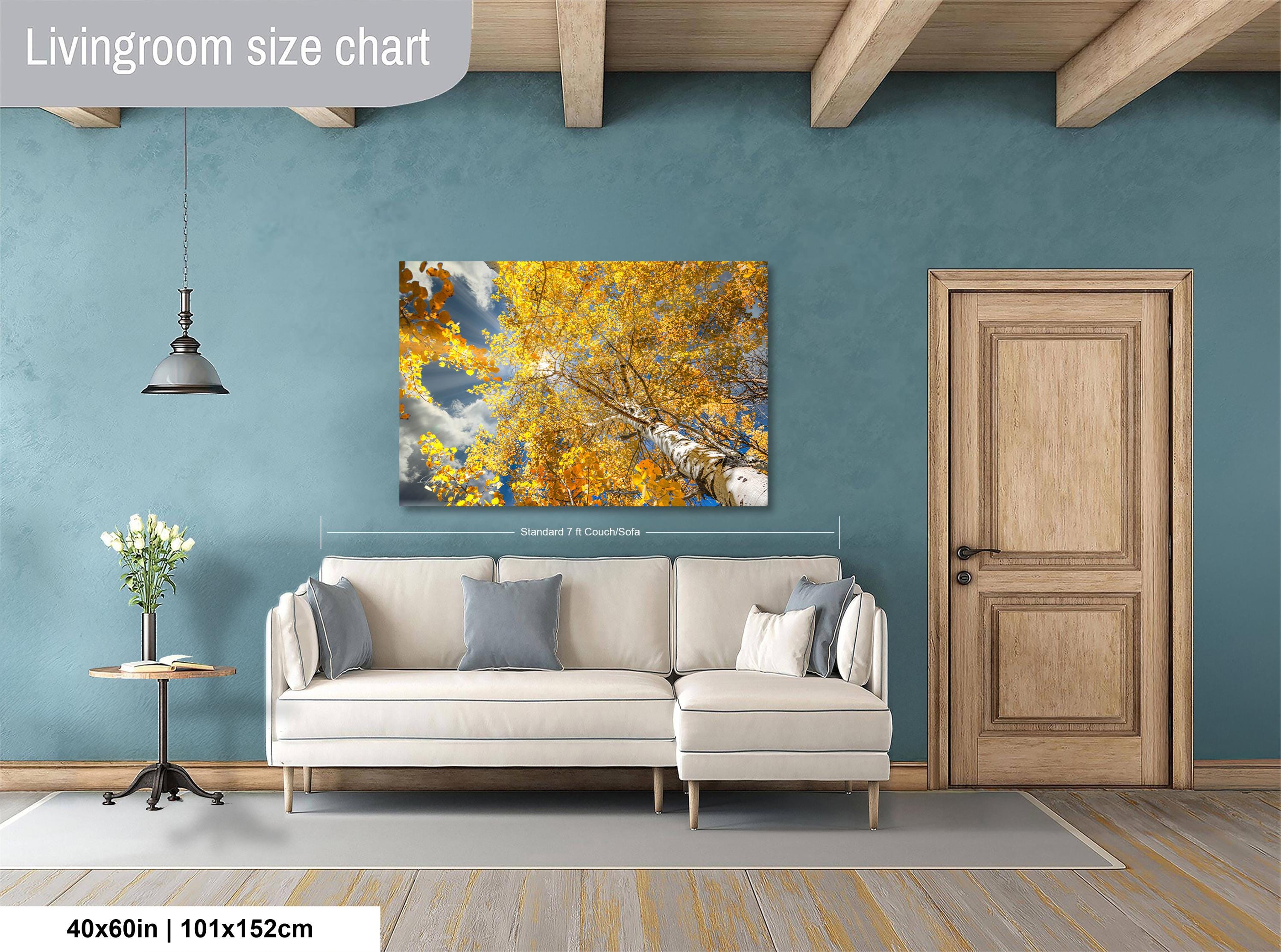 This autumn landscape art is designed to evoke the crisp mountain air and golden glow of fall aspens, perfect for adding warmth and character to any room. Please note that each piece is made-to-order; we do not accept returns but gladly offer exchanges or replacements if your artwork arrives damaged or with any issues.