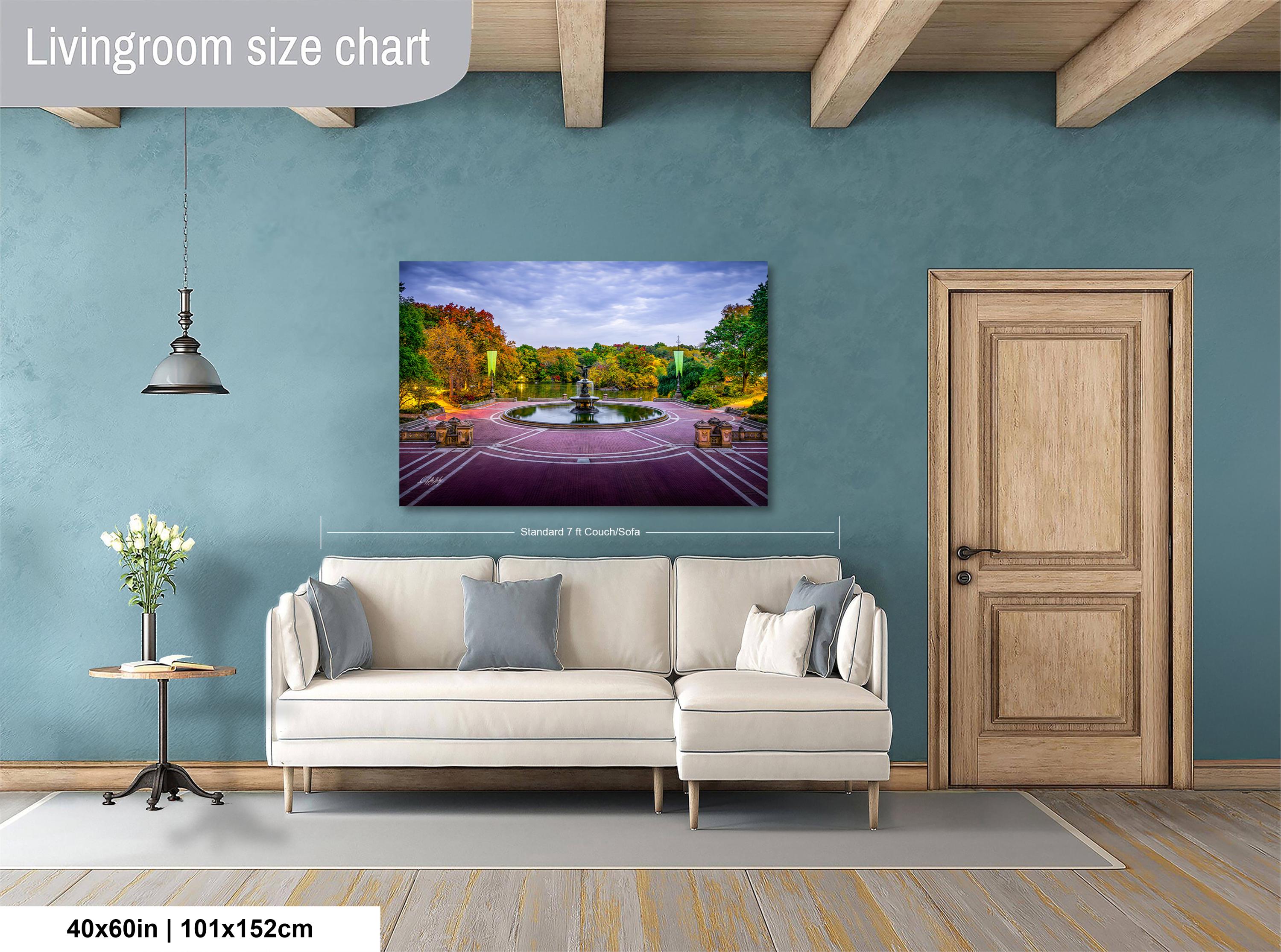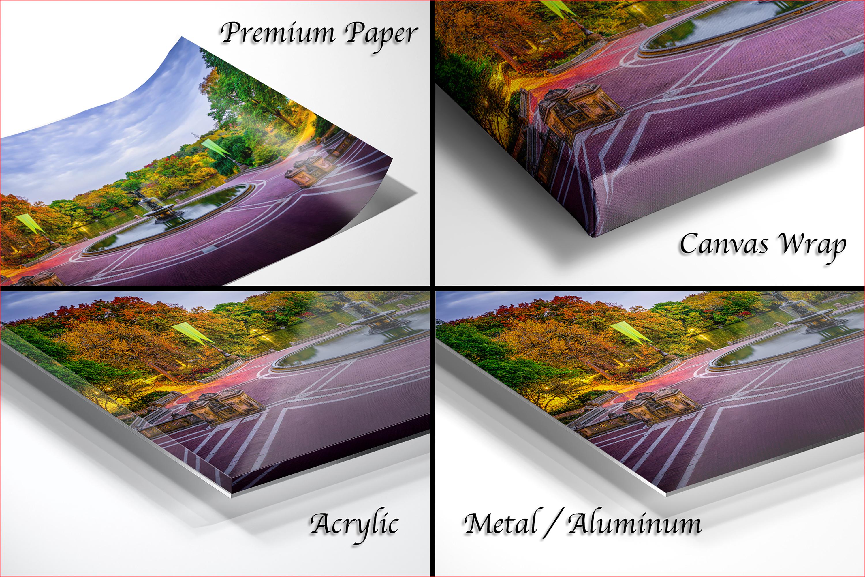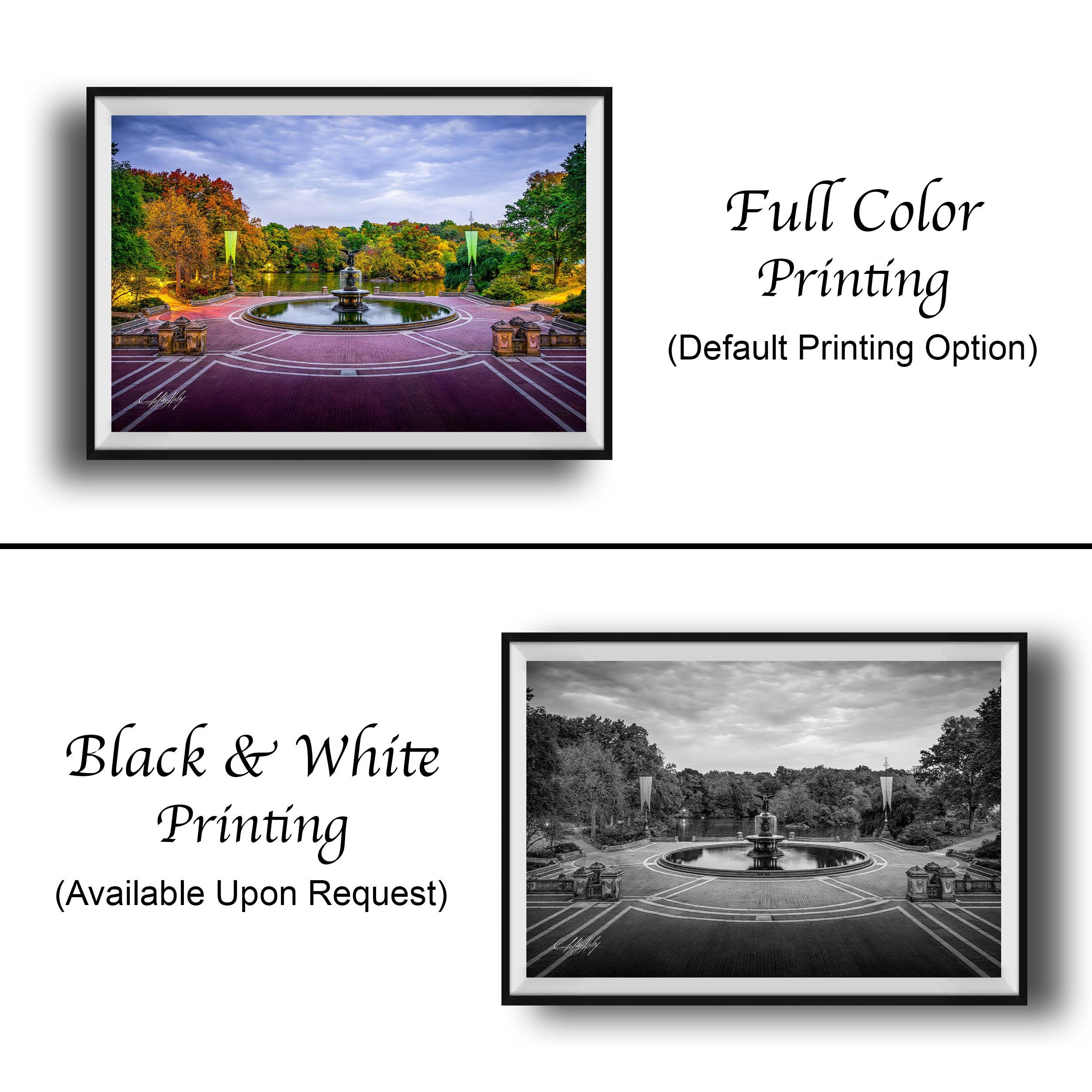 This custom fine artwork immortalizes a tranquil moment in the heart of New York City, blending urban nature with soft morning light to create a captivating cityscape fine art piece. Perfect for lovers of serene water features and tranquil park images, this print adds a touch of calm and elegance to any space.