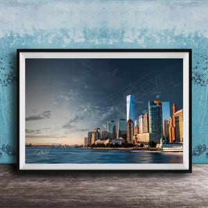 Infuse your space with the vibrant energy of New York City through this striking skyline wall art. Featuring the Empire State Building and Freedom Tower glowing at sunset, this print captures the city’s bold beauty as day turns to night. Perfect for Manhattan-inspired decor, it adds a modern, dynamic touch to any room.
