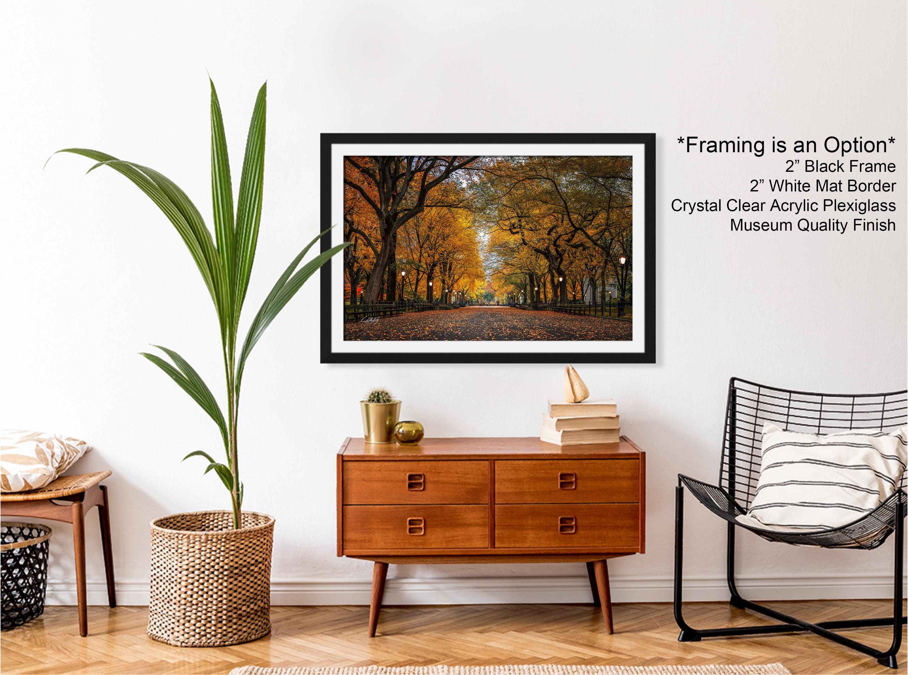 Central Park at The Mall reveals a breathtaking scene where nature and city life blend seamlessly. This autumn sunrise photo captures the golden light illuminating the iconic trees, embodying the spirit of New York City and the vibrant fall colors that define this urban oasis.