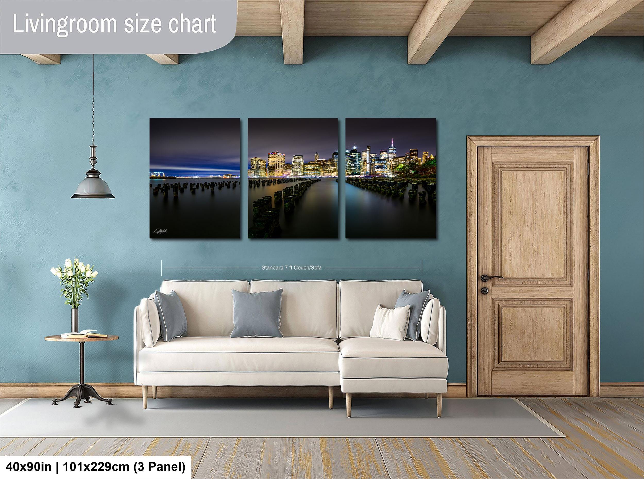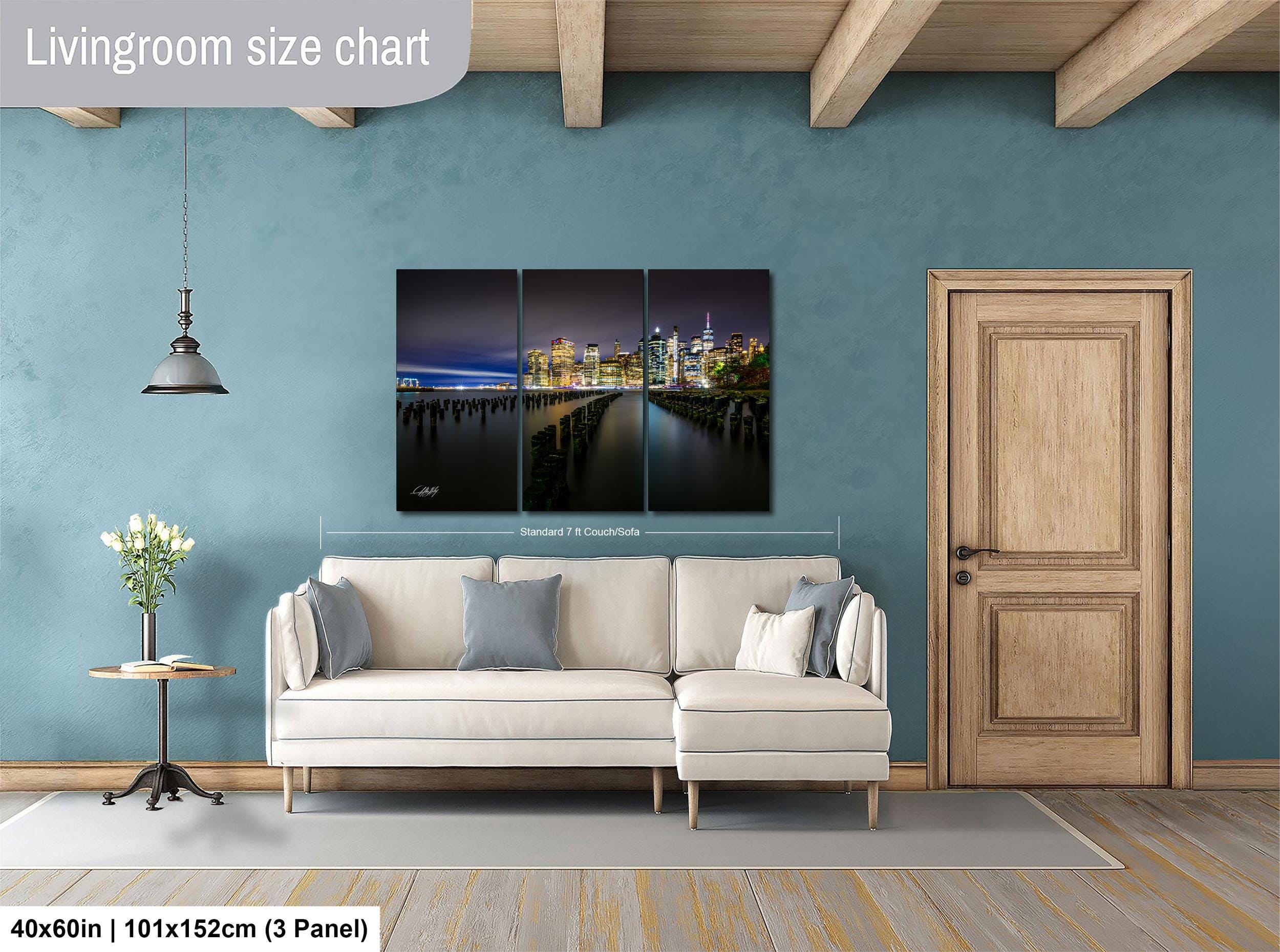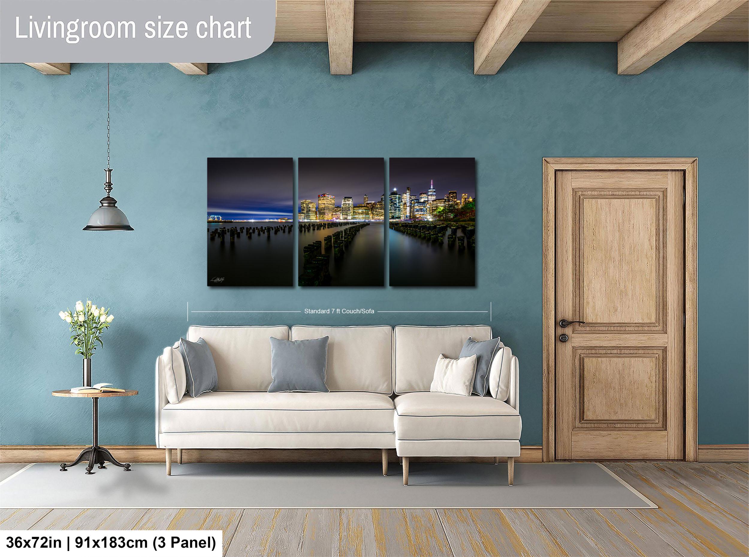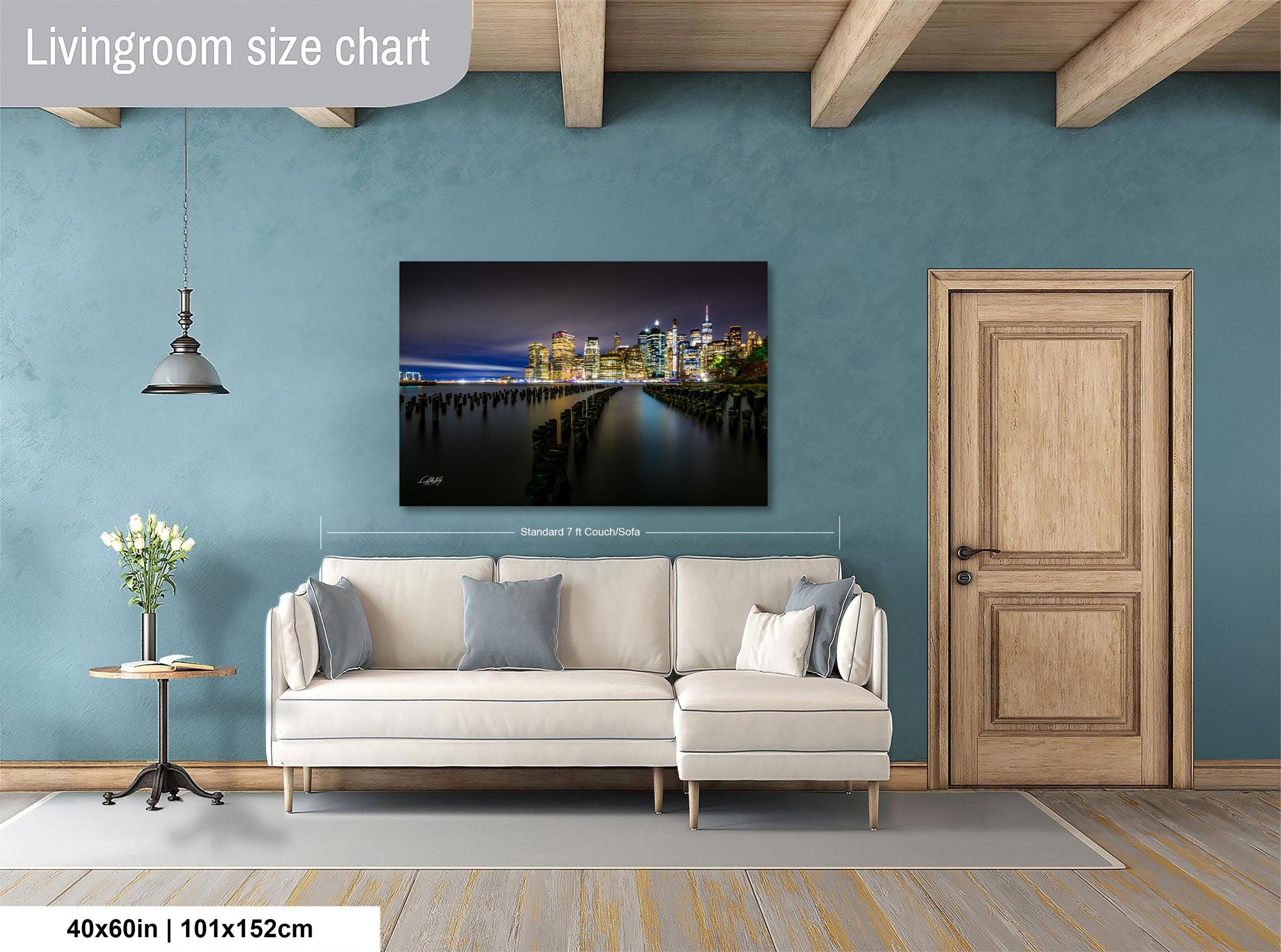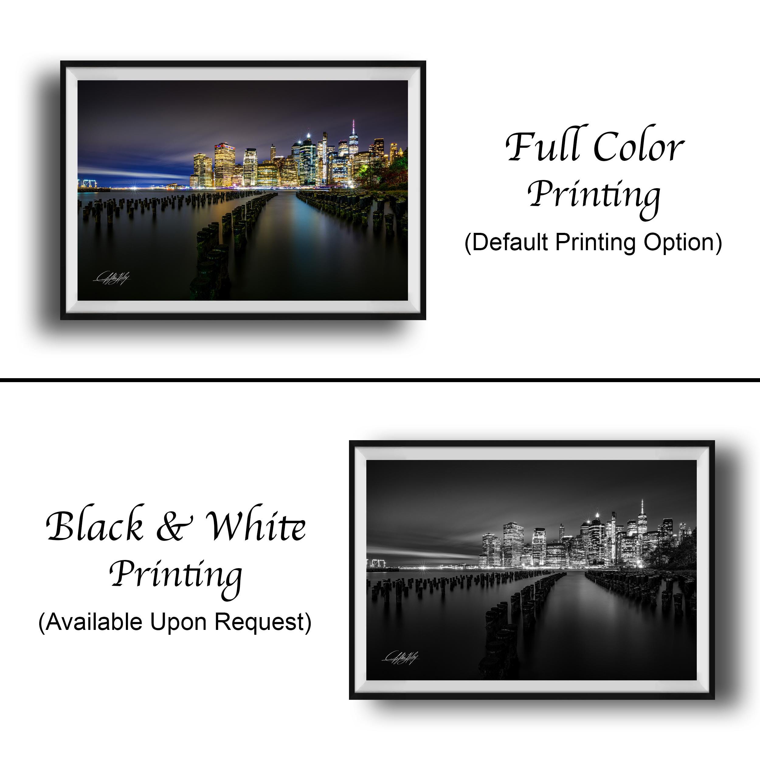 This artwork immortalizes a serene moment at Old Pier One as the city transitions from sunset to twilight, showcasing the iconic NYC skyline and Brooklyn Bridge bathed in vibrant hues. The blue hour photo highlights the subtle dance of light and shadow, offering a unique city skyline print that brings the energy of New York City into your space.