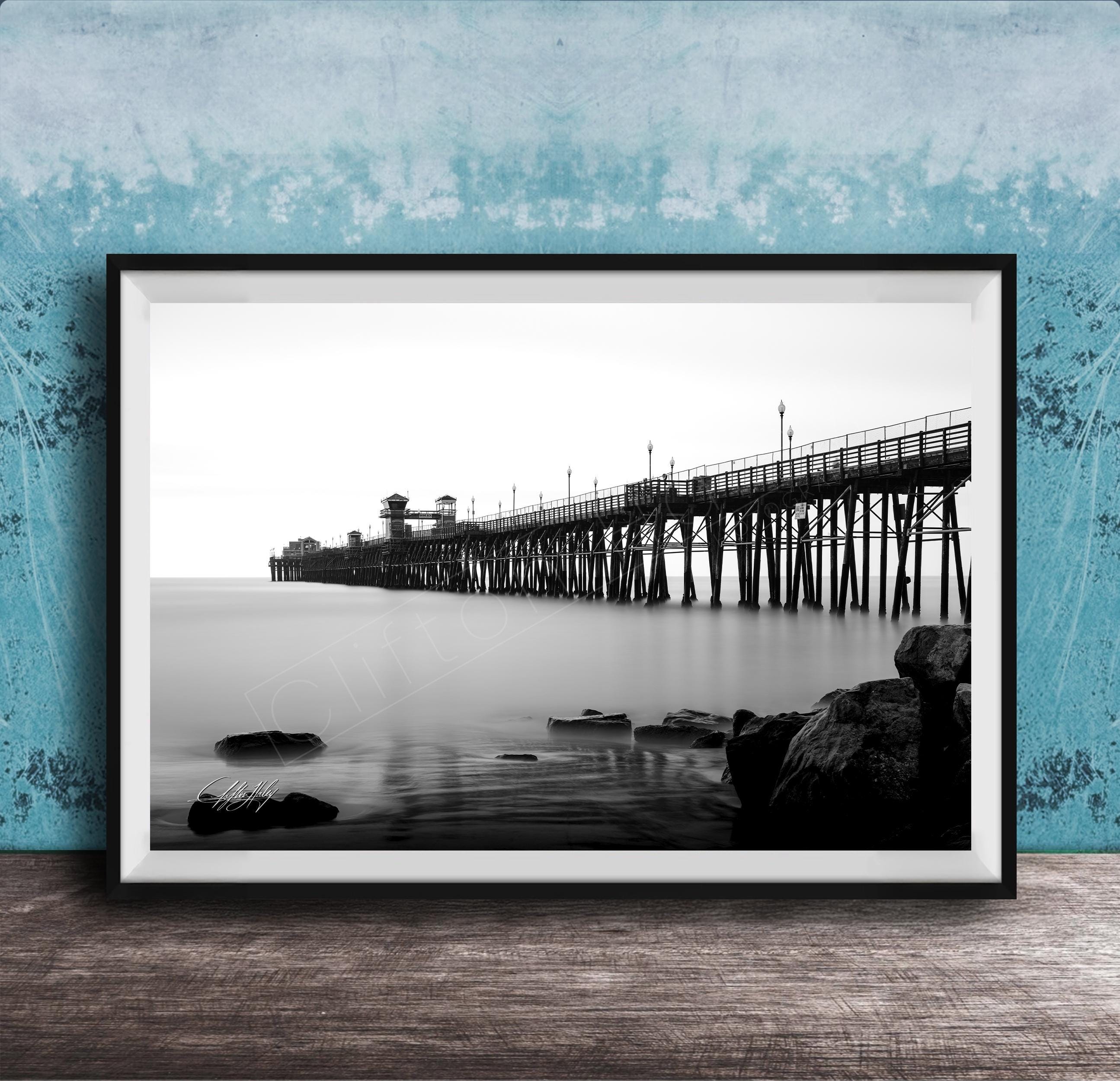 Discover this stunning Oceanside Pier black and white fine art print, a captivating coastal photography piece perfect for California travel decor and San Diego wall art lovers.