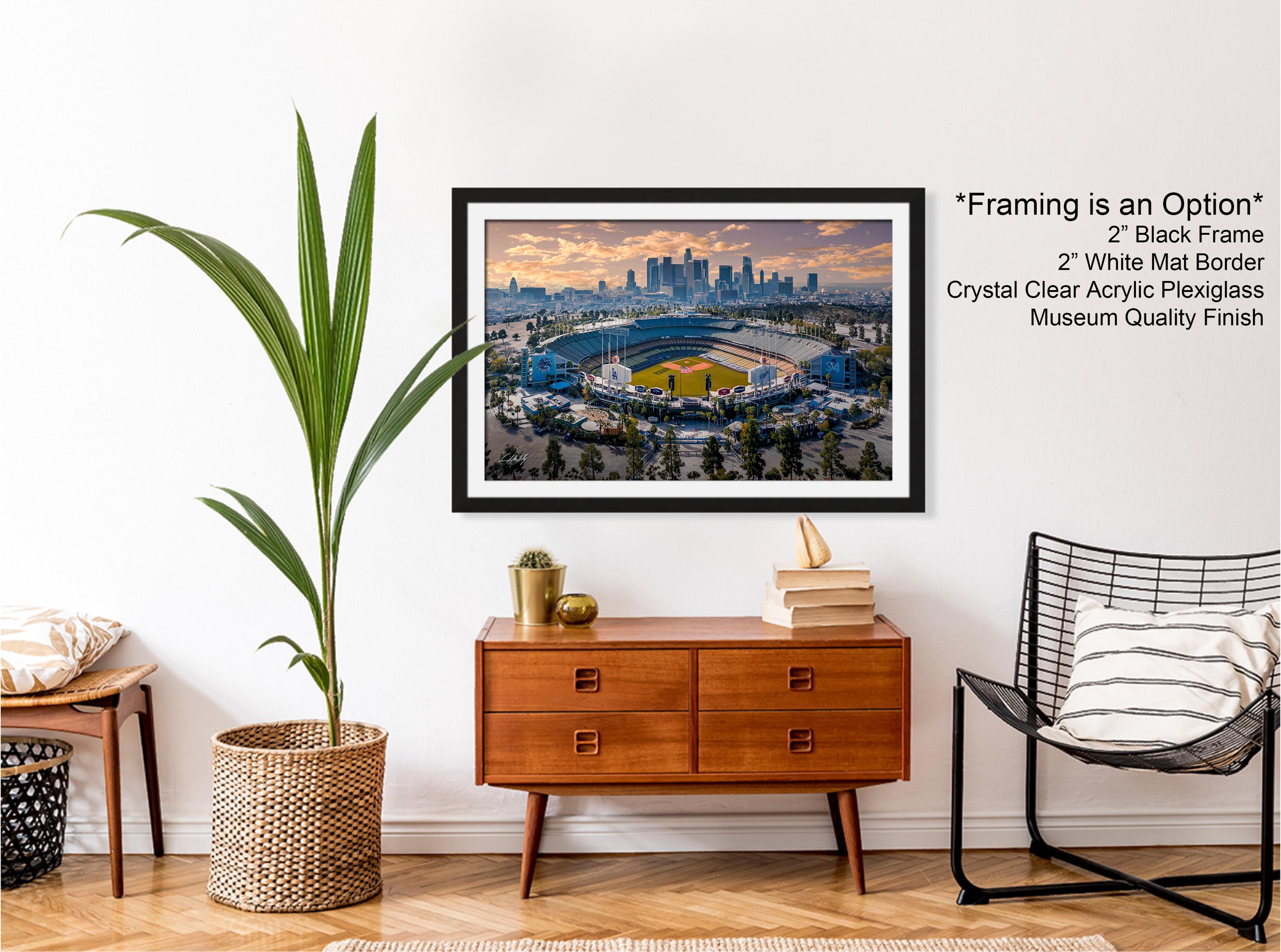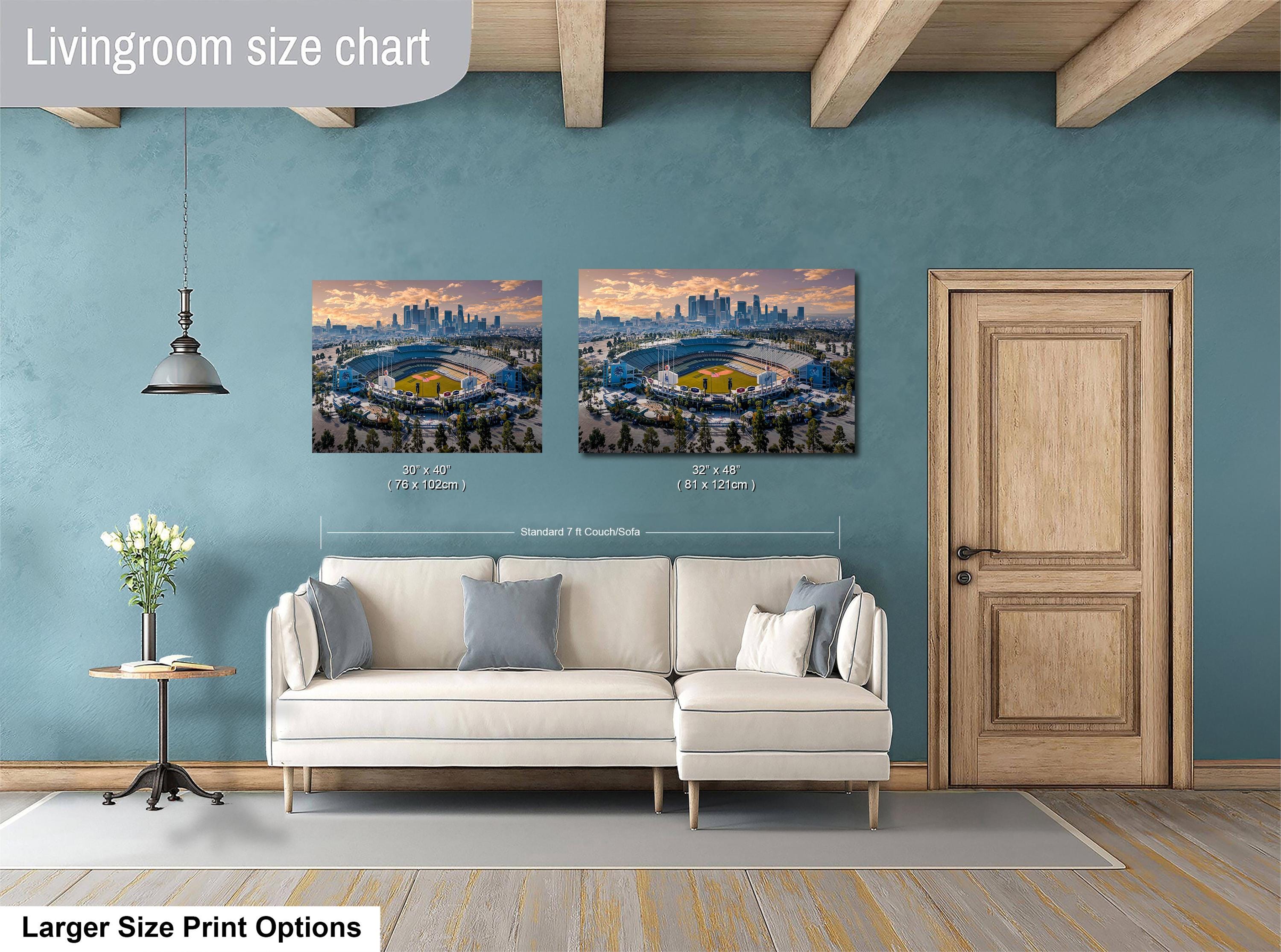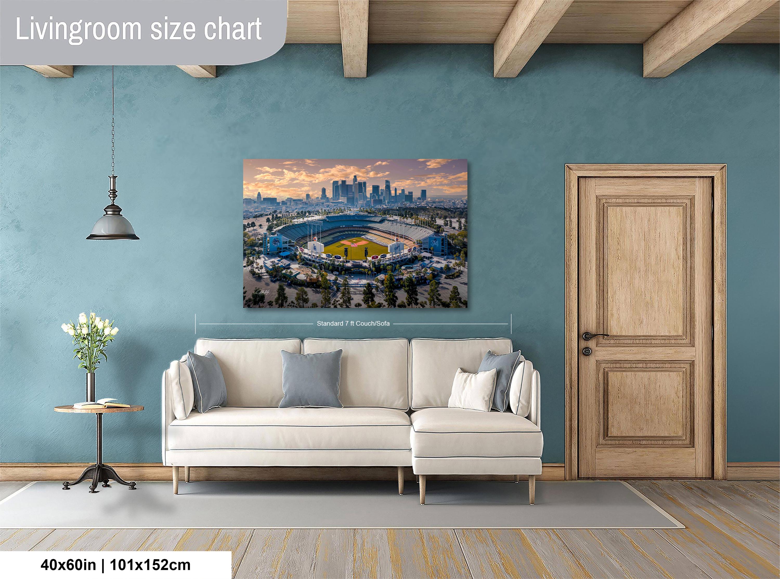 Dodgers Stadium Wall Art with LA Skyline at Sunrise & Sunset, Los Angeles Baseball Decor, Dodgers Fan Gift, Stadium Illustration Print