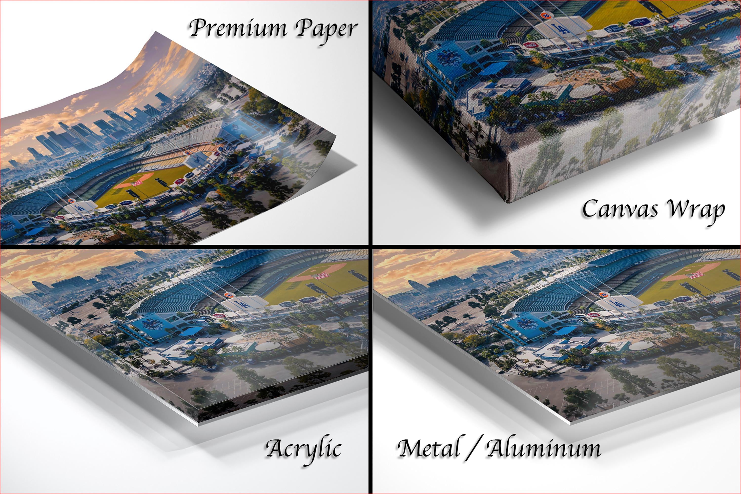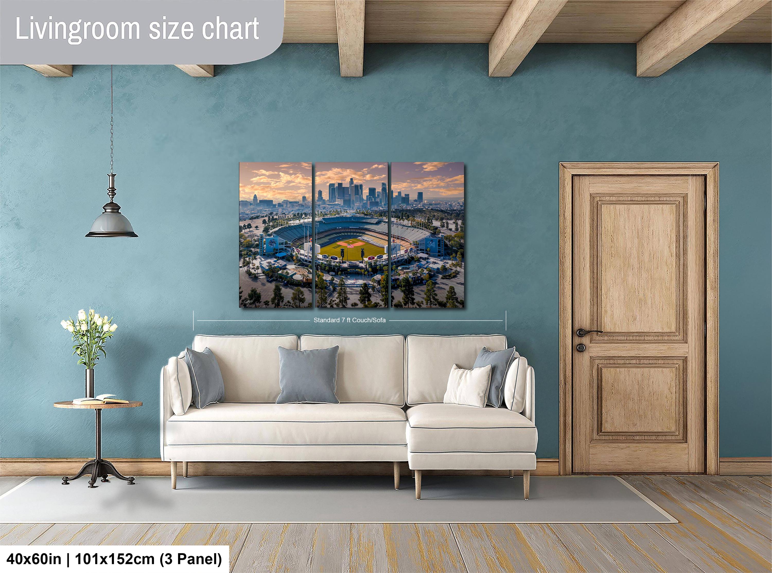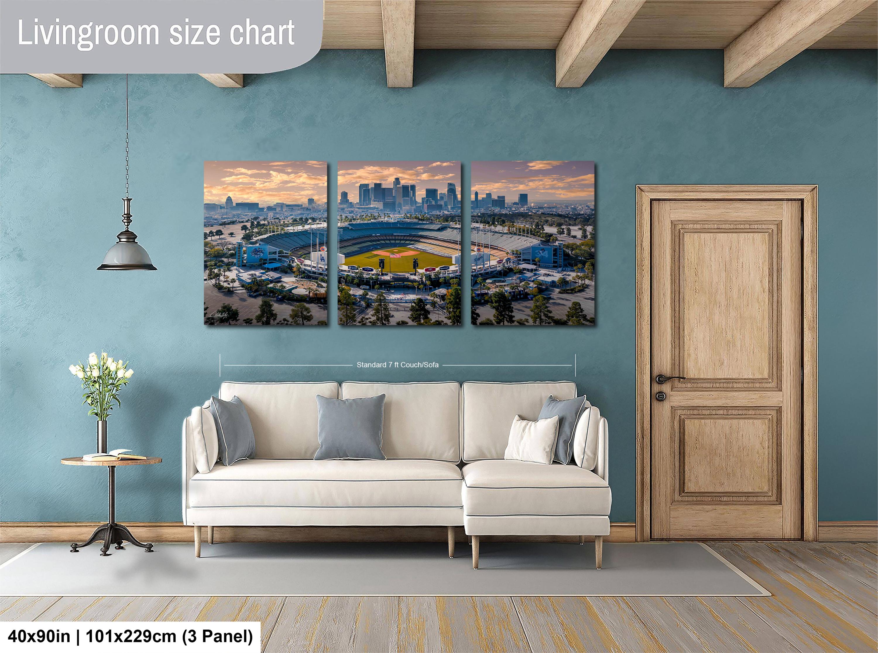 Dodgers Stadium Wall Art with LA Skyline at Sunrise & Sunset, Los Angeles Baseball Decor, Dodgers Fan Gift, Stadium Illustration Print