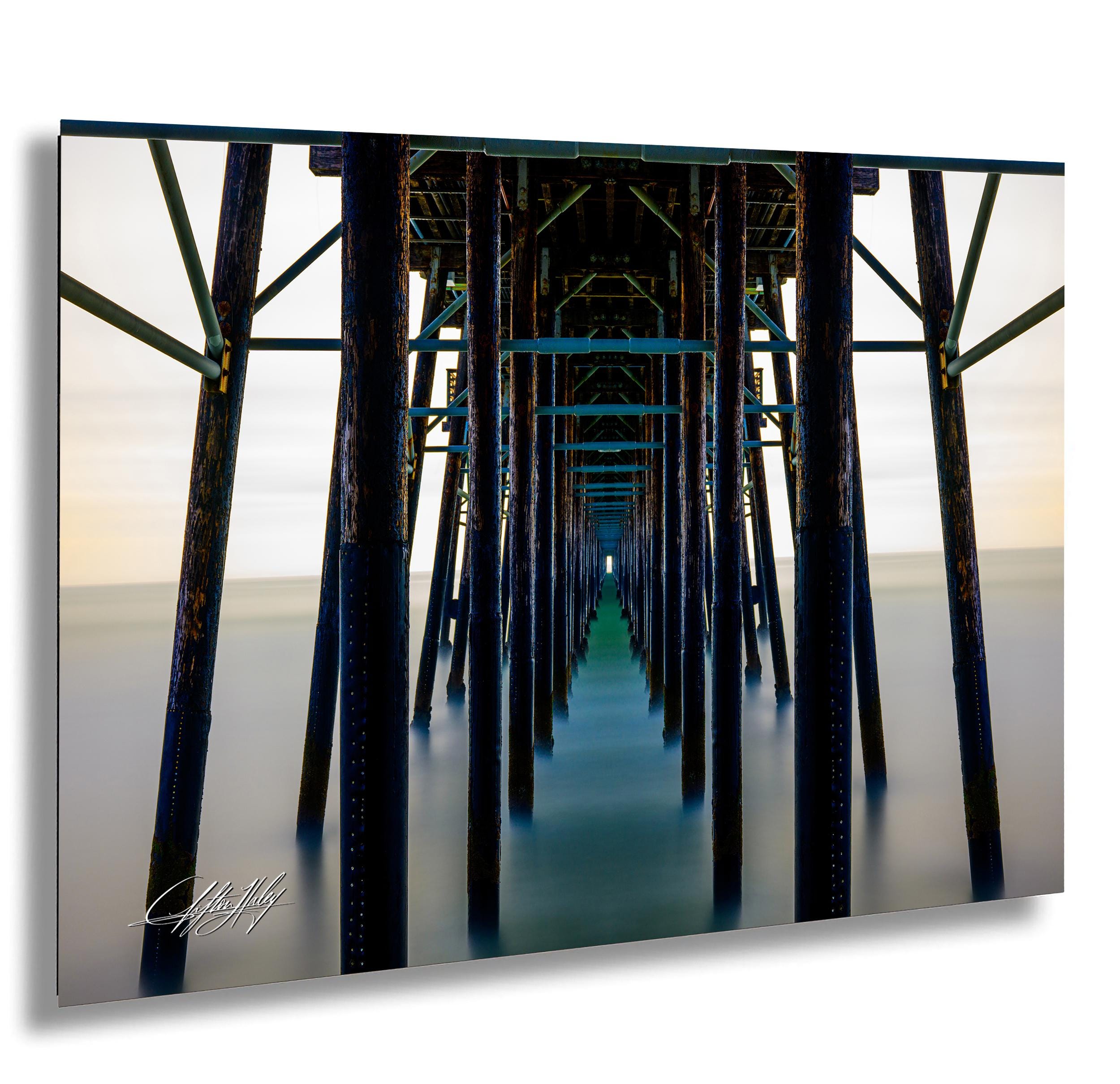 "Could the hands of time be stilled by the eye of a lens?" This evocative photograph captures the grand Oceanside Pier stretching into the Pacific, blending the timeless beauty of beach photography with a long exposure daylight photo technique. The image transforms the bustling pier into a serene passage to eternity, rendered in exquisite black and white tones that highlight every detail from ocean horizon to sandy shore.
