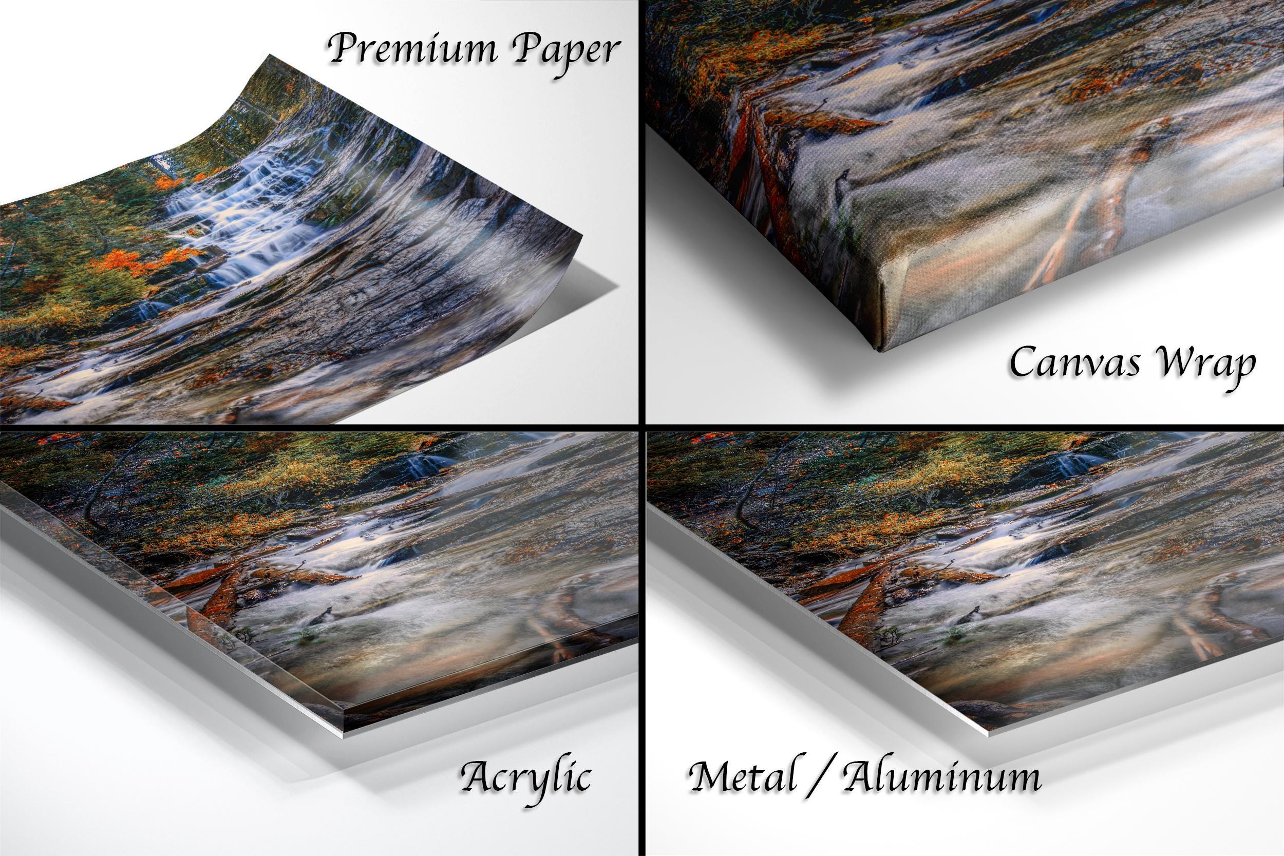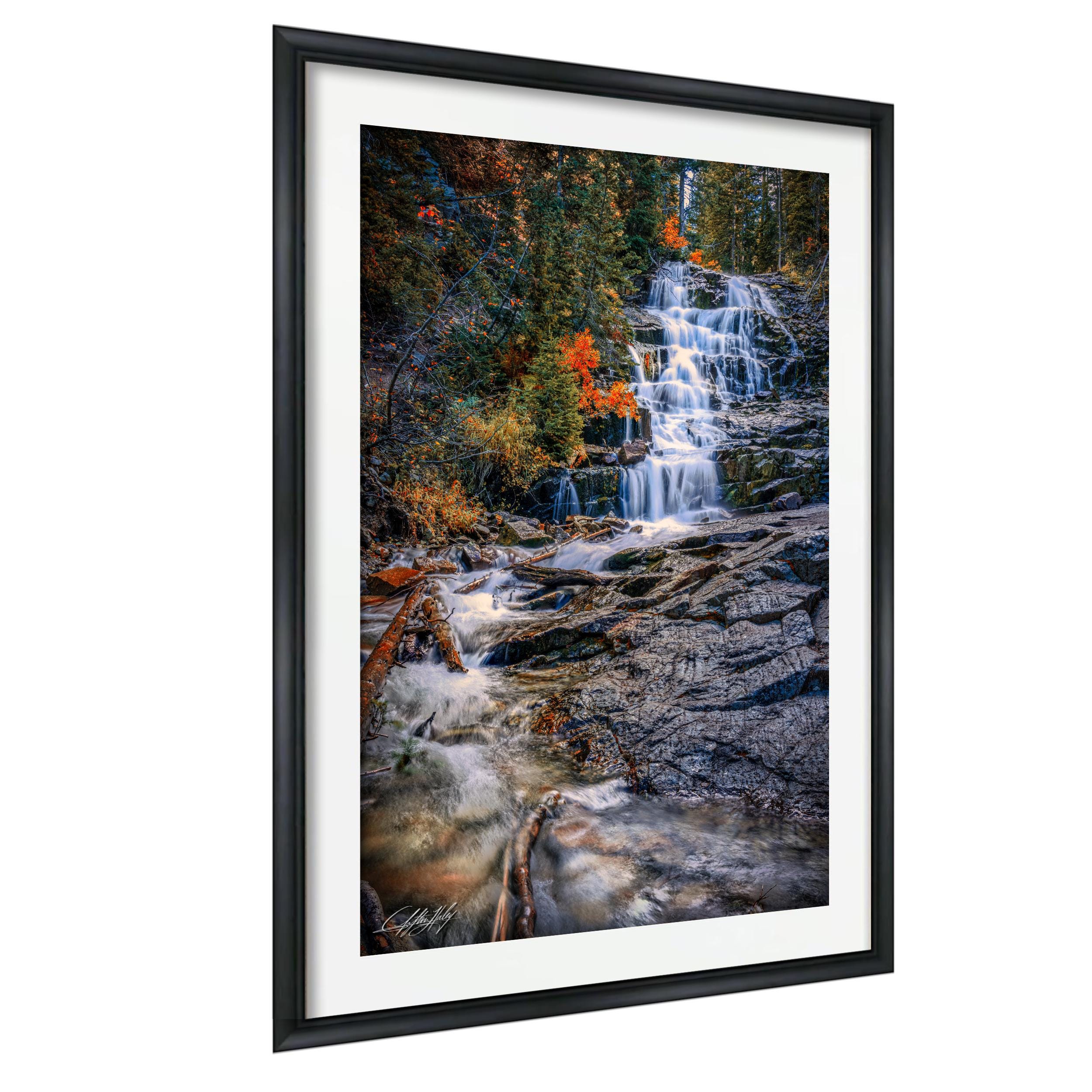 - ✅ Made-to-order fine art photography, hand signed by the artist for authenticity - ✅ Features a long exposure print showcasing cascading water with a smooth, ethereal effect - ✅ Available as framed paper prints, acrylics, aluminum/metal prints with a 2" white mat border or canvas prints flush mounted without a mat - ✅ Dimensions and materials vary by option; perfect for nature lovers seeking Utah landscape photo art