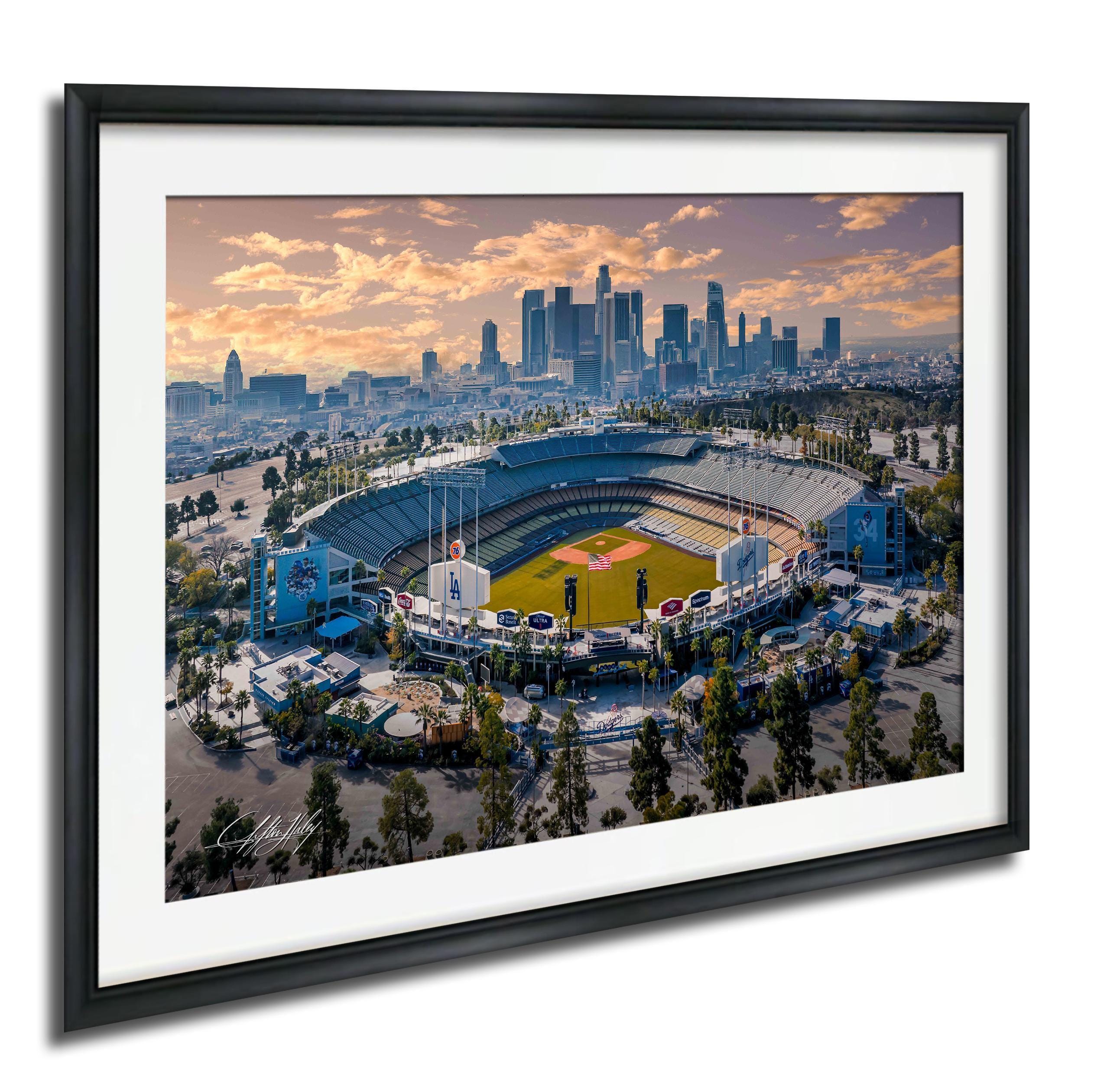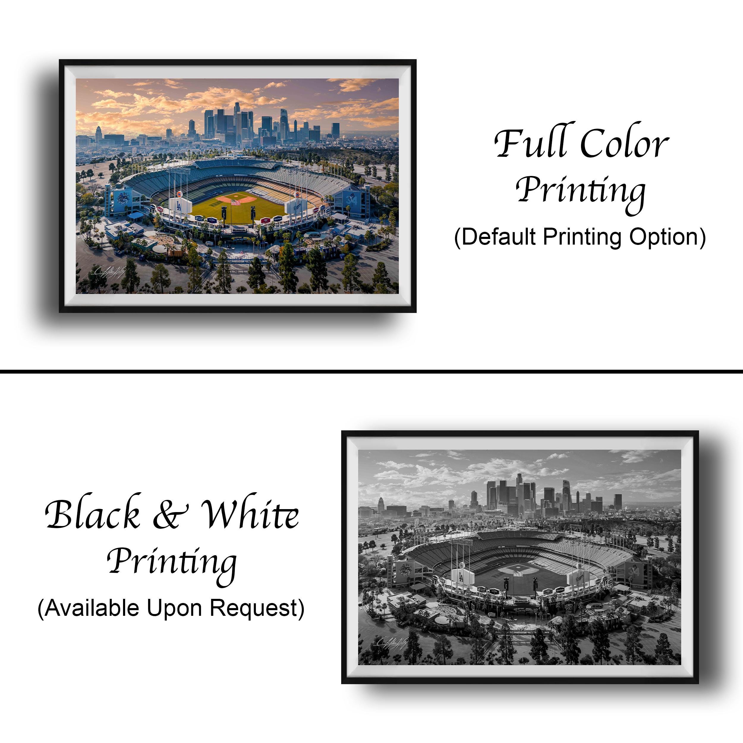 Dodgers Stadium Wall Art with LA Skyline at Sunrise & Sunset, Los Angeles Baseball Decor, Dodgers Fan Gift, Stadium Illustration Print