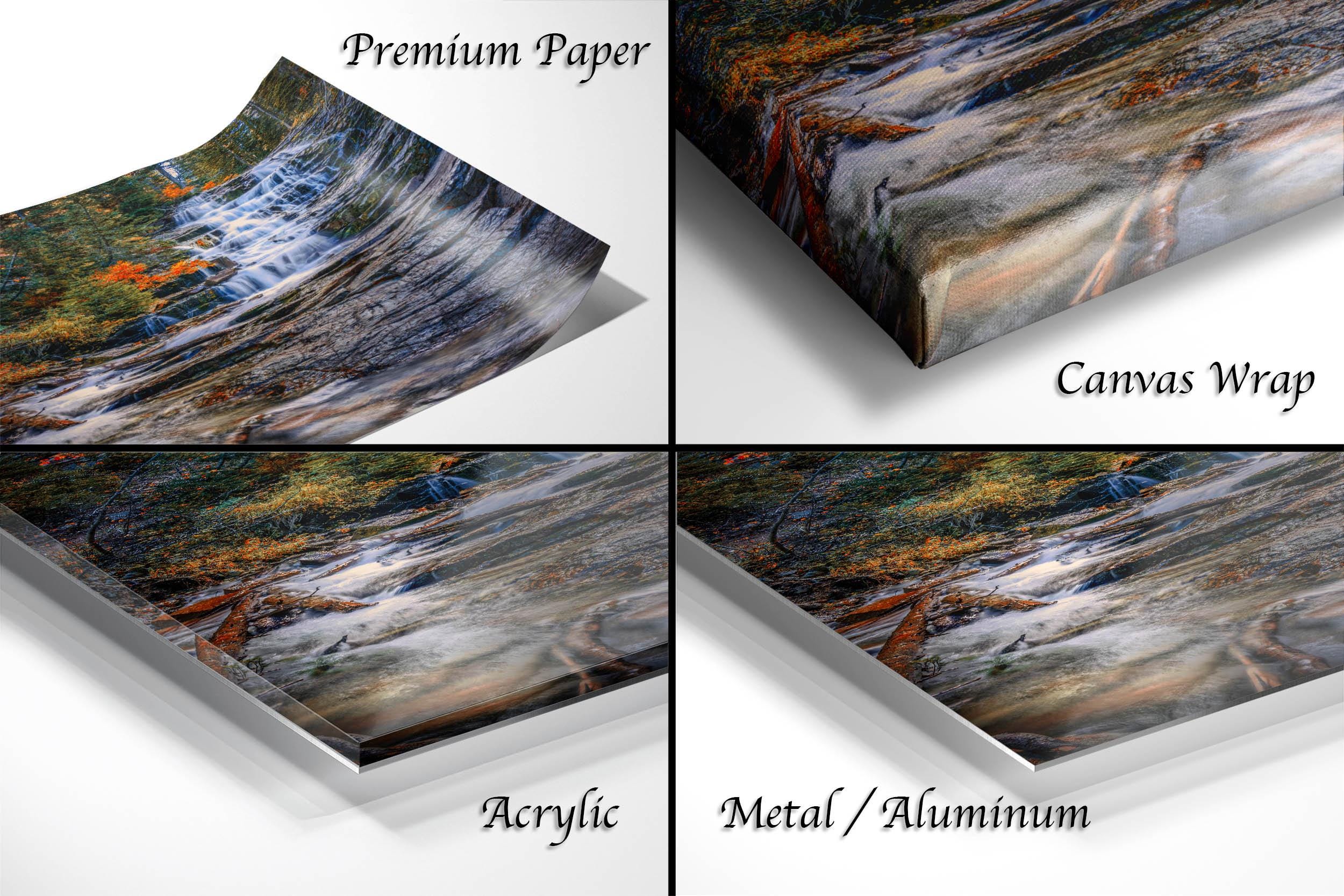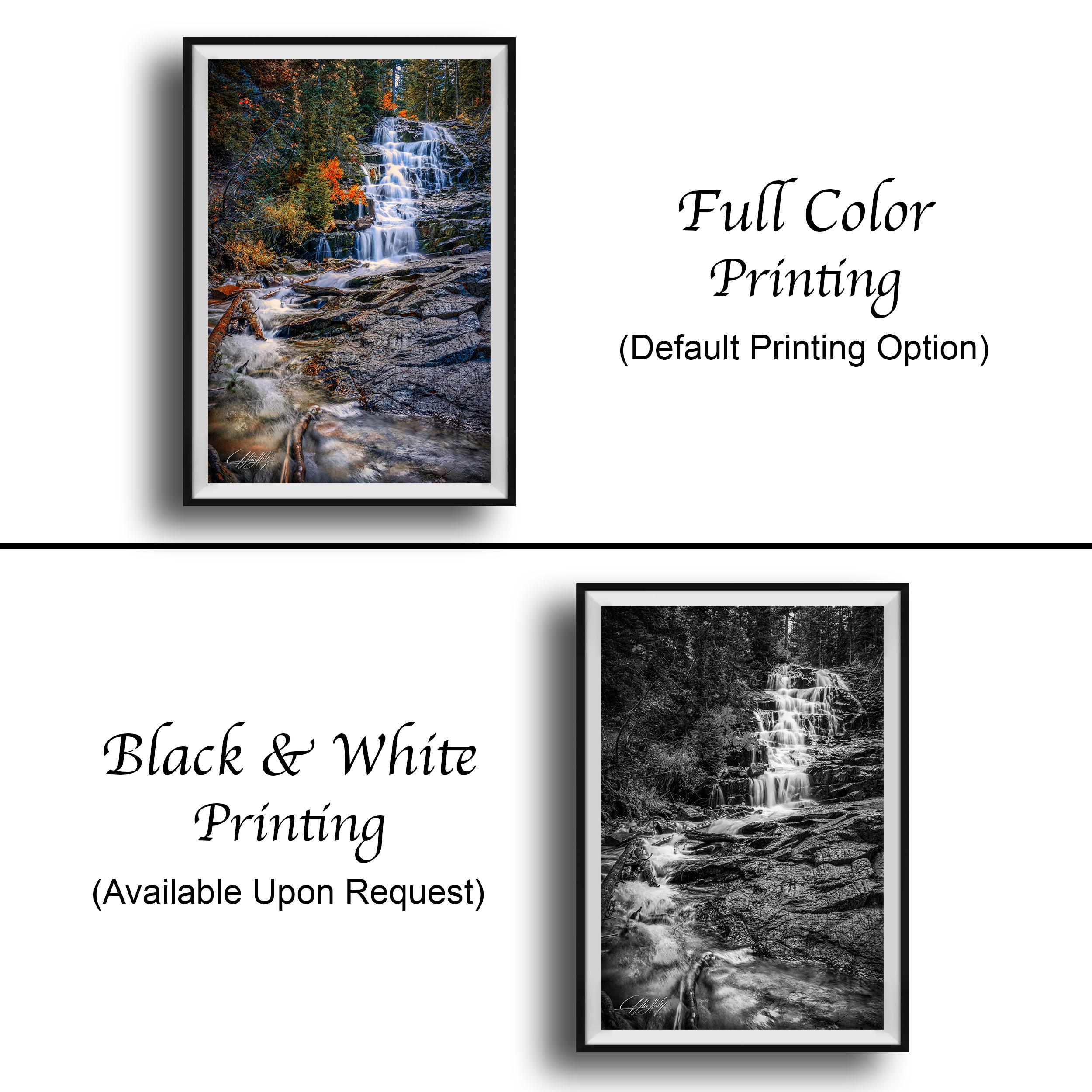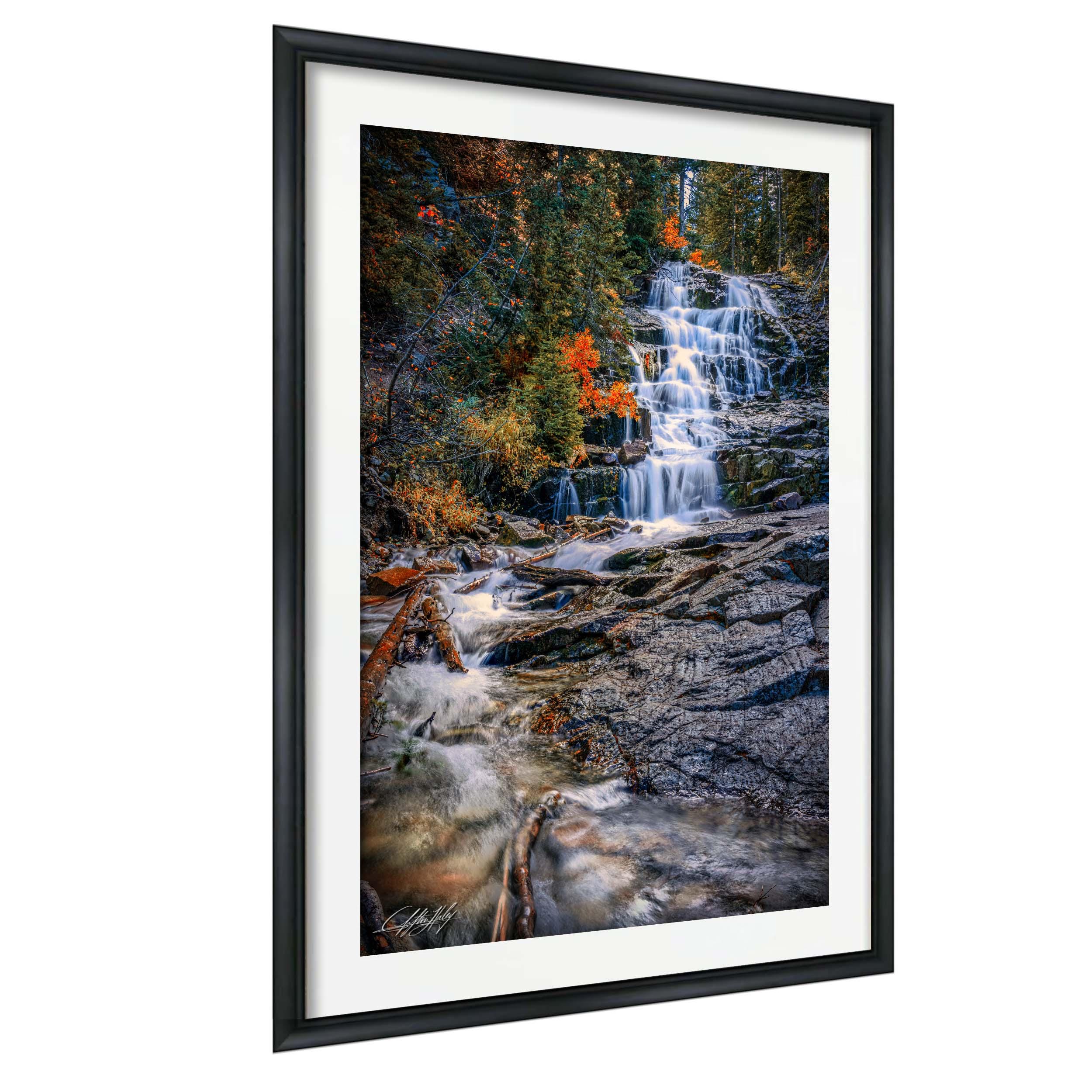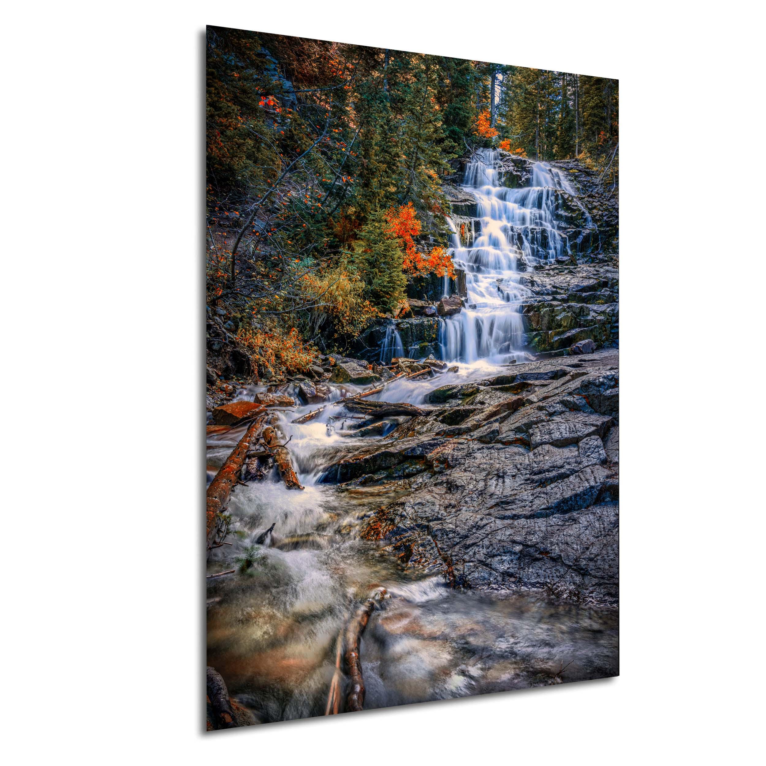 Amidst the vibrant hues of golden aspen leaves and the serene rush of Park City waterfall, this Gloria Falls print captures an autumn forest scene like no other. Inspired by a sacred moment in nature, the long exposure art transforms the cascading waters into a smooth veil, inviting you to experience the peaceful power of fall colors on your wall. Perfect for nature lovers and those seeking rustic cabin decor, this artist signed print brings a touch of tranquility and divine beauty to your space.