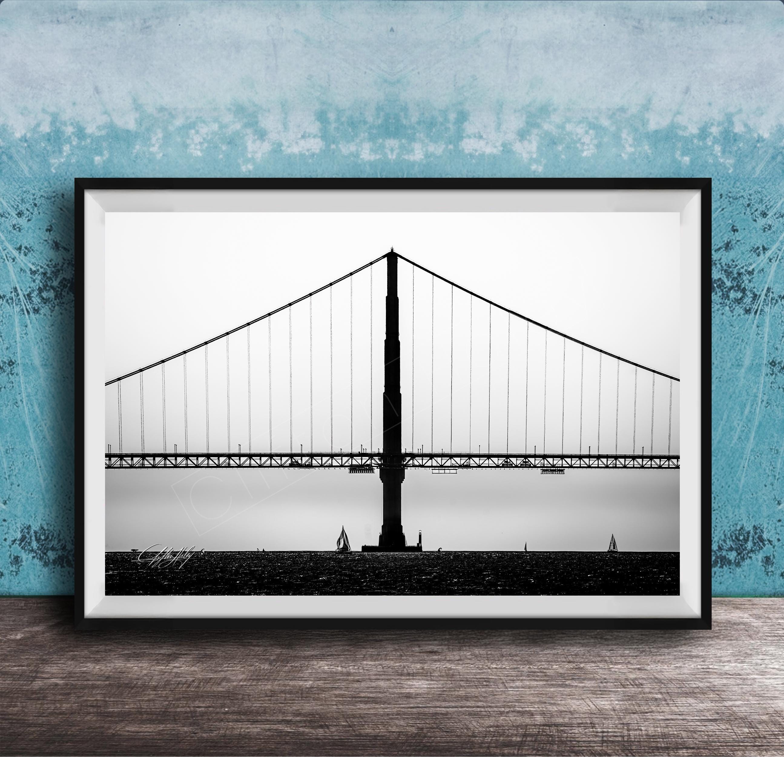 This exquisite print showcases the iconic bridge at sunset, blending black and white elegance with the soft glow of twilight. Each piece is a made-to-order work of art, personally crafted and signed by the artist, ensuring your California wall art is truly unique.