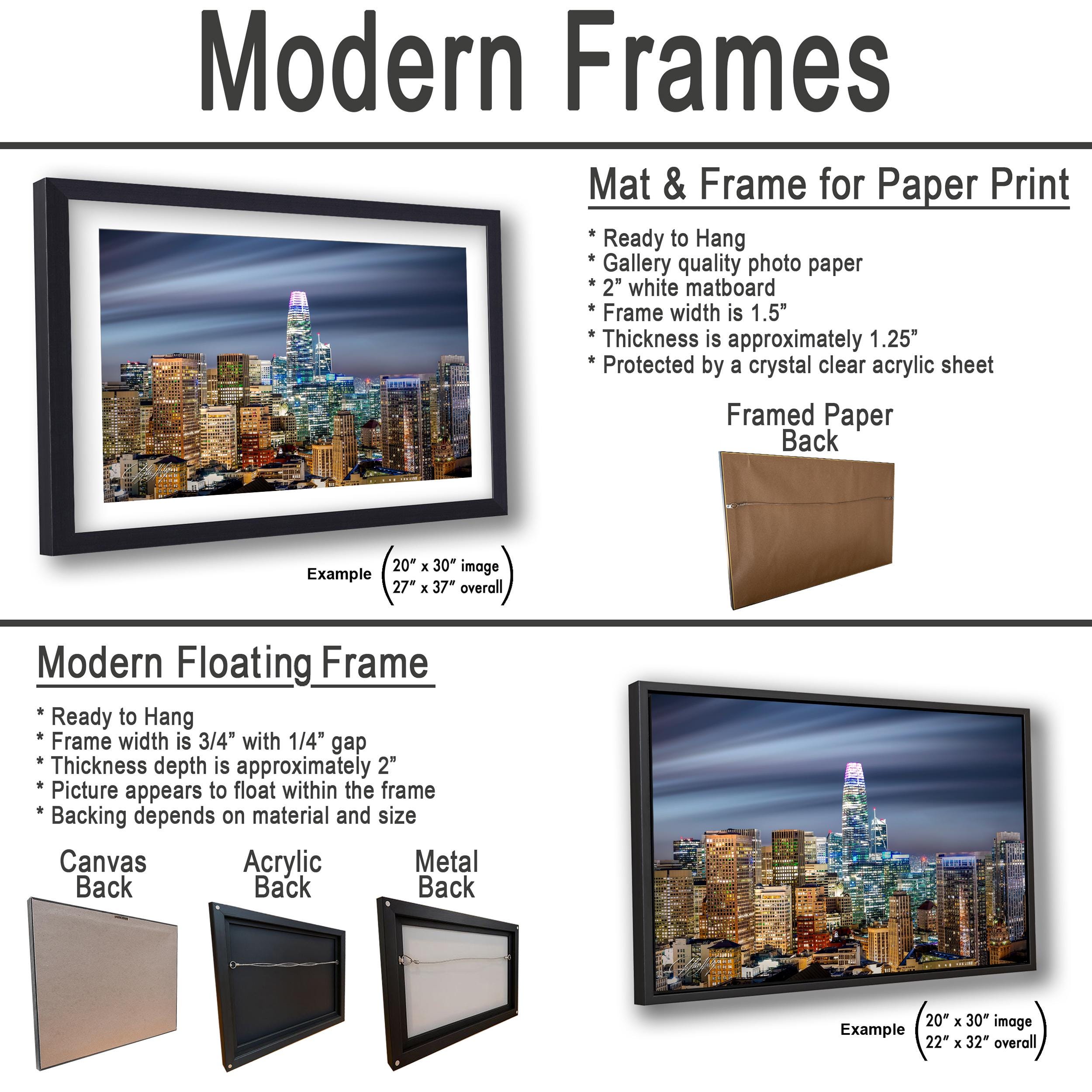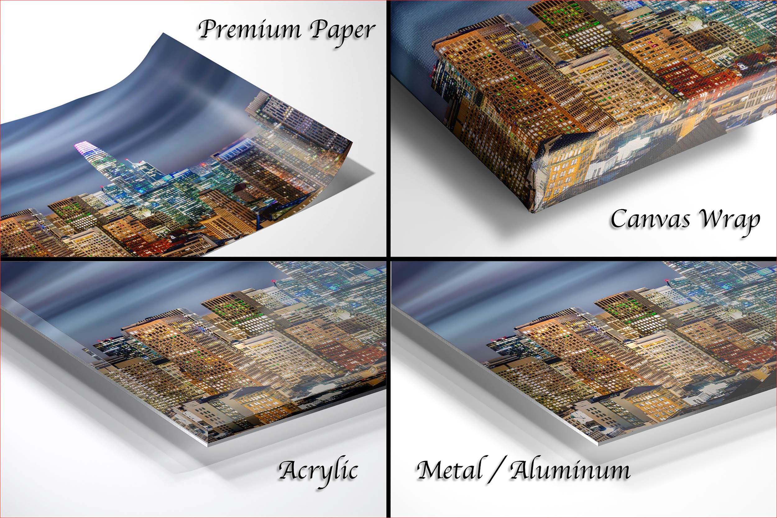 - Made to order for a personalized touch, each print is crafted uniquely for you. - Artist signed in the bottom corner, authenticating your urban landscape art. - Available as framed paper prints, acrylic metal prints, or canvas wall decor. - Framed paper prints, acrylics, and metal options include a 2" white mat border; canvas prints are flush mounted without a mat border.