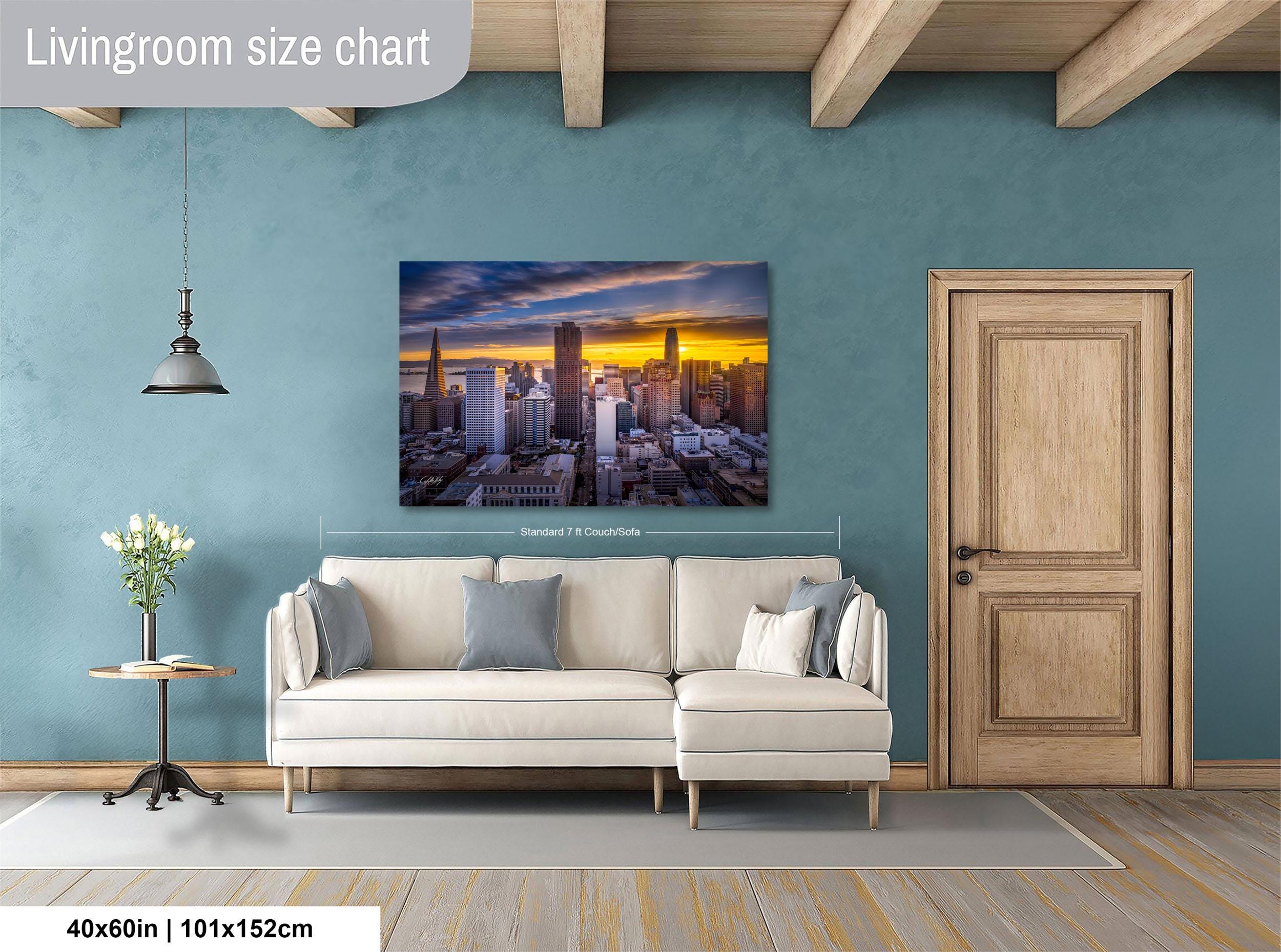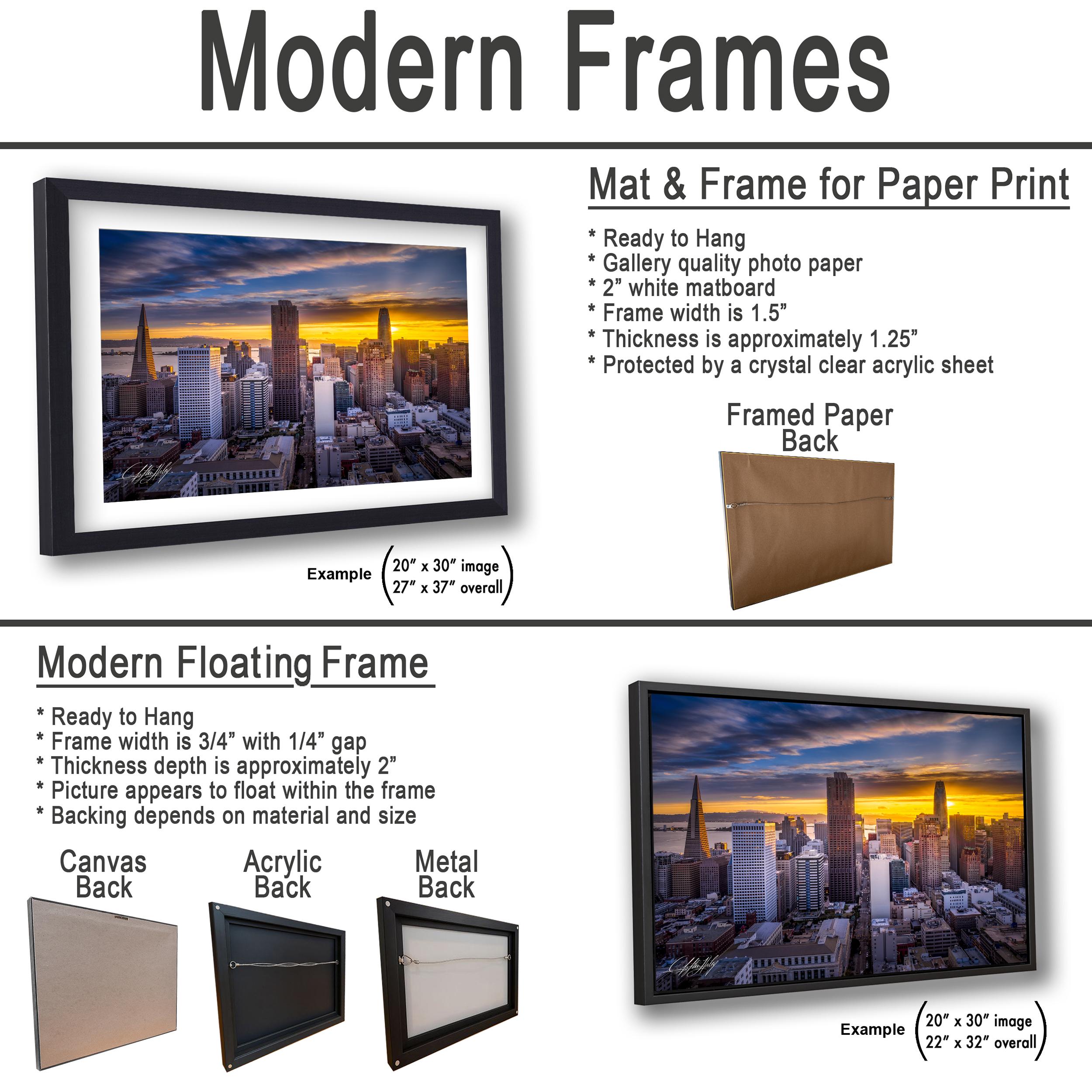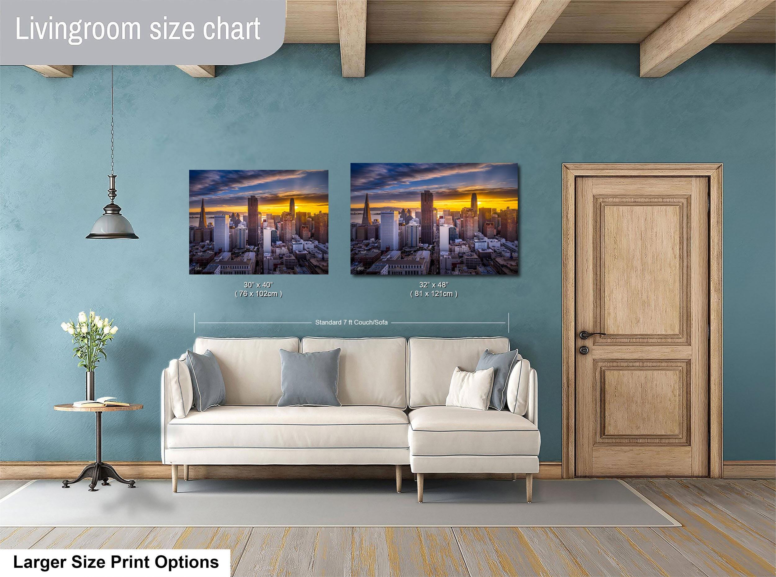 - ✅ Made-to-order fine art print featuring a signature from the artist in the bottom corner for authenticity - ✅ Available as framed paper prints, acrylics, aluminum/metal prints with a 2" white mat border or canvas prints with flush mounted frames - ✅ Dimensions and materials crafted to highlight warm light wall art qualities and preserve image vibrancy - ✅ Captures San Francisco’s iconic skyline with emphasis on golden peace artwork and iron will print themes