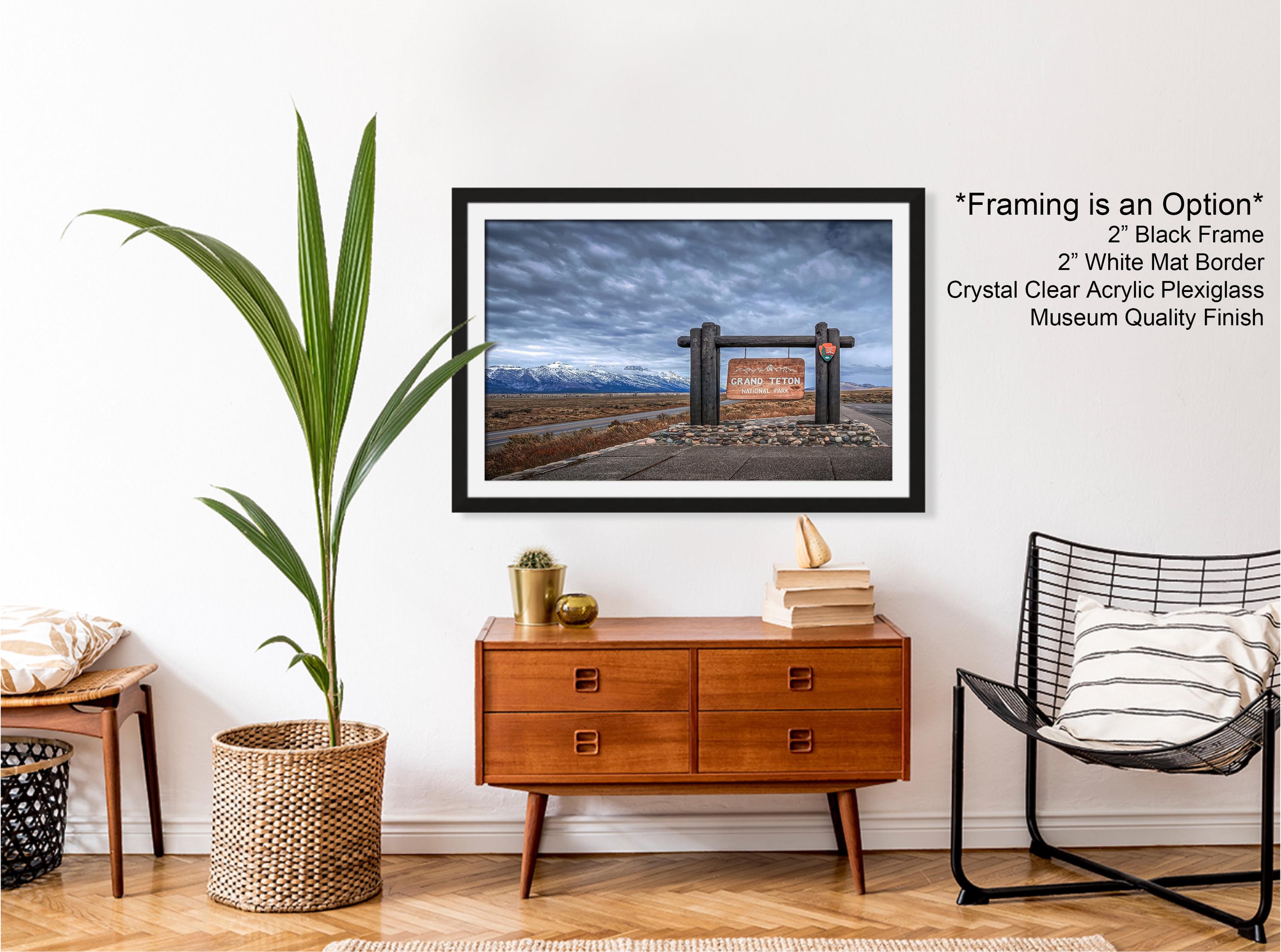1. Because every image is crafted specifically for you, we do not offer returns; however, if your order arrives damaged or there’s an issue, we will gladly exchange or replace it. 2. Framed paper prints, acrylics, and aluminum/metal prints include a 2" white mat border, while canvas prints are flush mounted to their frames. 3. This Grand Teton wall art makes an exceptional travel memory gift and a timeless addition to any collection celebrating God's hand landscape.