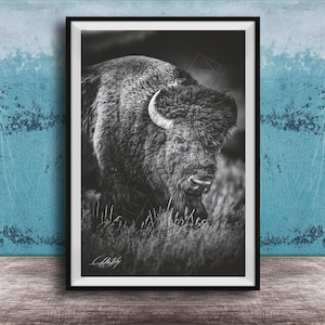 • Made-to-order buffalo canvas print, ensuring each piece is unique and crafted specifically for you. • Signature of the artist placed discreetly in the bottom corner for authenticity. • Canvas prints are flush mounted with no mat border, providing a sleek, modern look. • Perfect for lovers of western rustic style and wildlife wall art seeking a meaningful statement piece. • Dimensions and framing options available upon request to fit your space perfectly.