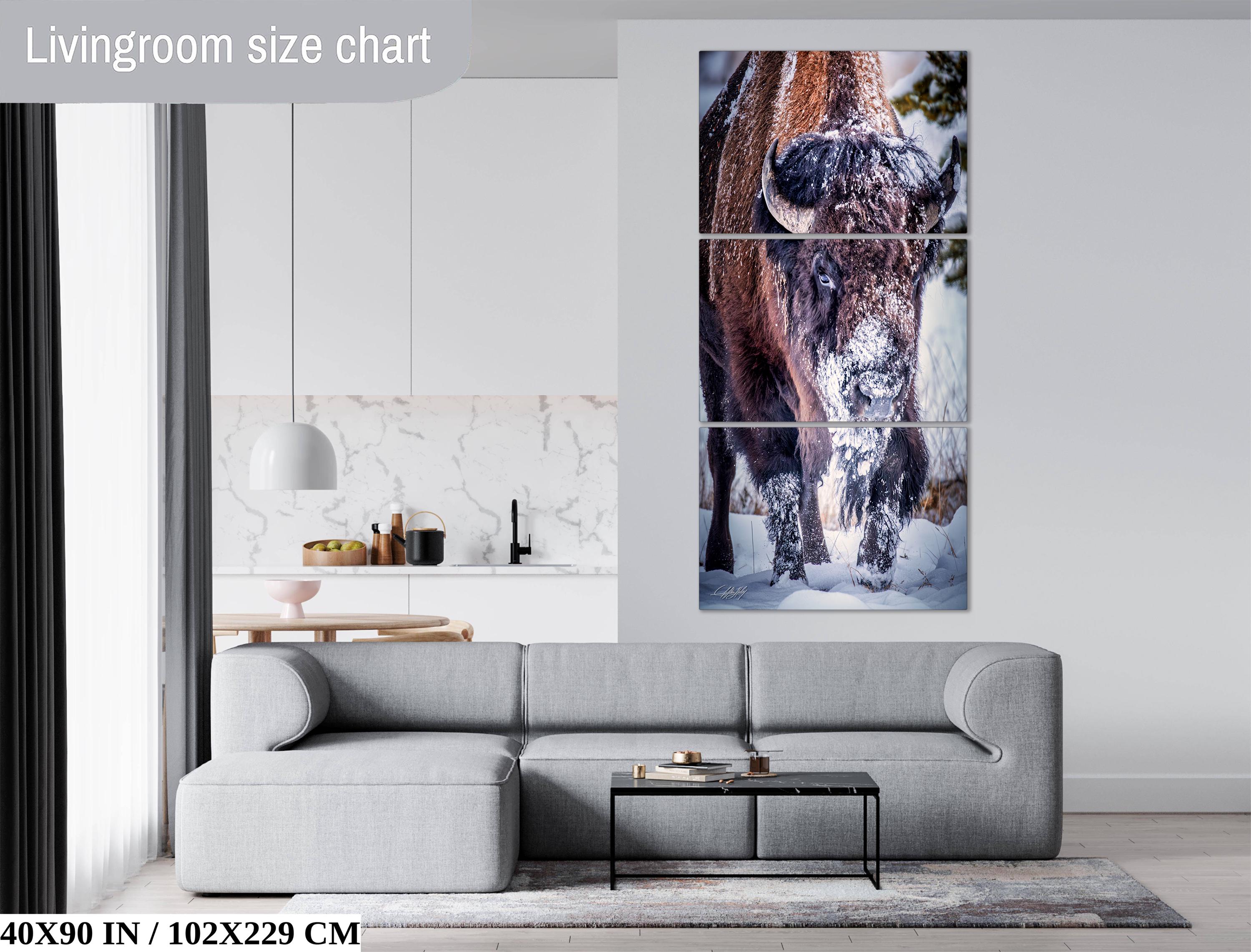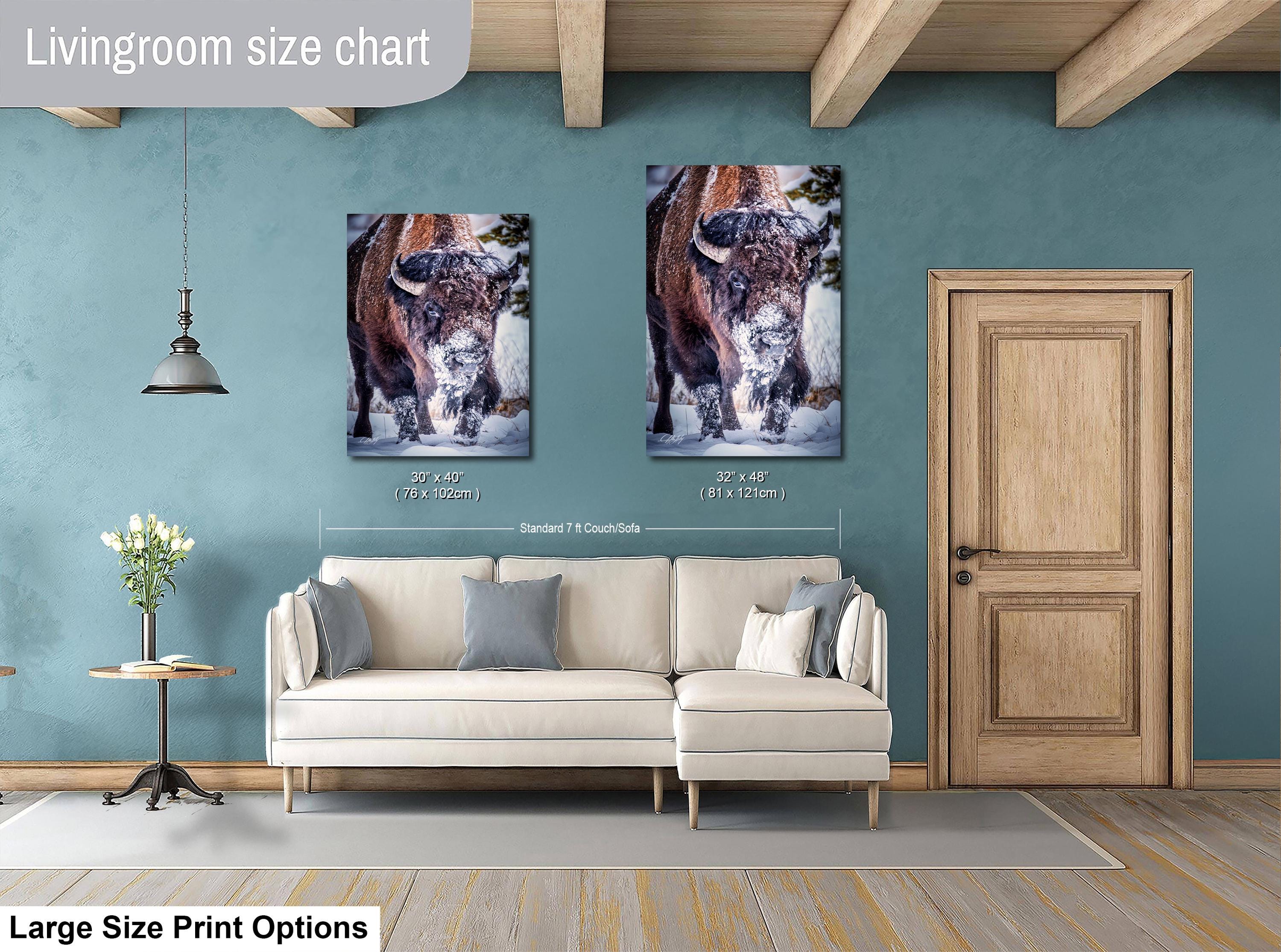 Discover the silent strength of the buffalo canvas print, a stunning American bison art piece that brings rustic wildlife wall hanging charm to your home or office.