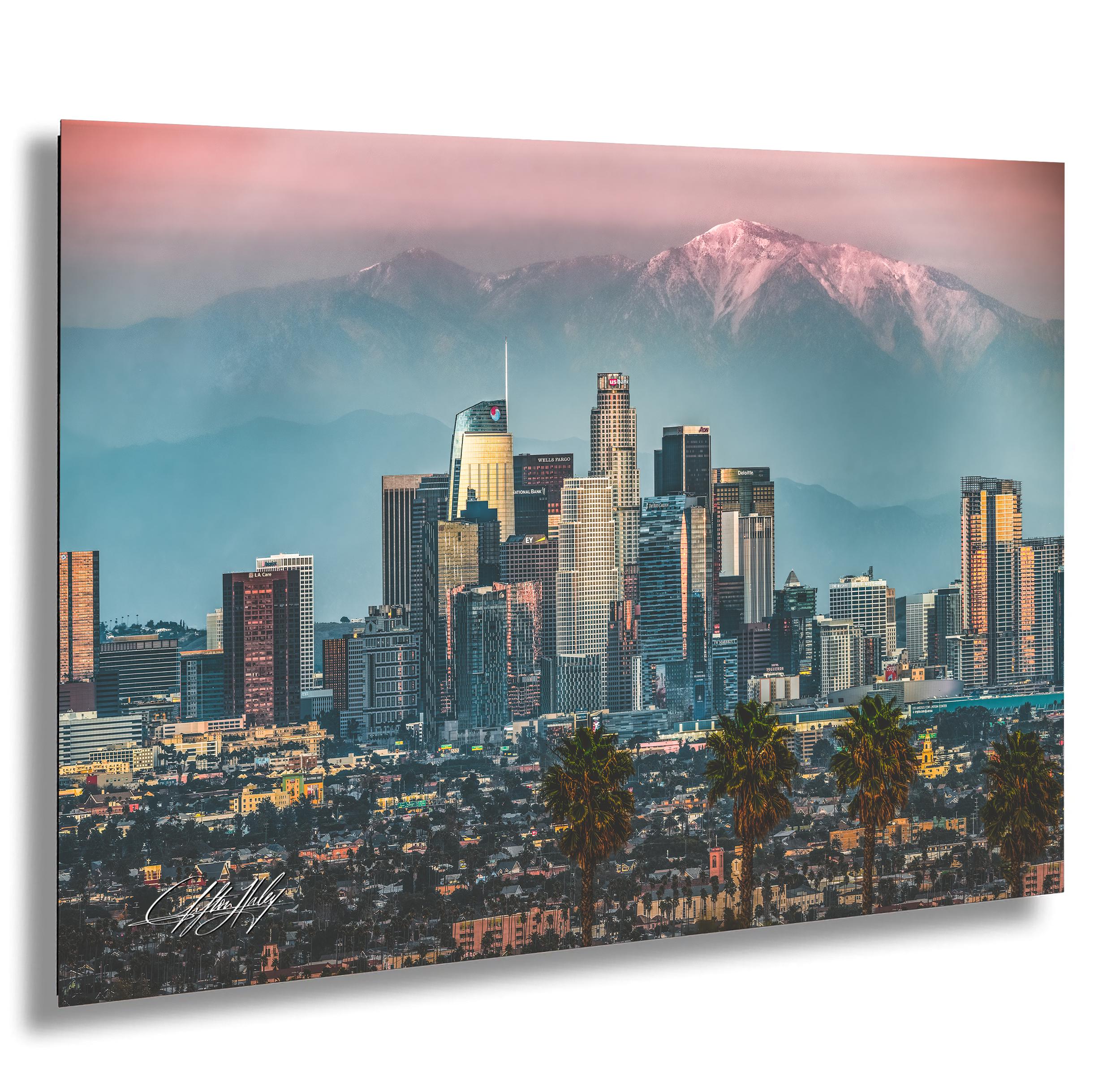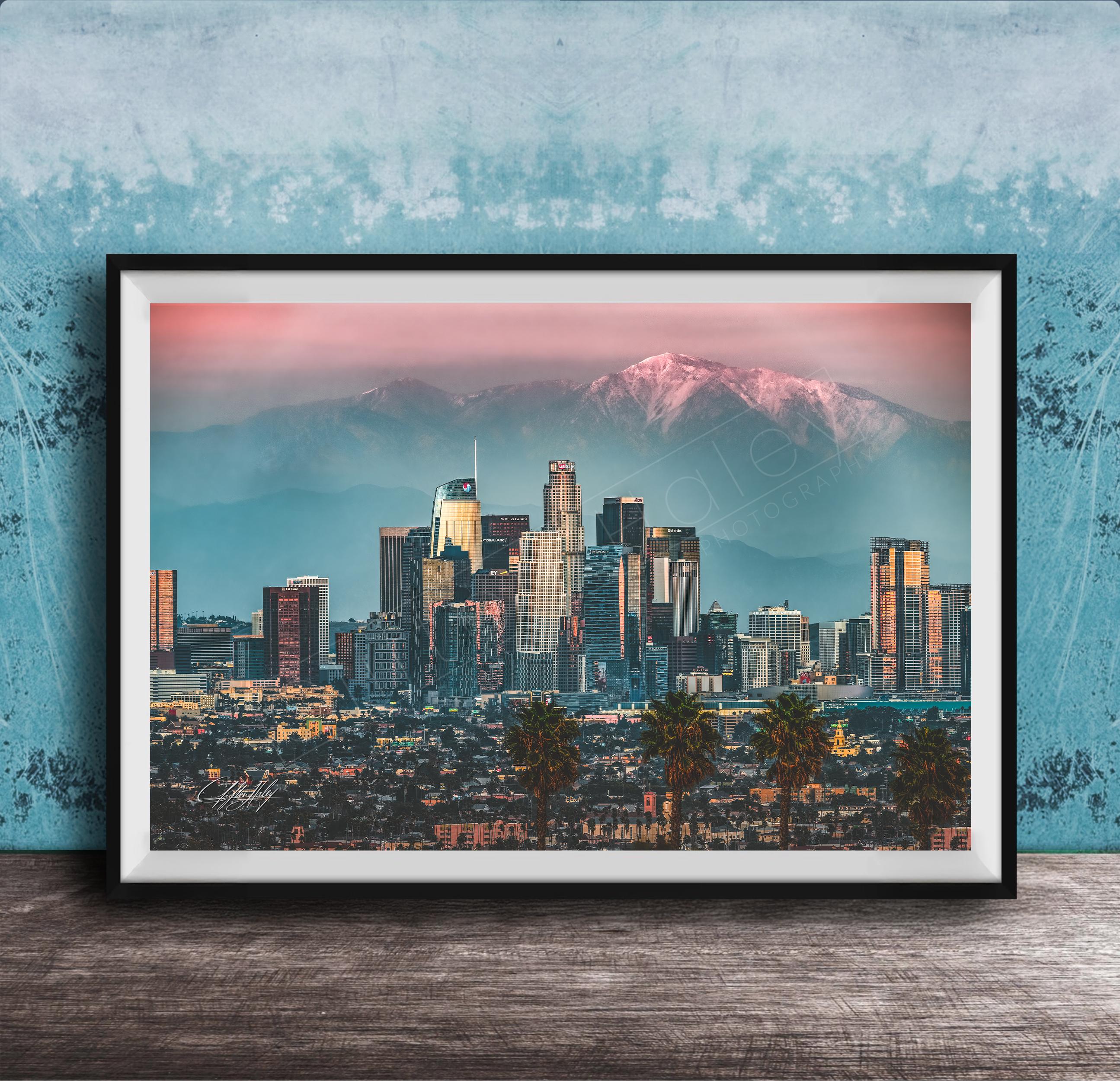 Bring home this stunning Los Angeles artwork that captures both the city's vibrant energy and tranquil mountain beauty.