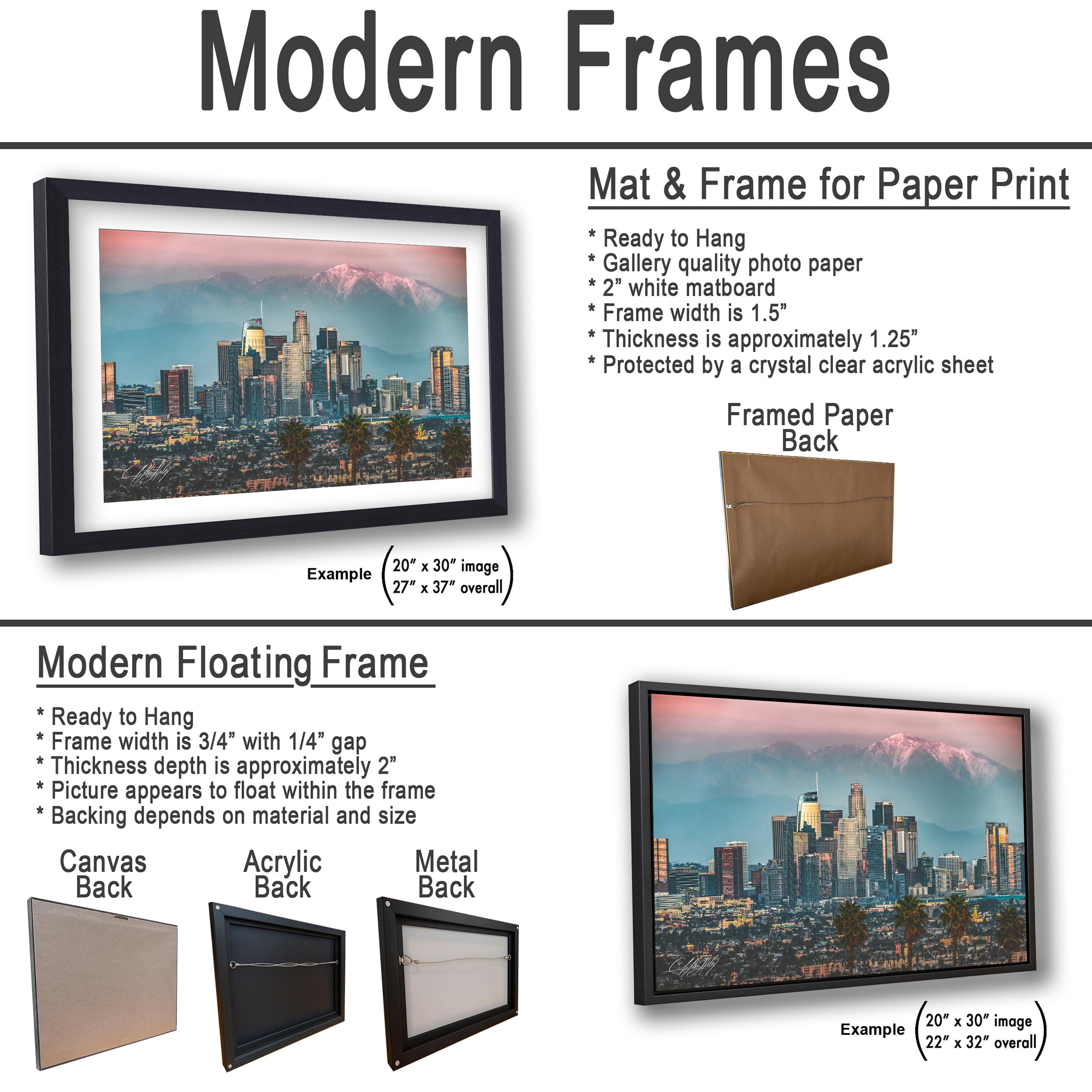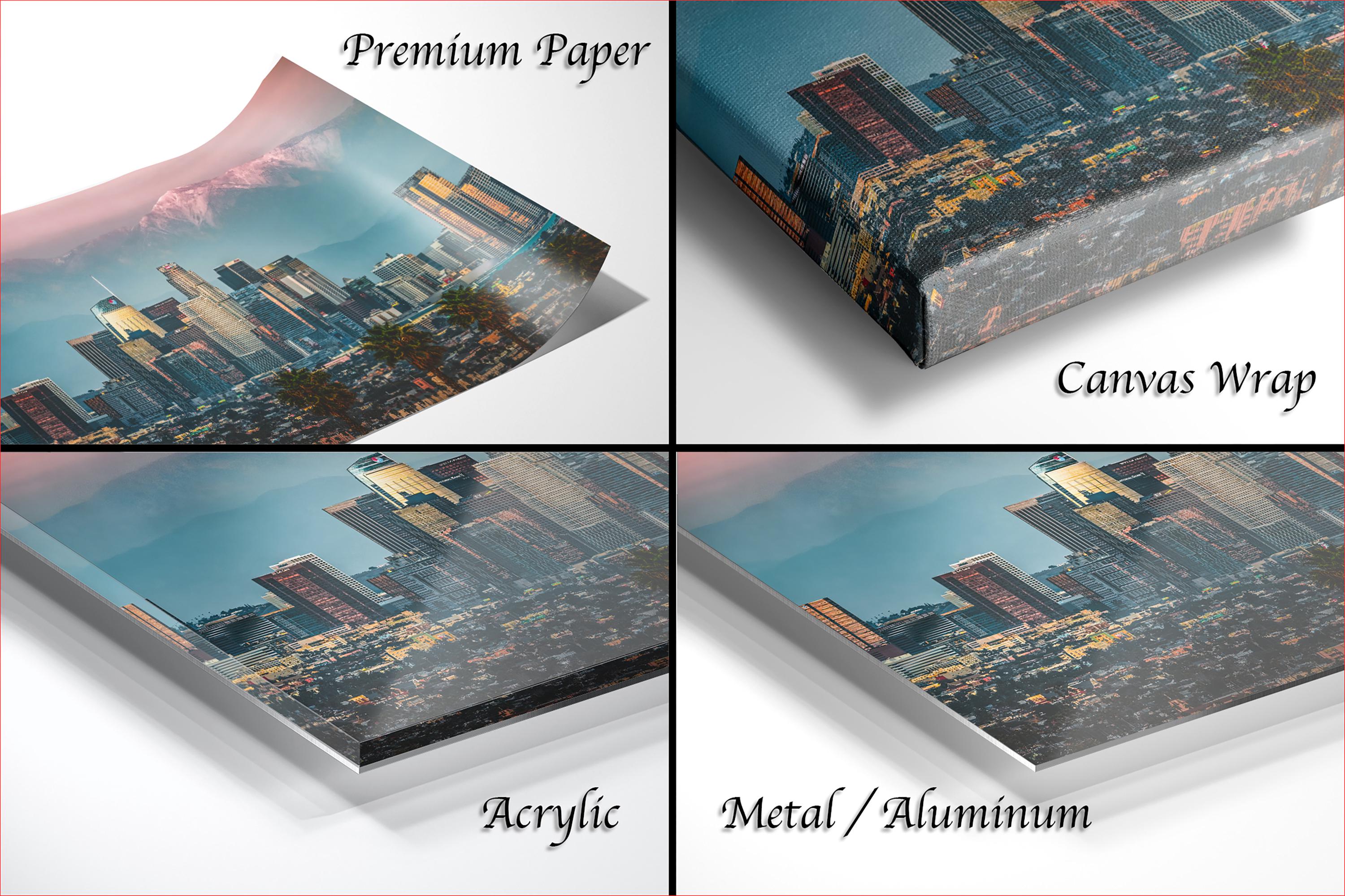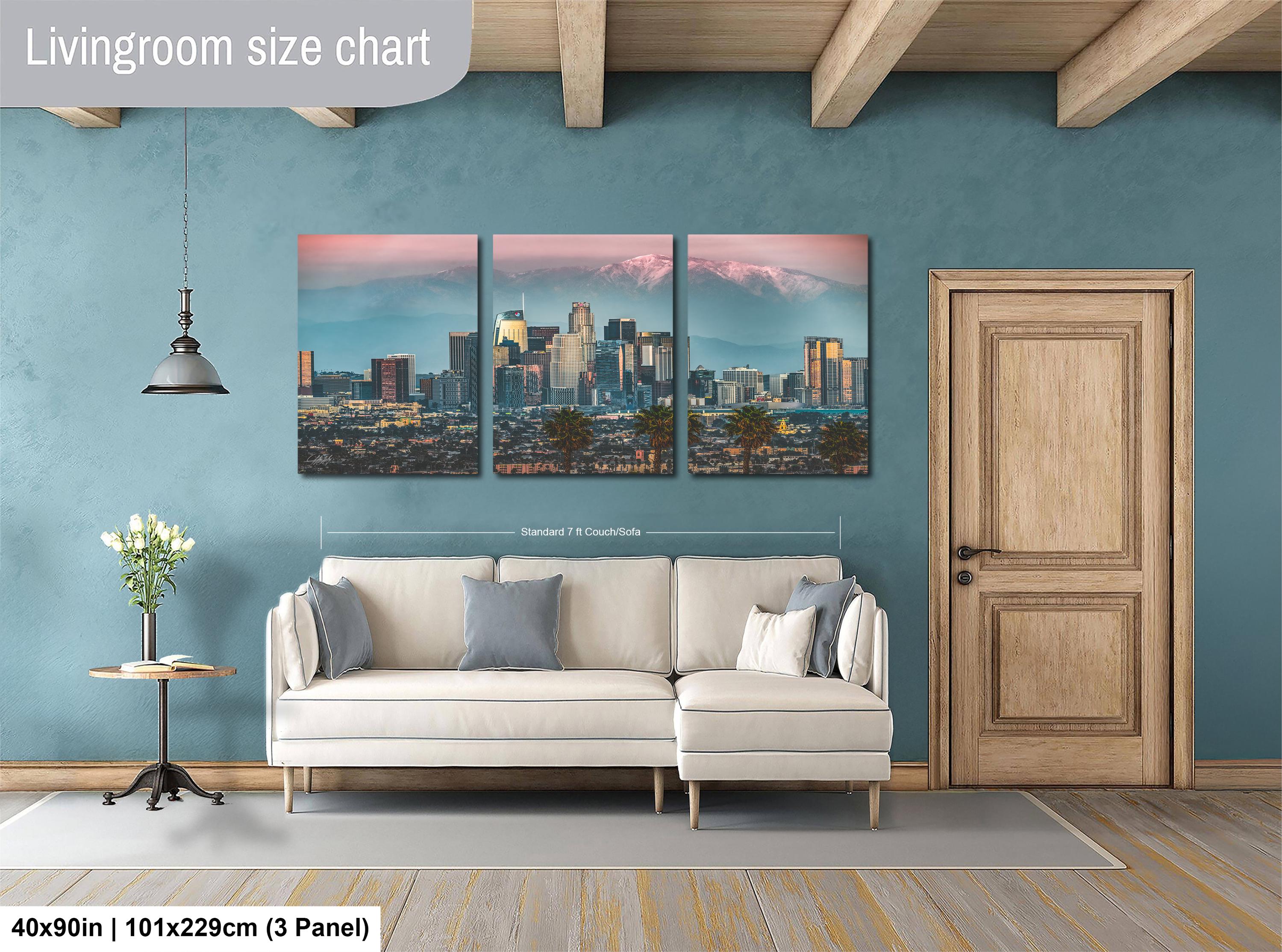 • Dimensions and customization options available upon request • No returns due to custom creation, but exchanges or replacements are offered for damaged items • Perfect as cityscape wall art or an urban sunset print for any California landscape enthusiast