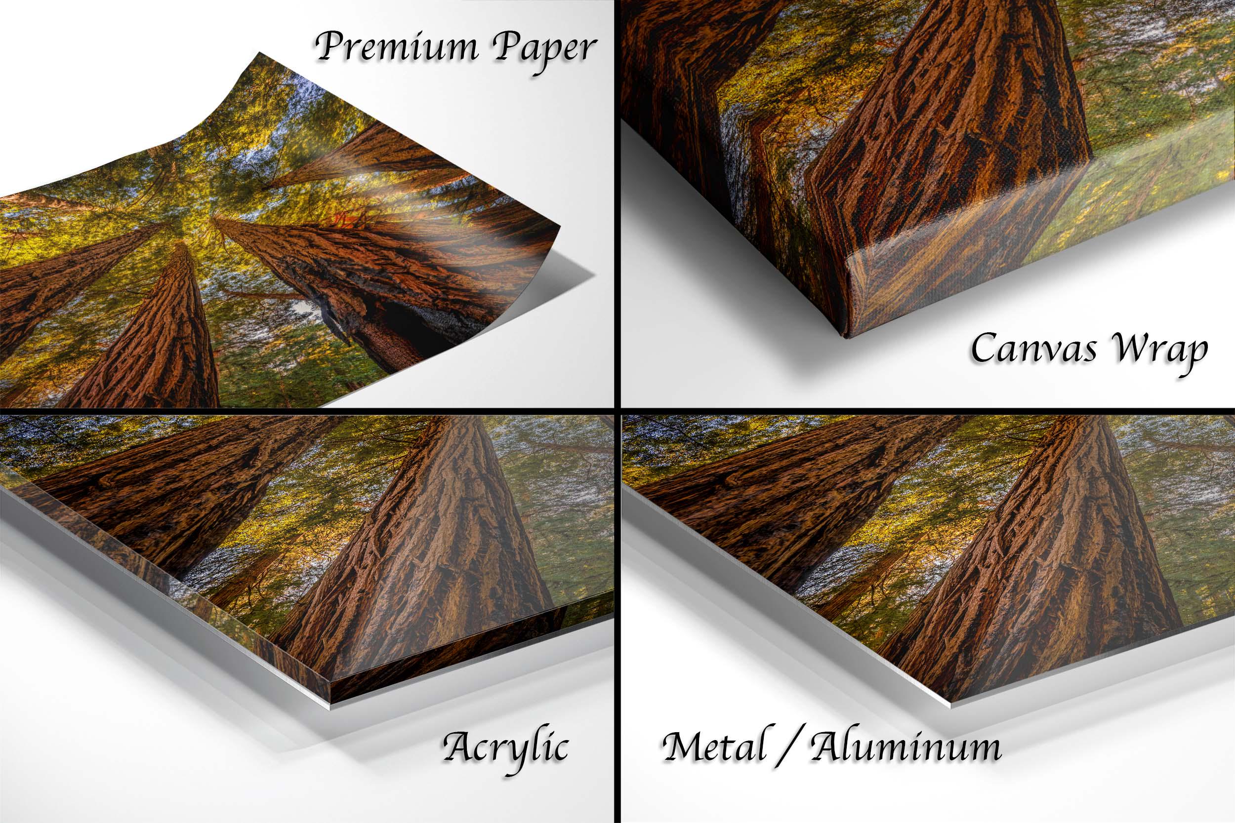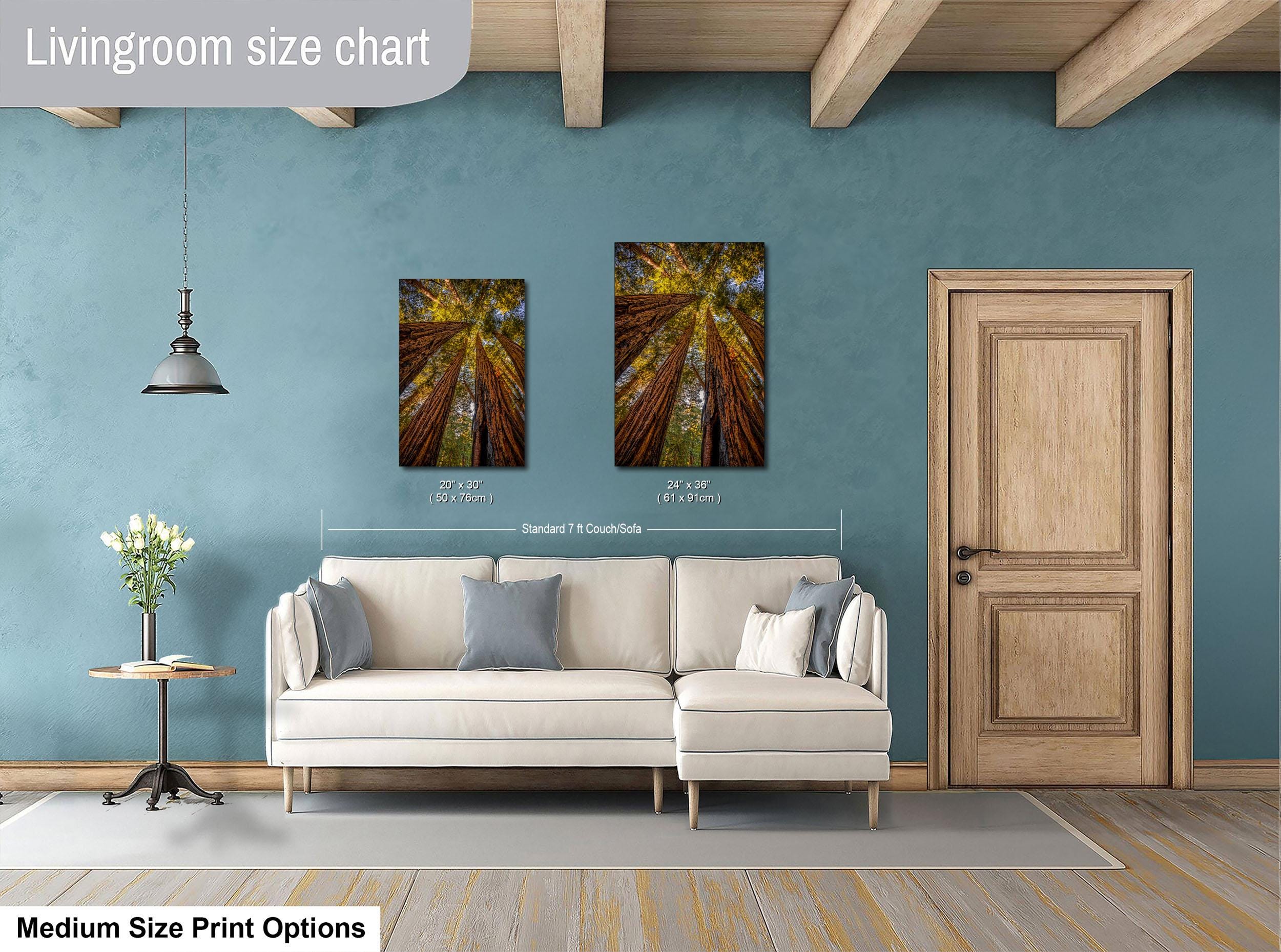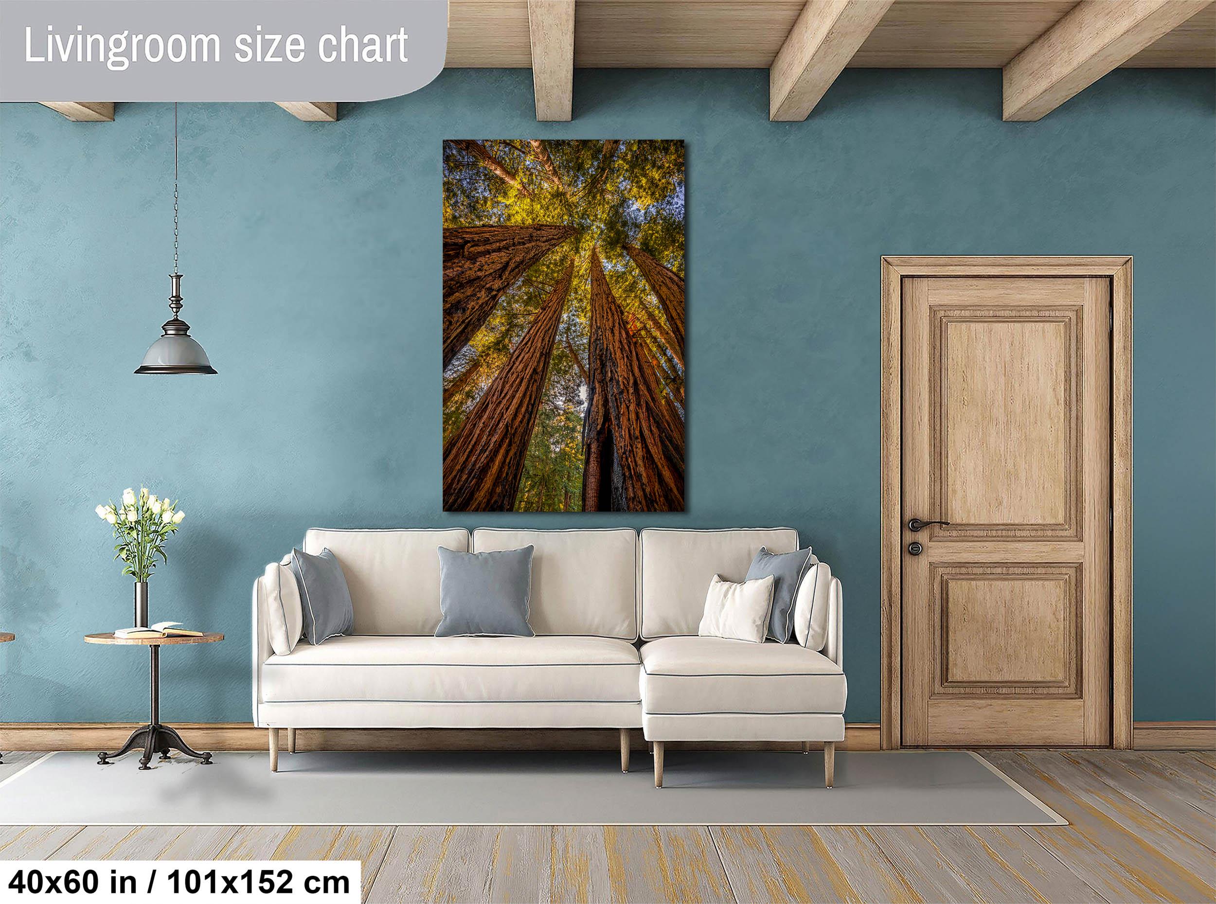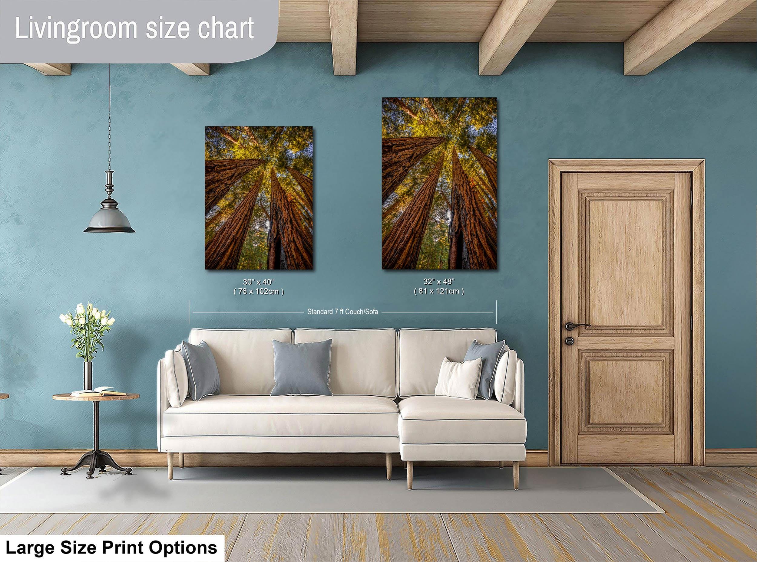 Step into a world where ancient redwood trees tower like silent guardians of time. Our San Francisco landscape print showcases the grandeur of these giants, bathed in soft sunlight filtering through dense foliage. This redwood poster is perfect for nature lovers and those seeking California decor that evokes tranquility and awe.