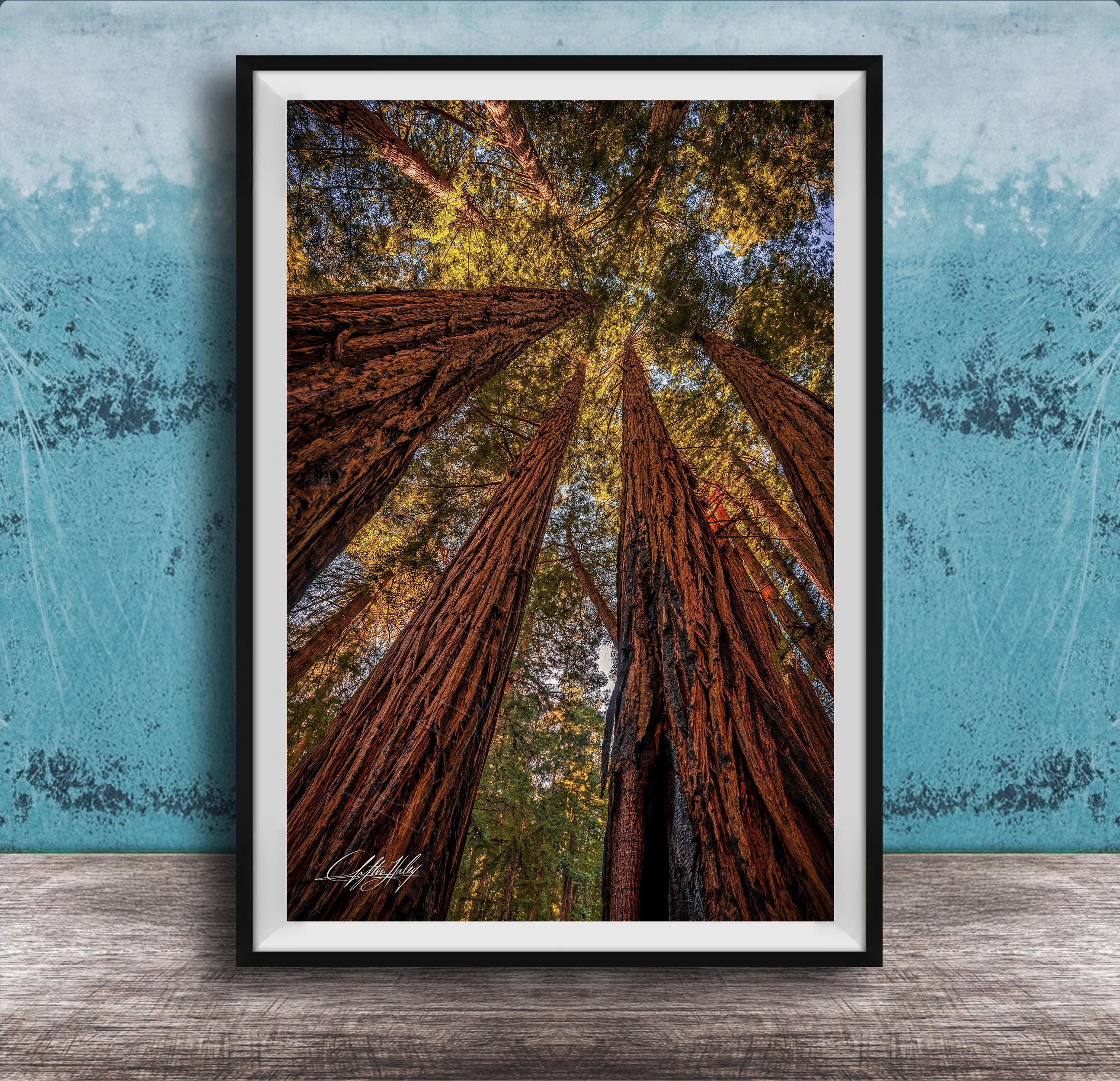 Discover this stunning Redwood picture, a national park poster capturing the majestic redwoods in Muir Woods. This tree poster brings the serene beauty of California's nature photography print into your home.