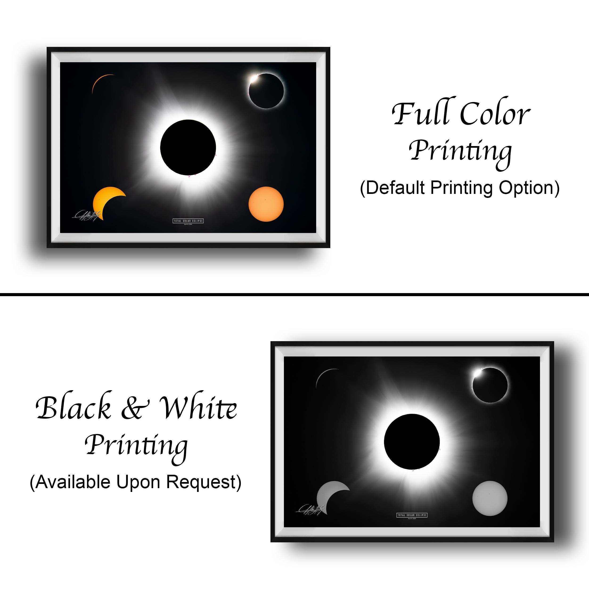 This exclusive artwork celebrates the 2017 eclipse legacy while capturing the 2024 total solar eclipse’s breathtaking moment. The sun-moon alignment is depicted with precision, making it an inspiring addition to any collection of celestial dance art or educational prints.