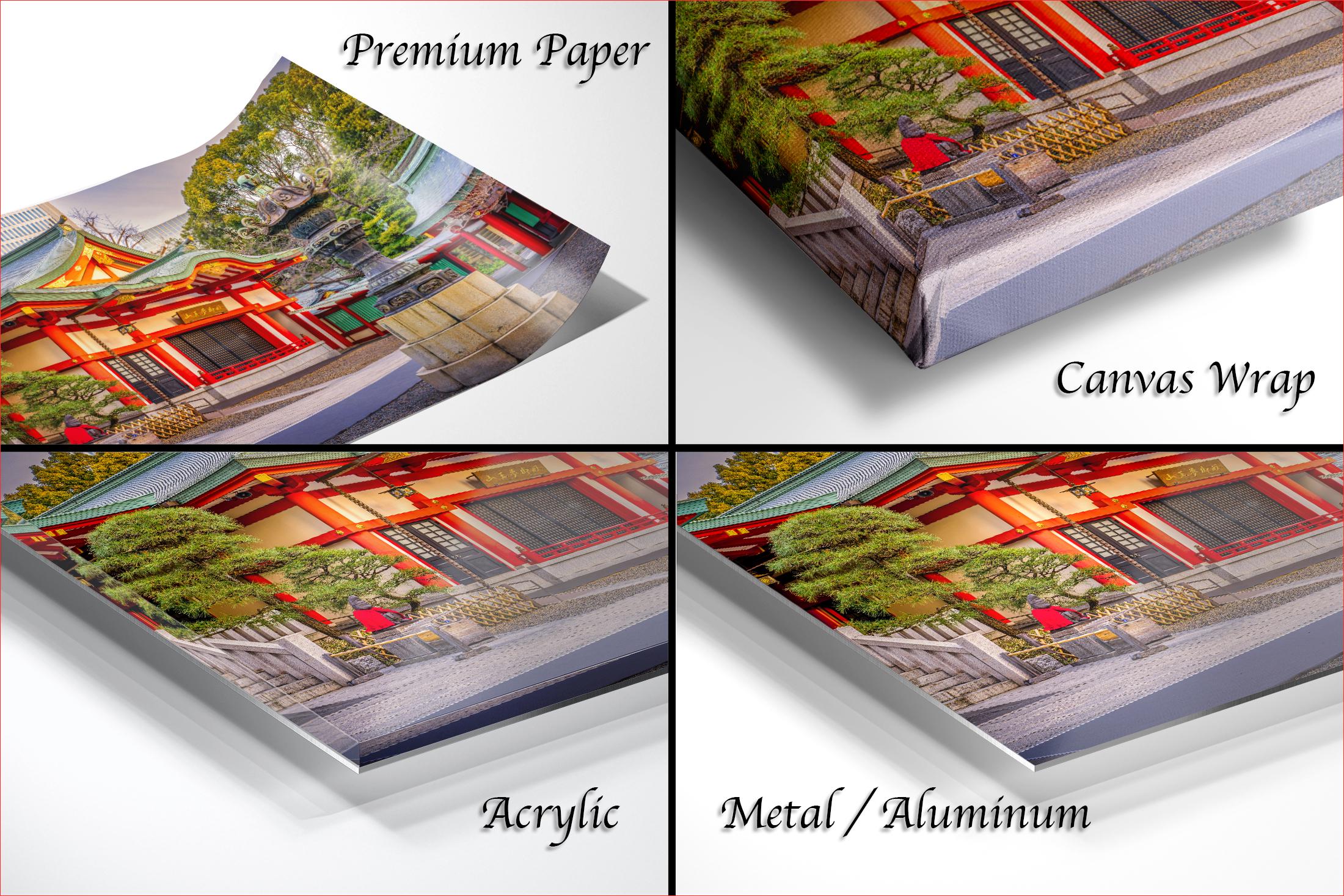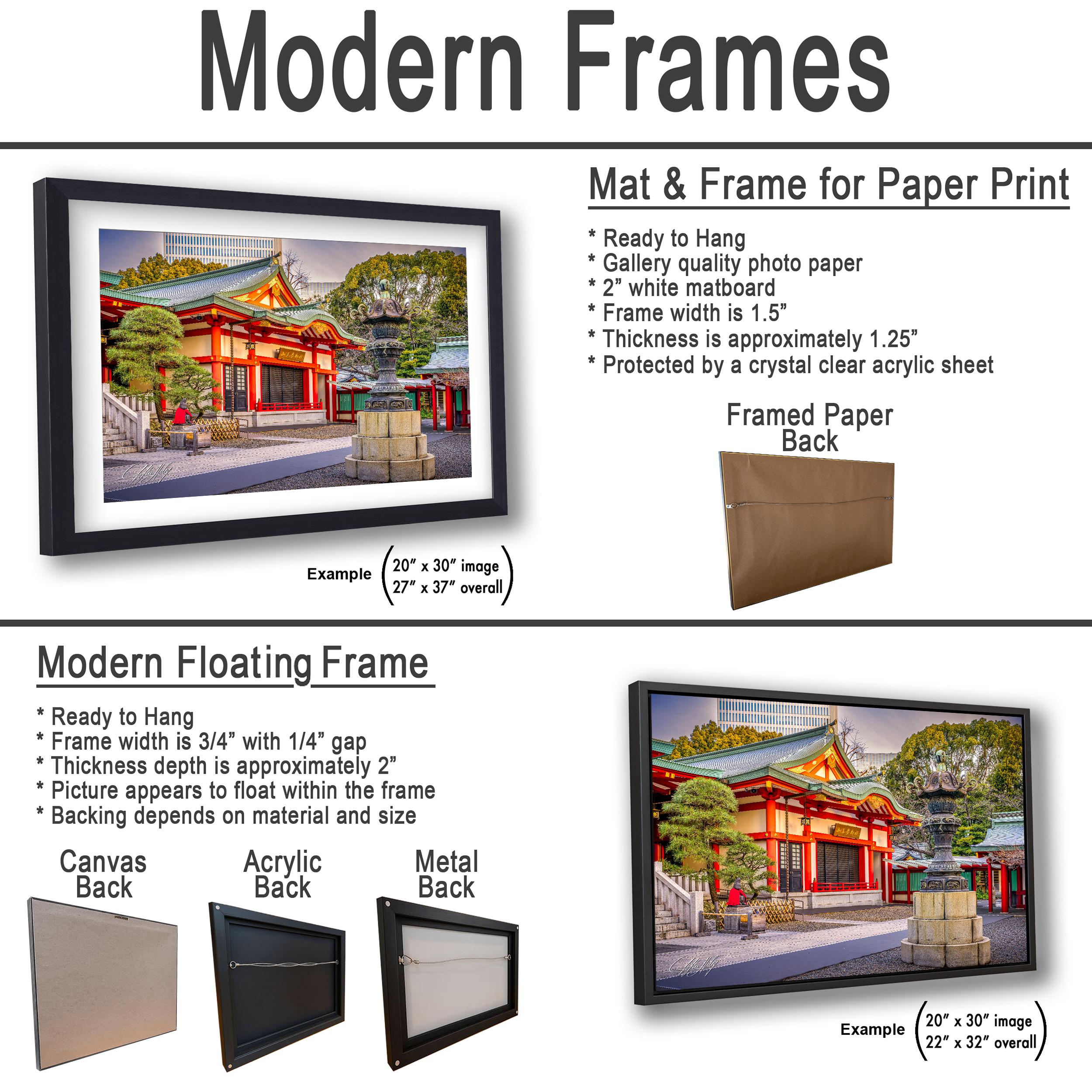 3.1) Only framed paper prints, acrylics and aluminum/metal prints will have a 2" white mat border. 3.2) Canvas prints will be a flush mounted (no mat border) to the frame.