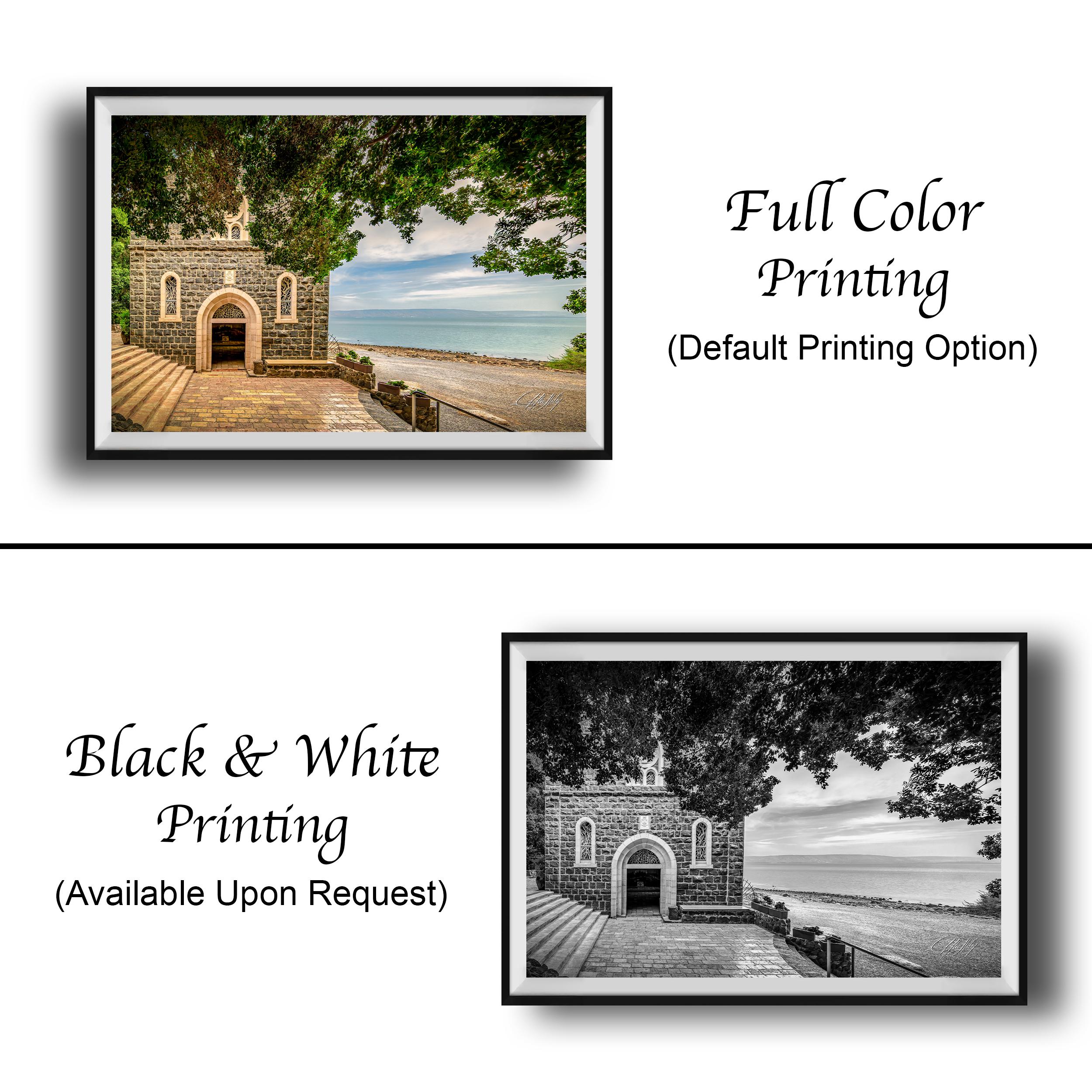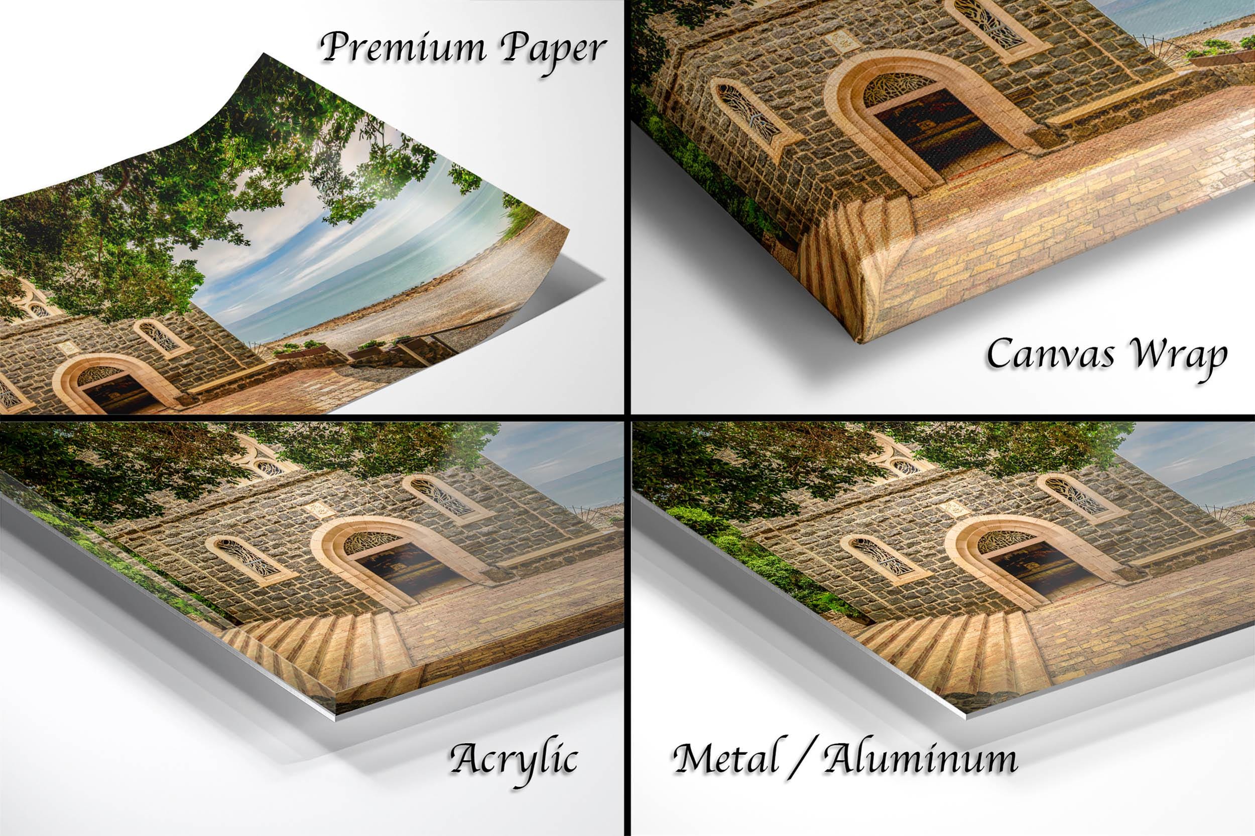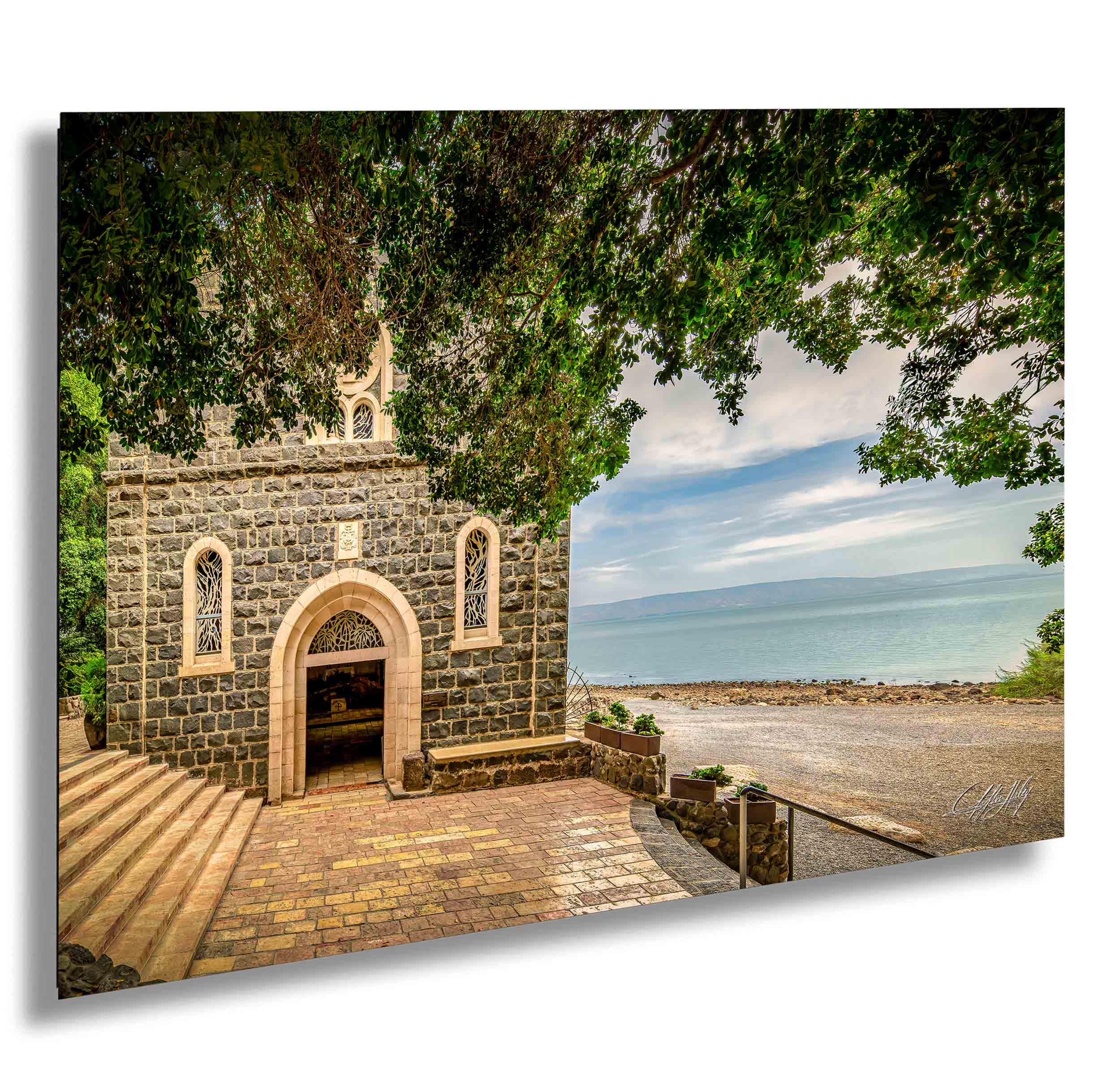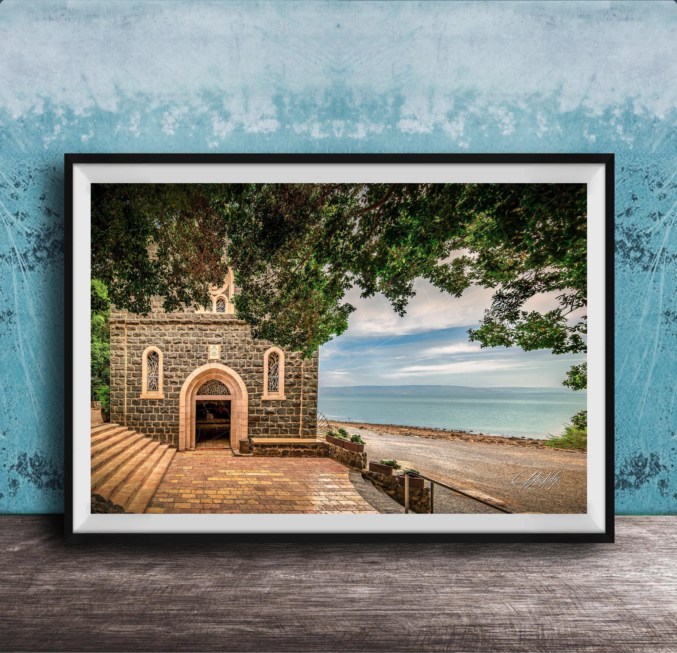 The Holy Land Church of Saint Peter art captures a timeless moment of faith and history on canvas. This Israel canvas print brings the serene landscape of the Sea of Galilee and the sacred Church of the Primacy into your space, perfect as a Catholic patron gift or meaningful biblical wall decor.