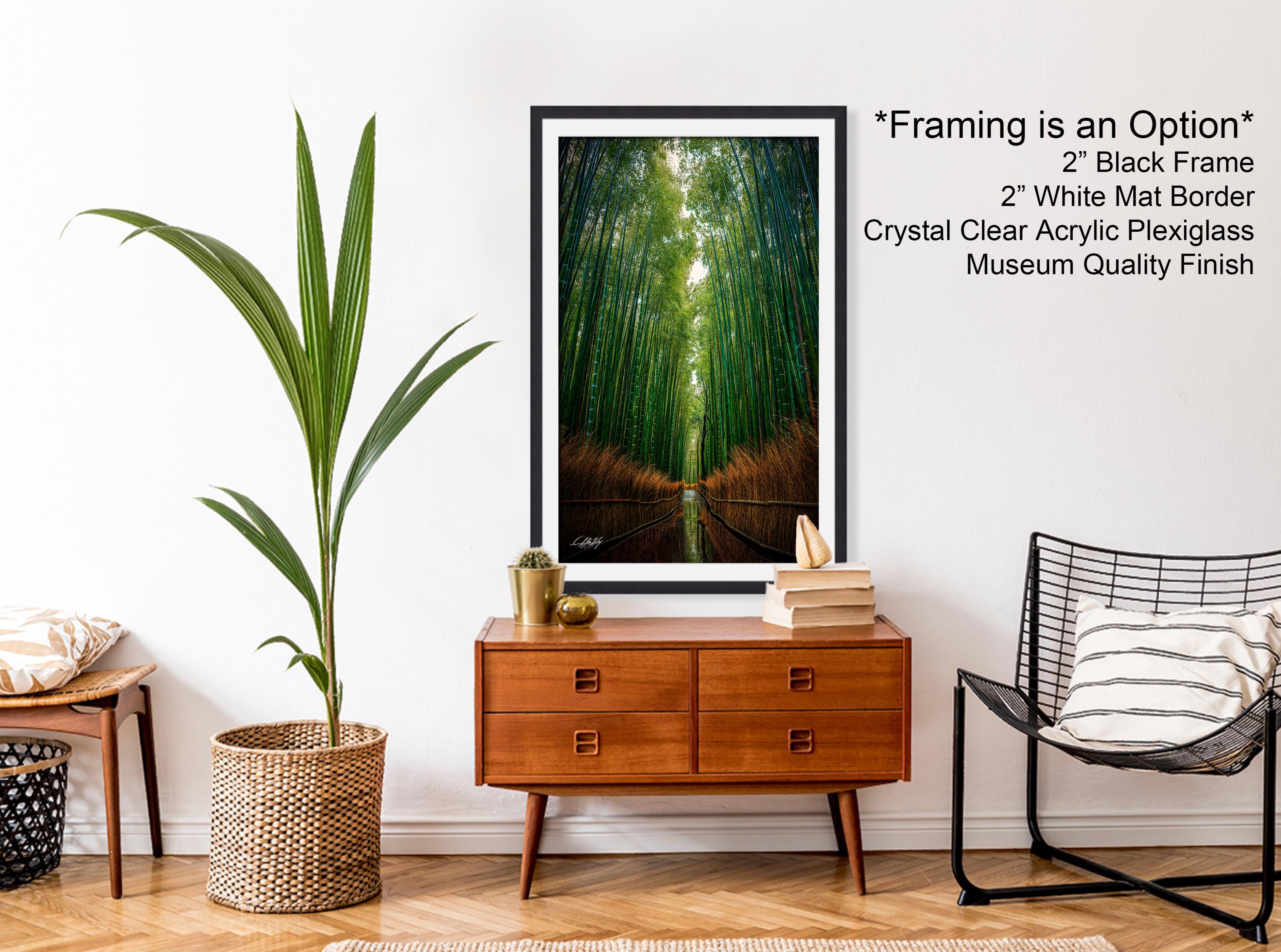 3.1) Only framed paper prints, acrylics and aluminum/metal prints will have a 2" white mat border. 3.2) Canvas prints will be a flush mounted (no mat border) to the frame.