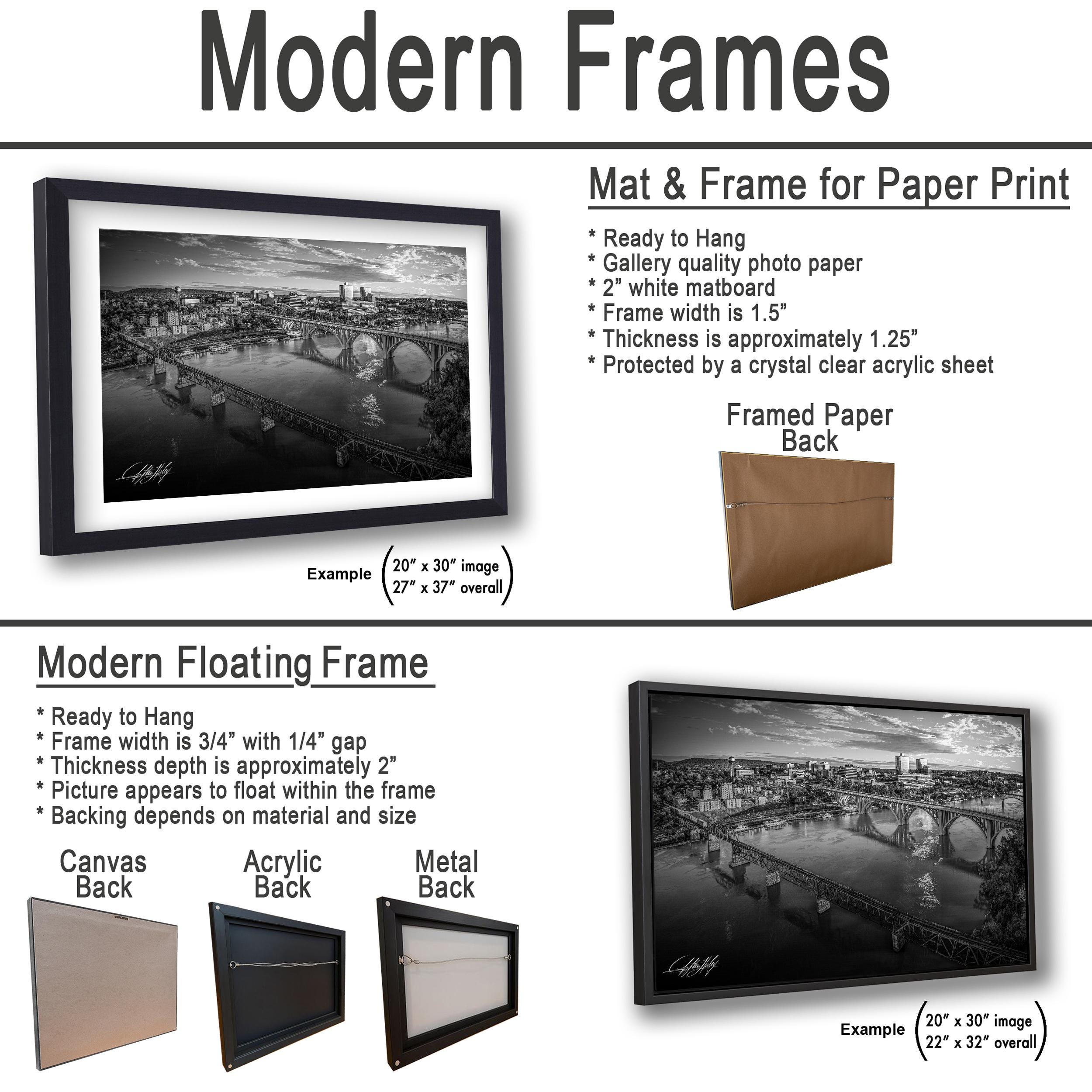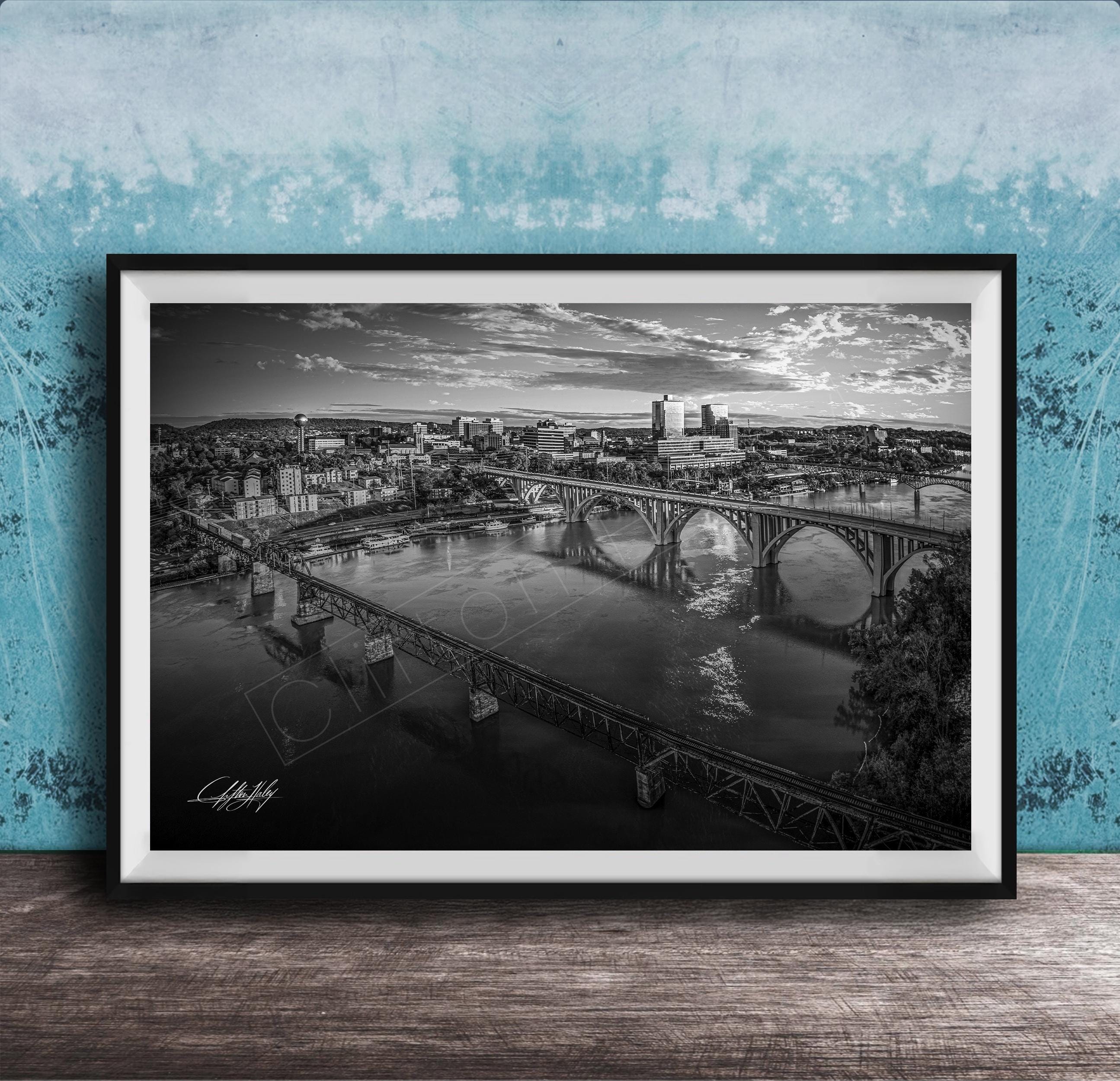 Add this timeless Knoxville scenic artwork to your decor today and enjoy a beautiful homage to Tennessee’s iconic river and bridges year-round.