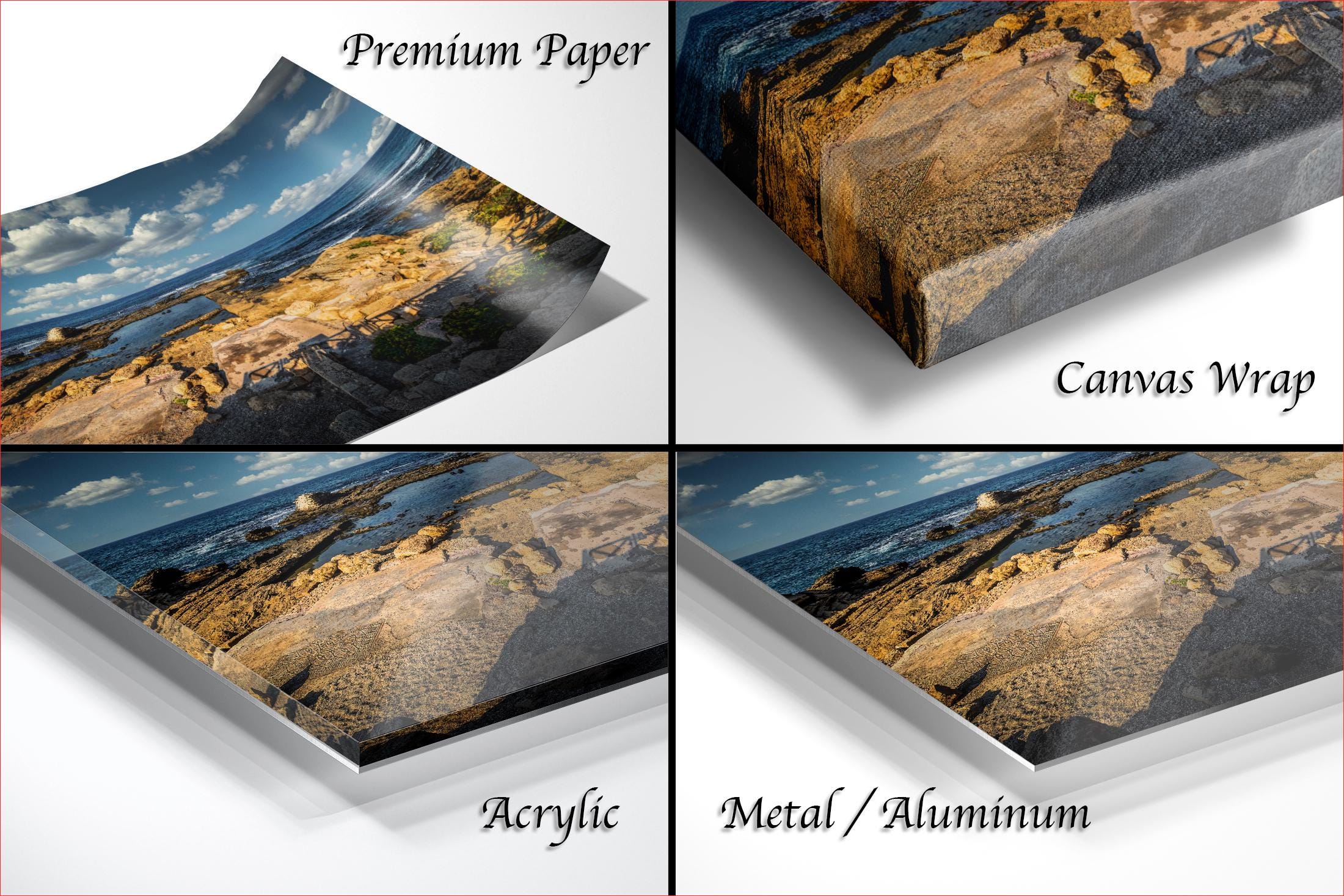 Caesarea by the Sea Canvas invites you to bring a piece of Israel's stunning landscape art into your home. This made-to-order print captures the ancient port's serene beauty, blending history and nature in a timeless scene.