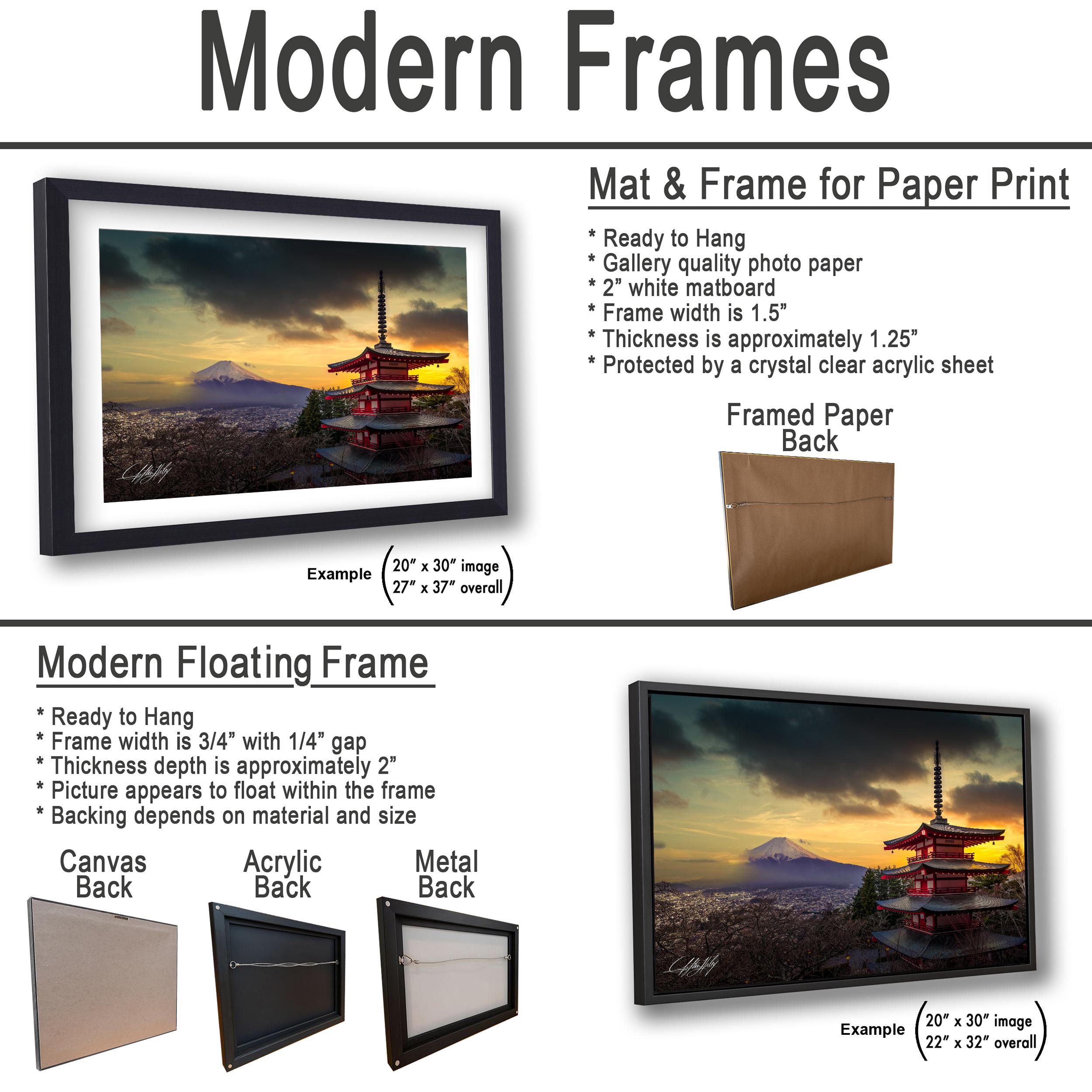 1. Each piece is custom created specifically for you, so we do not offer returns; however, if your artwork arrives damaged or with any issues, we will gladly exchange or replace it. 2. The artist’s signature in the bottom corner adds a personal touch and certifies the work as an original creation. 3. Canvas prints are flush mounted to the frame, while framed paper prints, acrylics, and metal prints include a 2" white mat border.