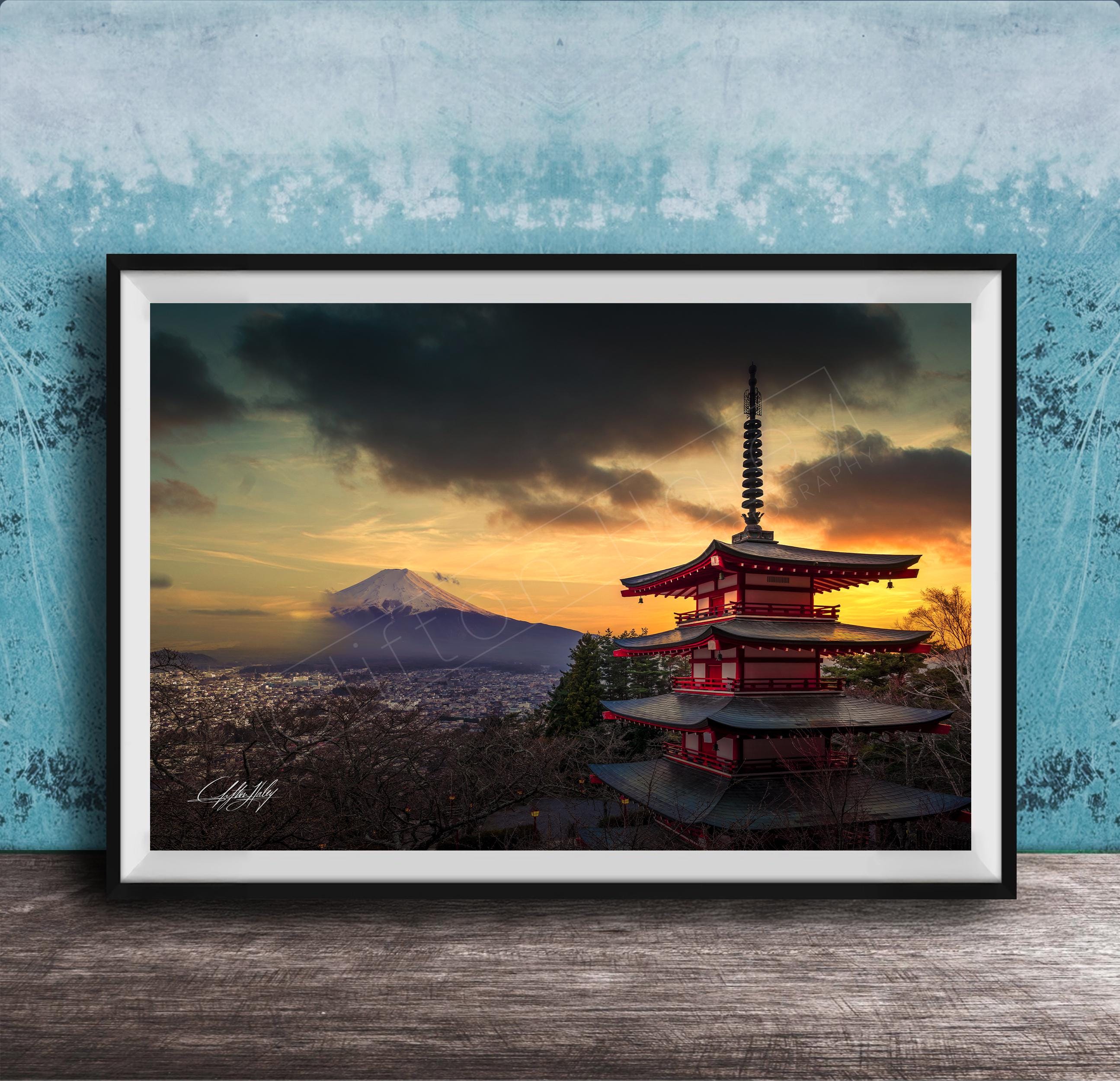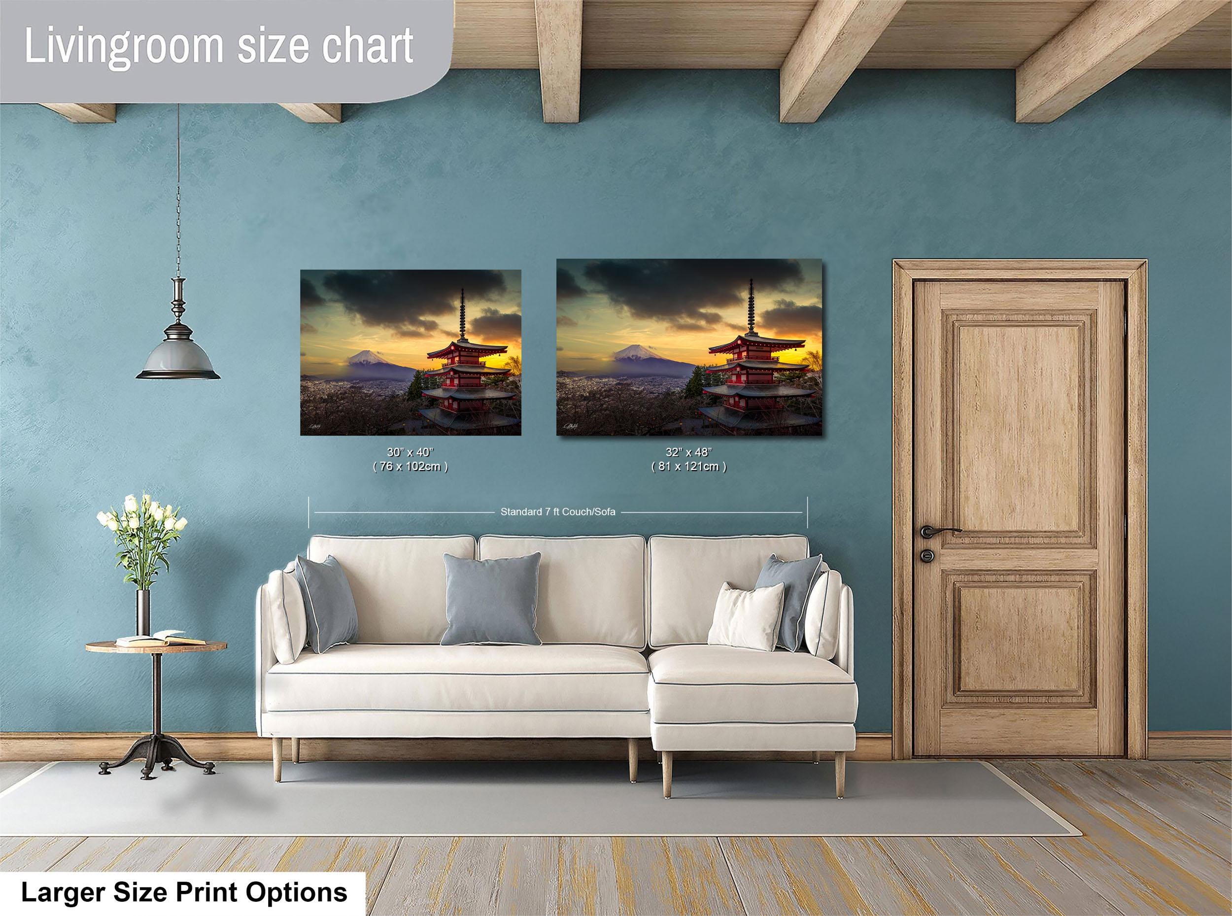 Bring the spirit of Mount Fuji and the delicate beauty of sakura blossoms into your home with this exquisite fine art canvas.