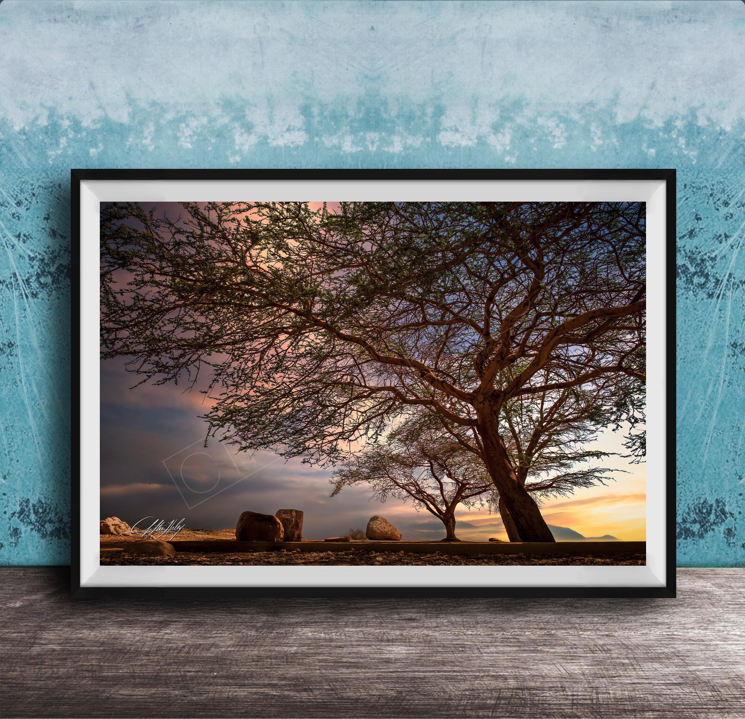 Engdi's Acacia Tree invites you to discover the timeless beauty of an ancient acacia tree, a symbol of resilience and history in Israeli nature art. This captivating print brings the serene Dead Sea Israel landscape into your home, blending natural splendor with spiritual wall decor.
