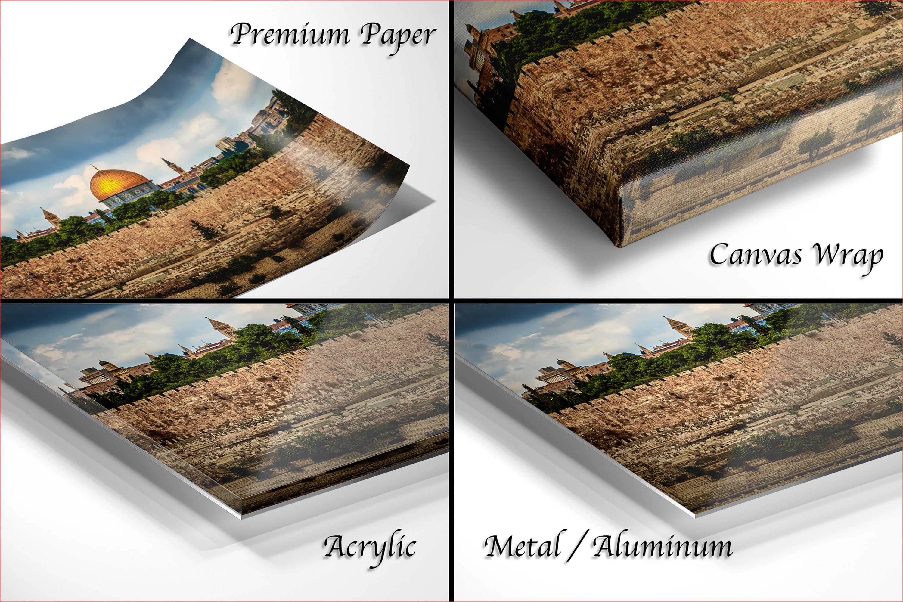 3.1) Only framed paper prints, acrylics and aluminum/metal prints will have a 2" white mat border. 3.2) Canvas prints will be a flush mounted (no mat border) to the frame.