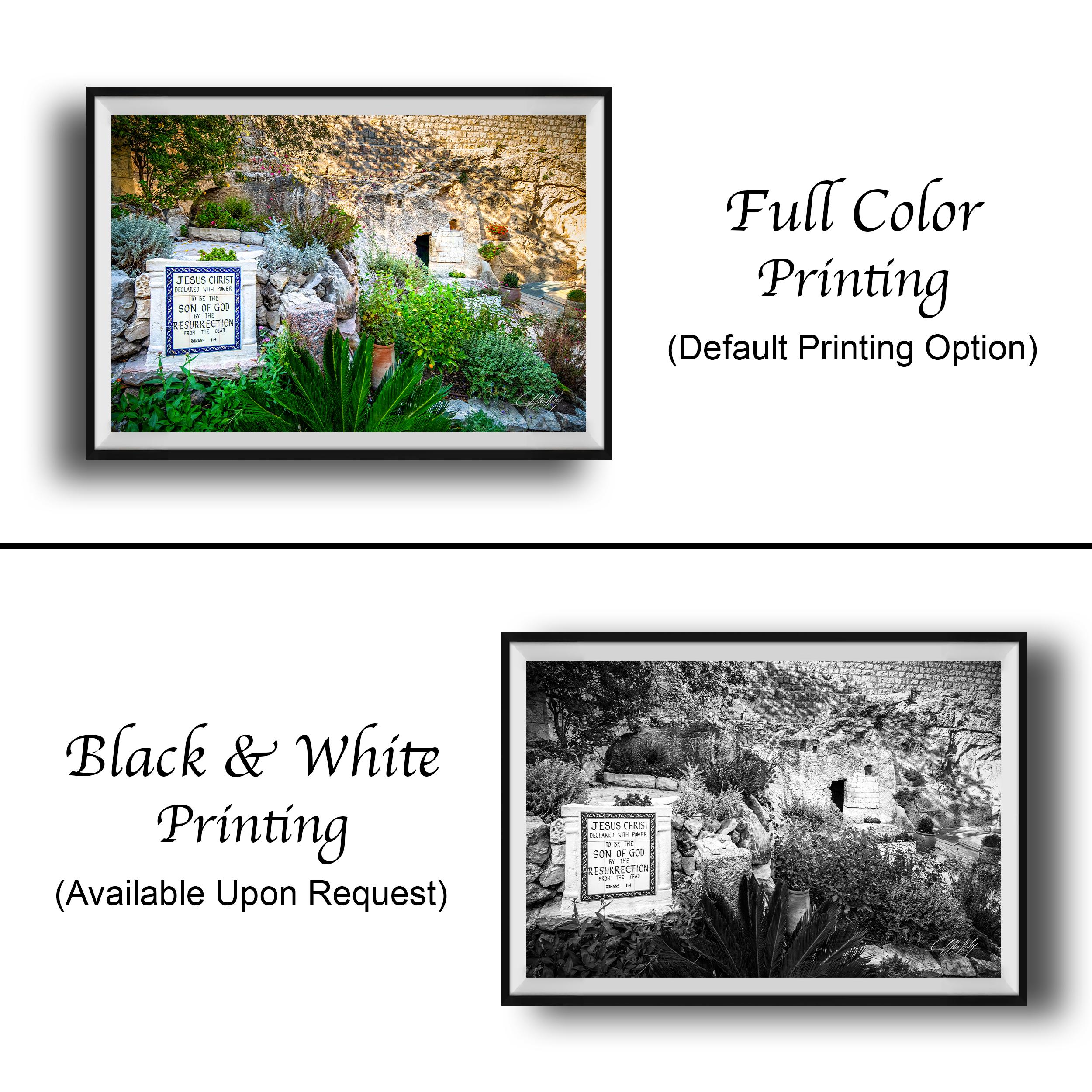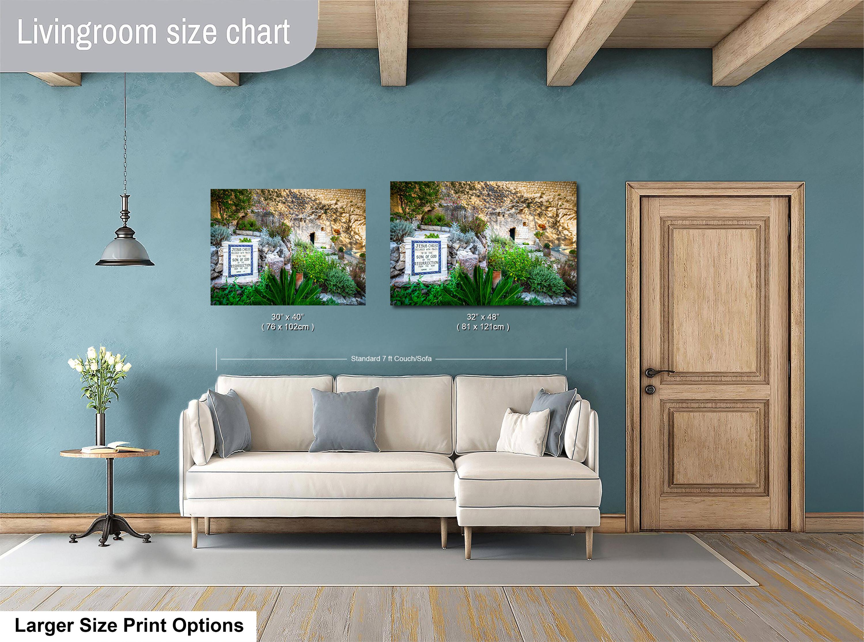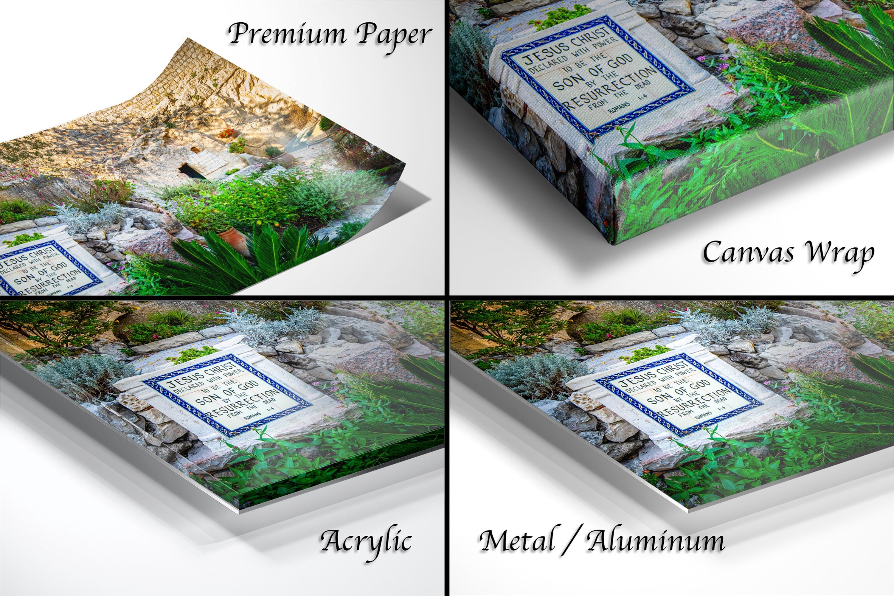 Bring the essence of the Garden Tomb into your space with this peaceful garden view artwork that celebrates faith and renewal.