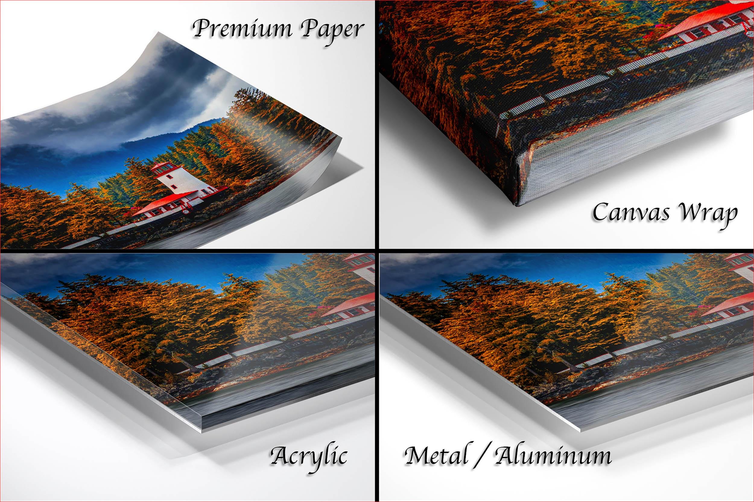 3.1) Only framed paper prints, acrylics and aluminum/metal prints will have a 2" white mat border. 3.2) Canvas prints will be a flush mounted (no mat border) to the frame.