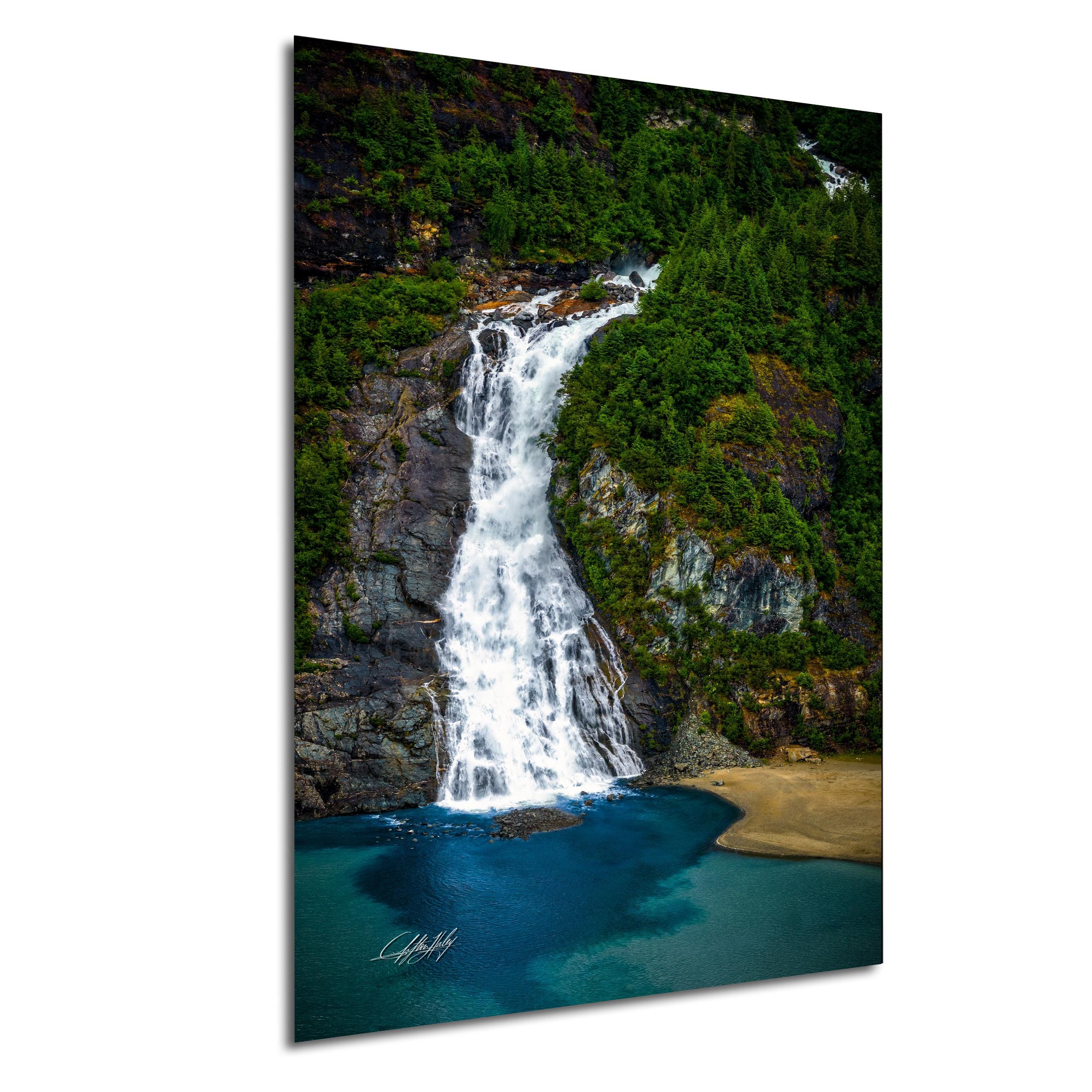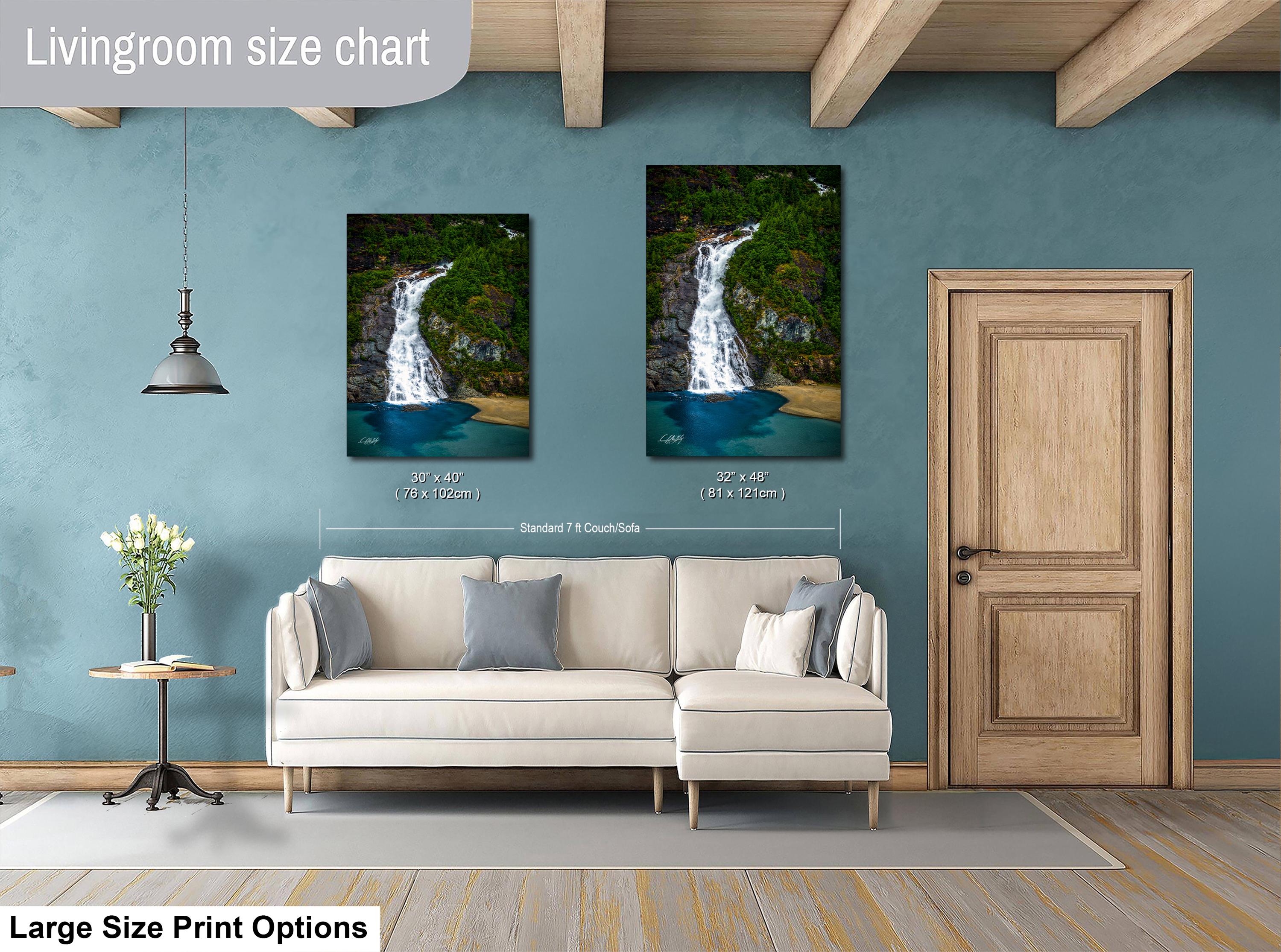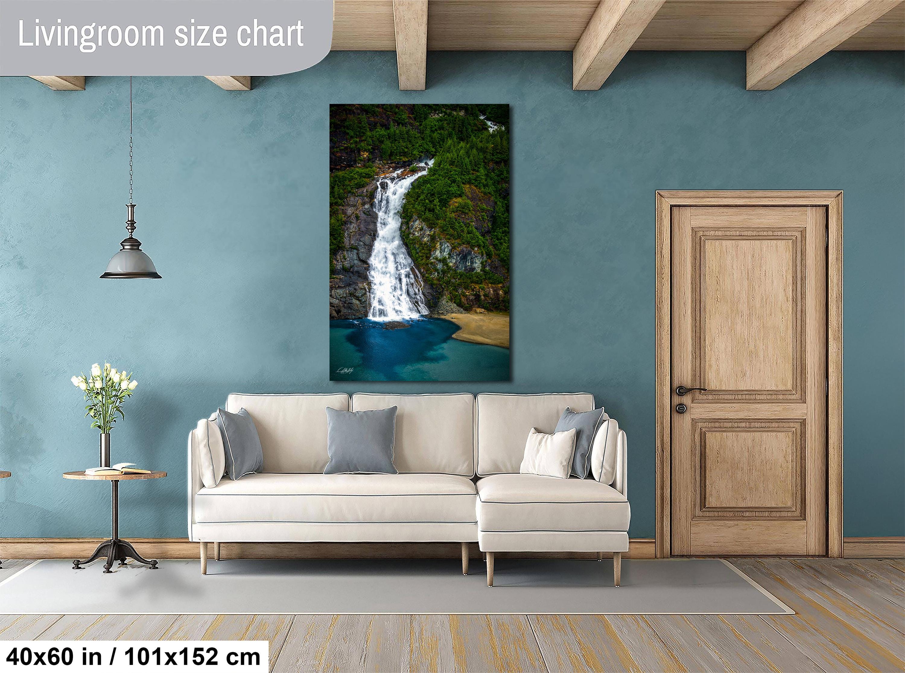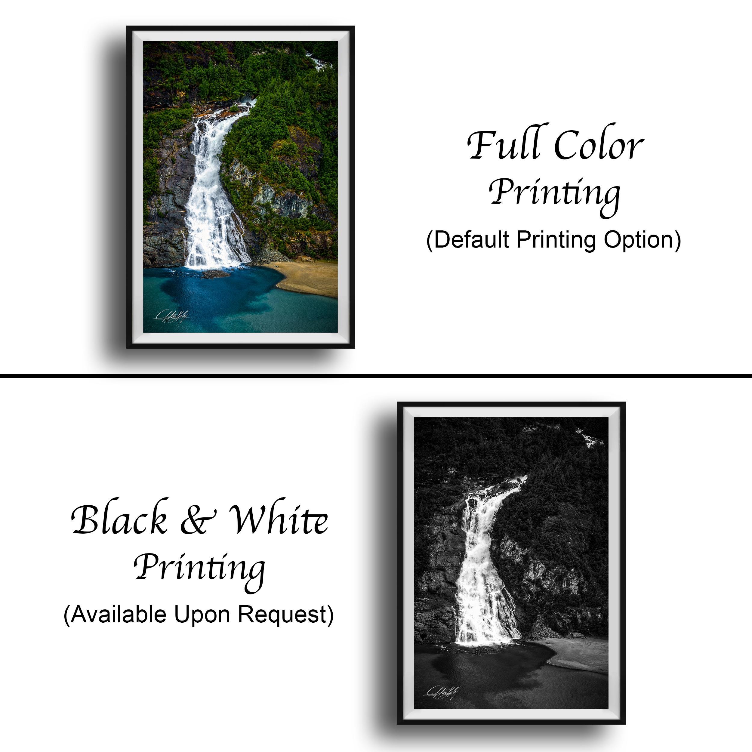 Shipping typically takes 1-2 weeks depending on customization. Add a touch of nature's grandeur with this captivating waterfall landscape print that celebrates the timeless beauty of Alaska.