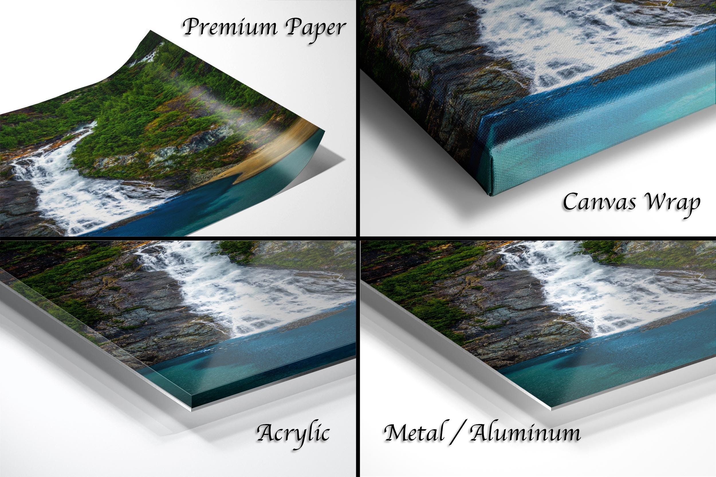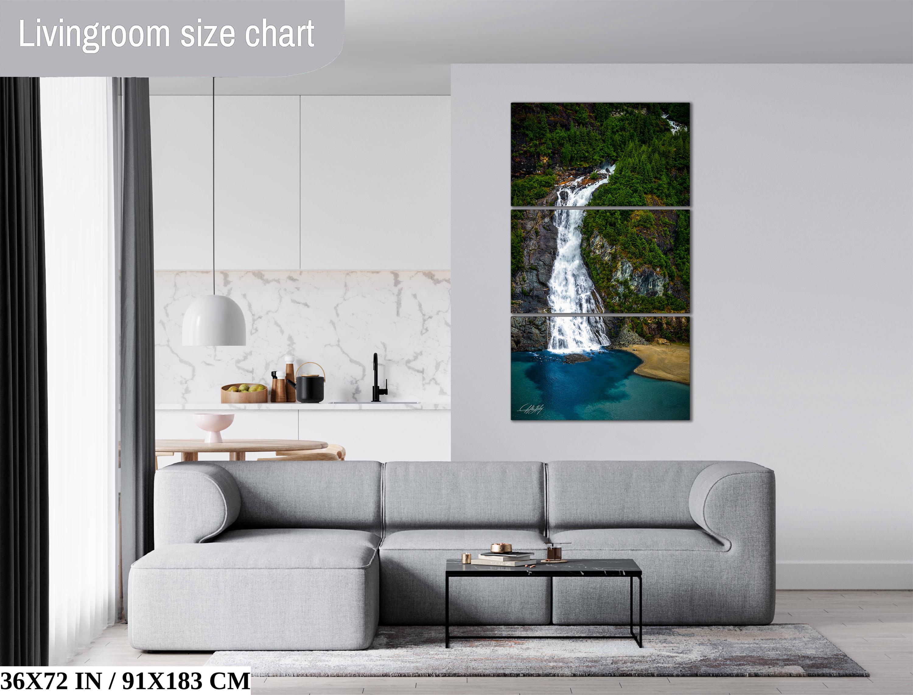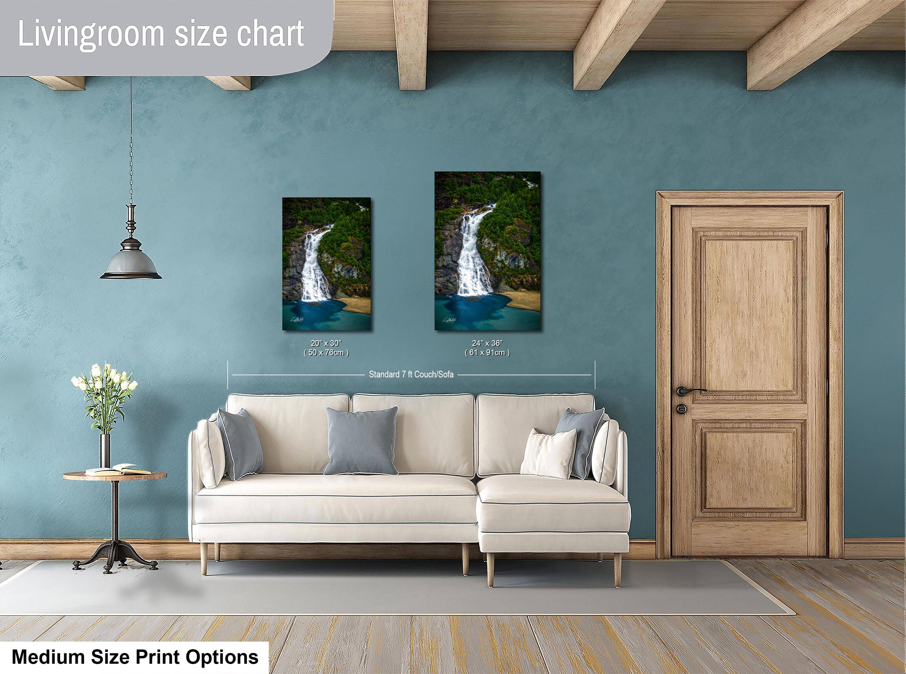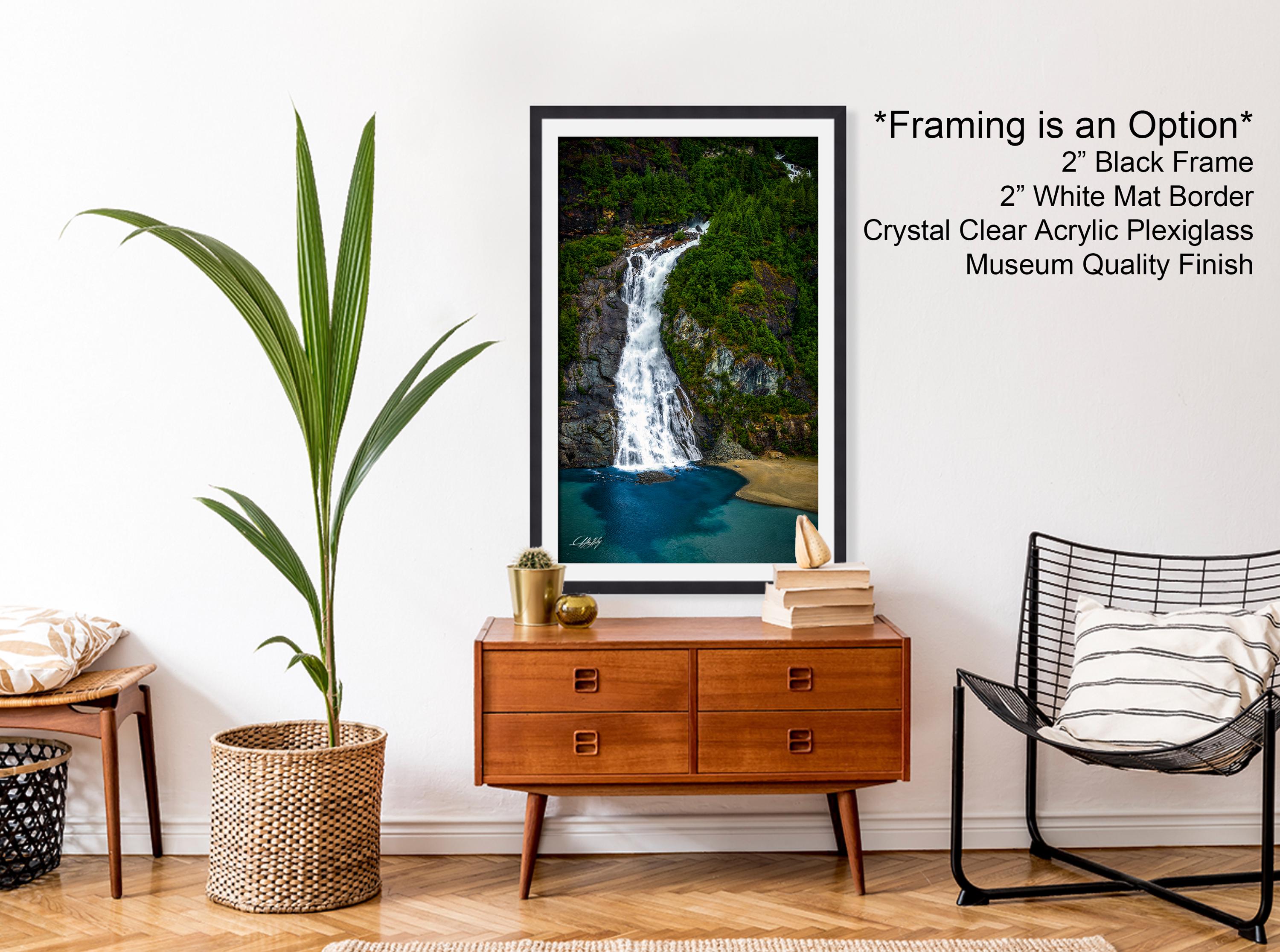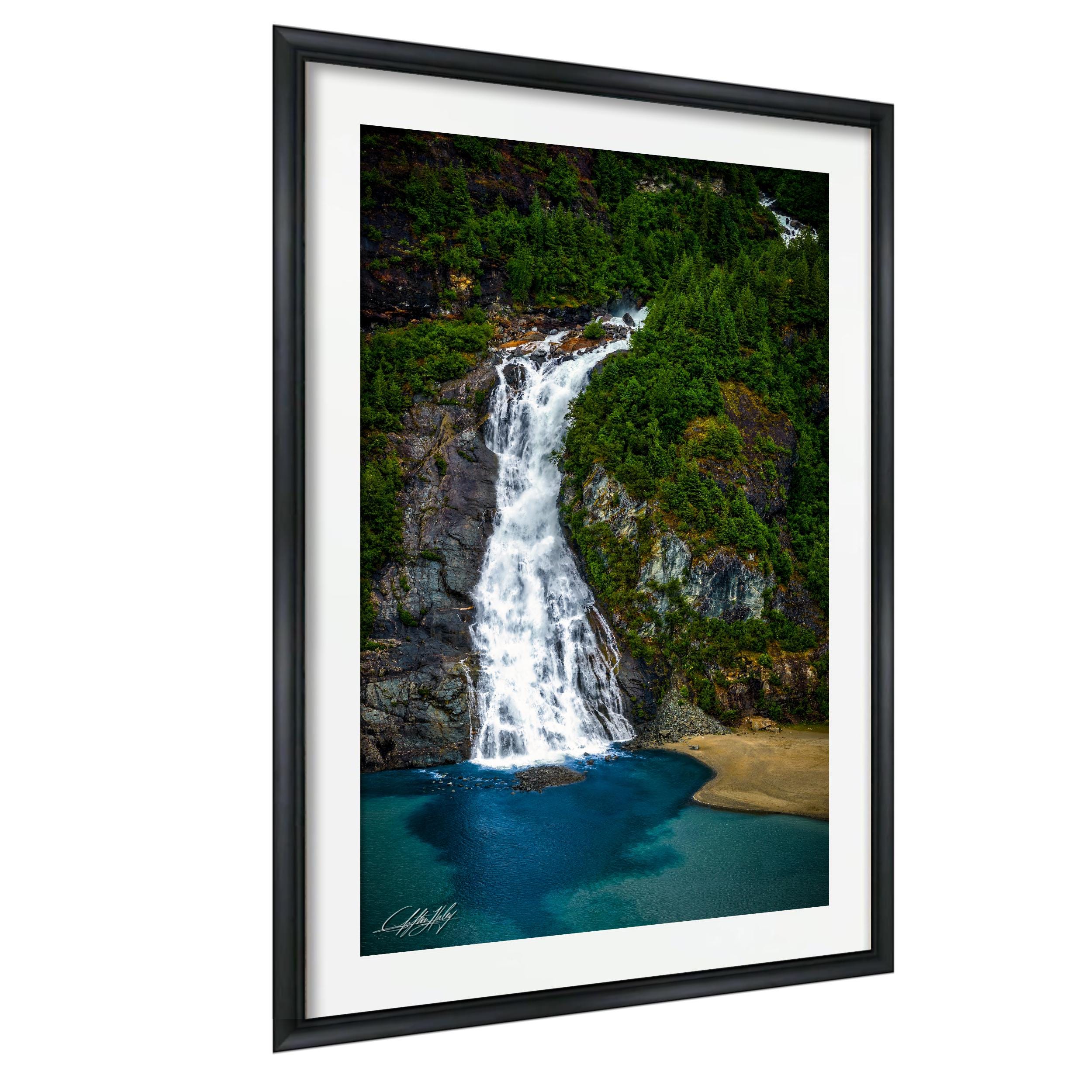 Shipping typically takes 1-2 weeks depending on customization. Add a touch of nature's grandeur with this captivating waterfall landscape print that celebrates the timeless beauty of Alaska.