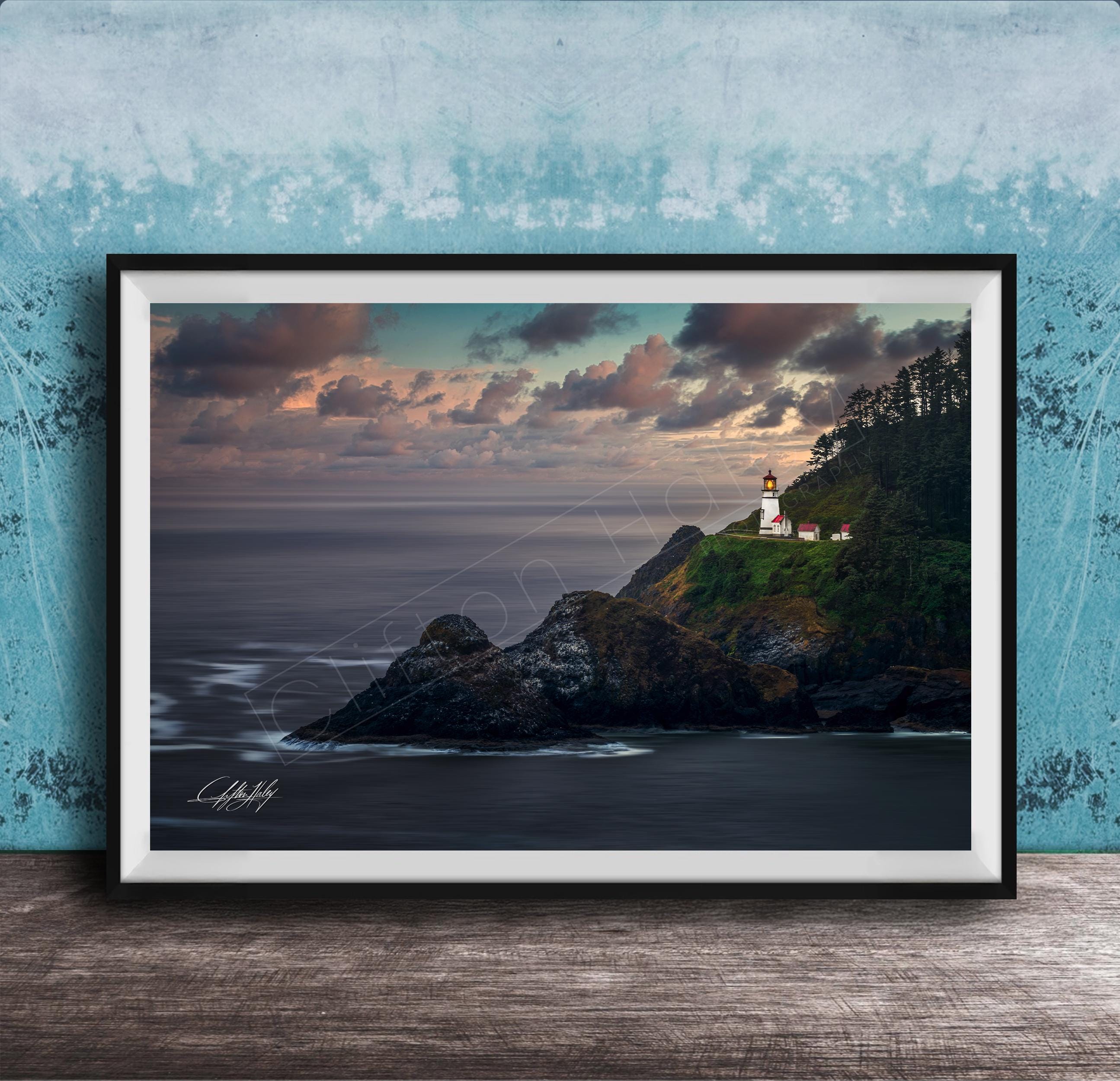 Celebrate the enduring light and history of Heceta Head Lighthouse with this captivating coastal wall art that invites you to dream of sea breezes and endless horizons.