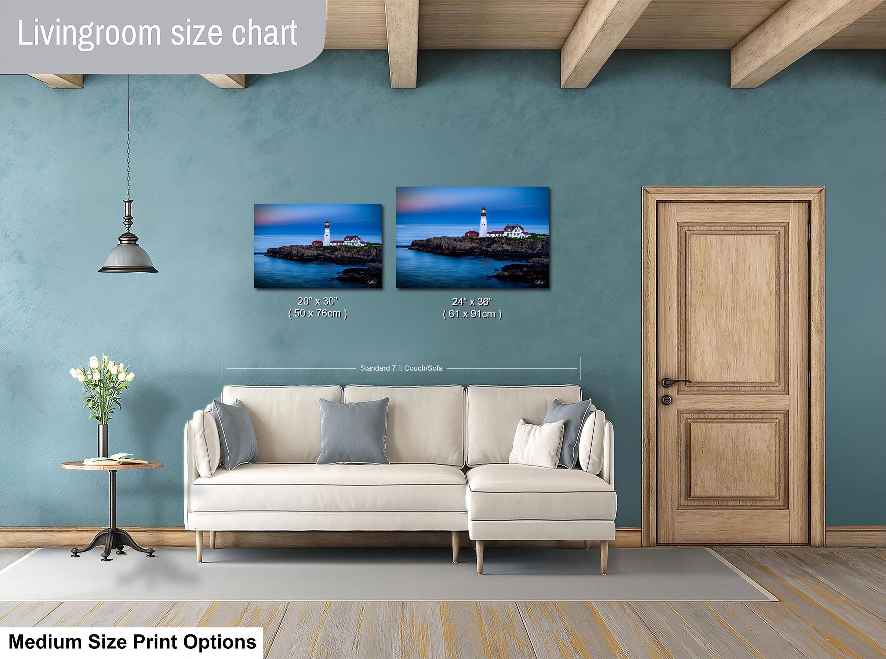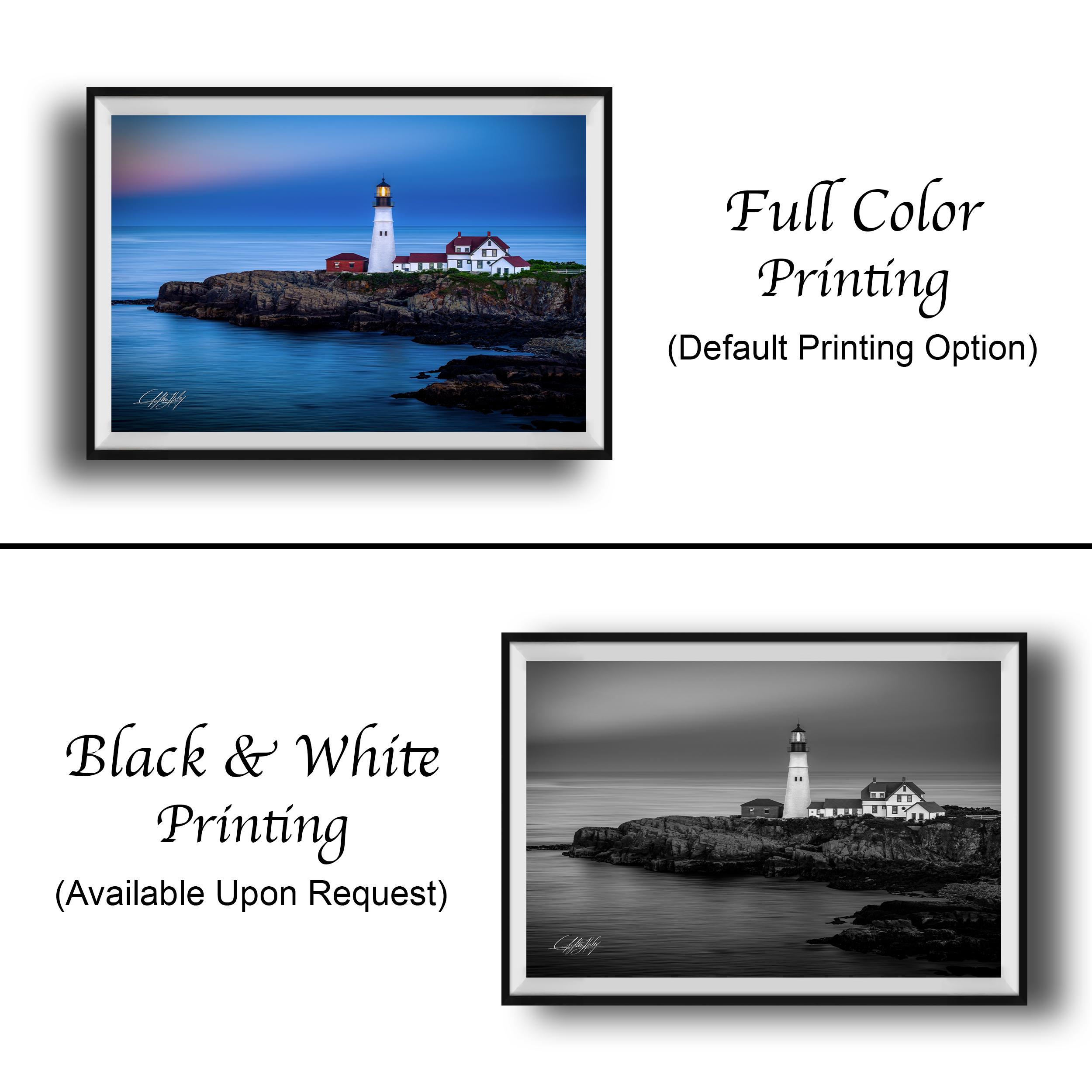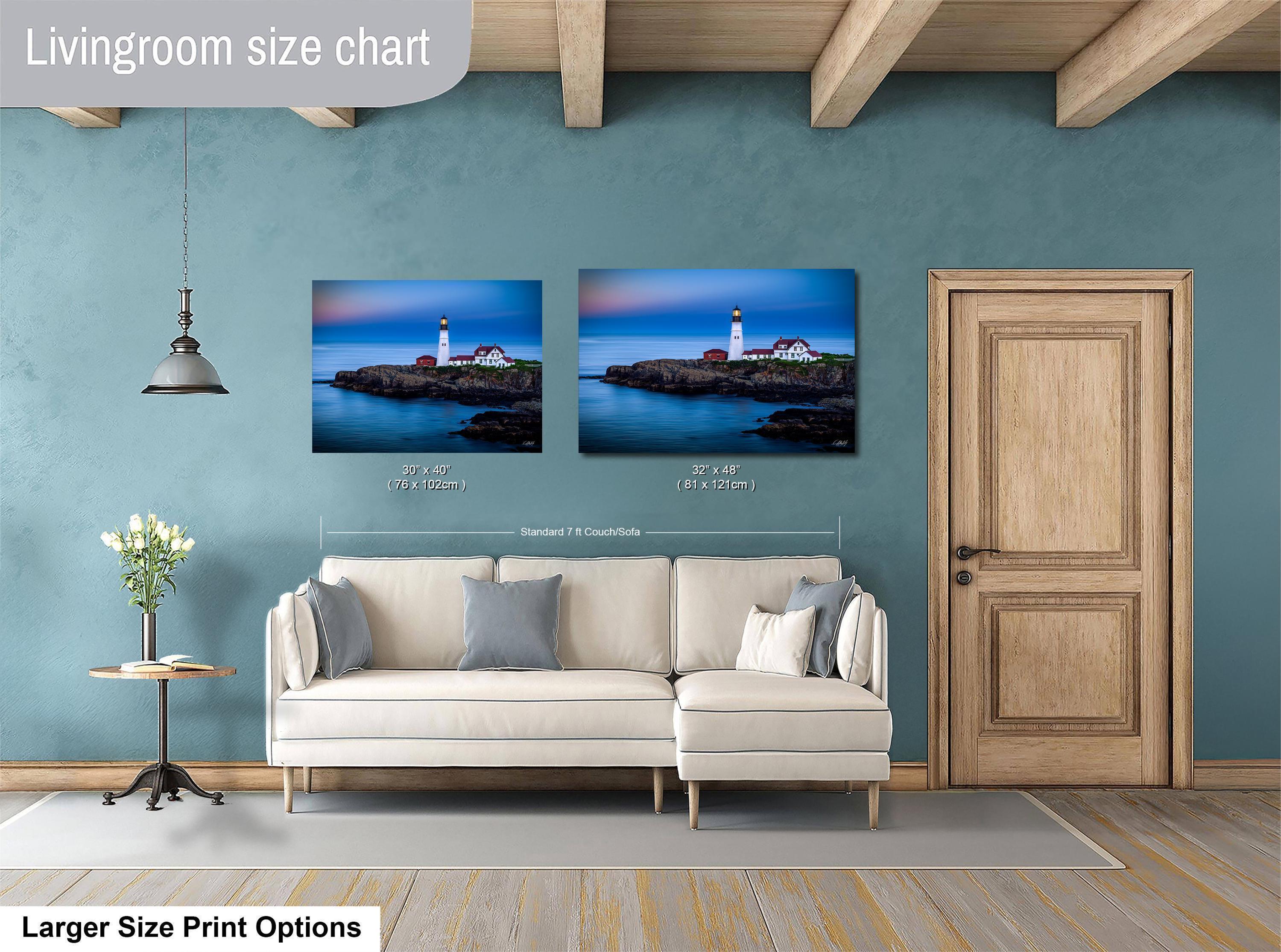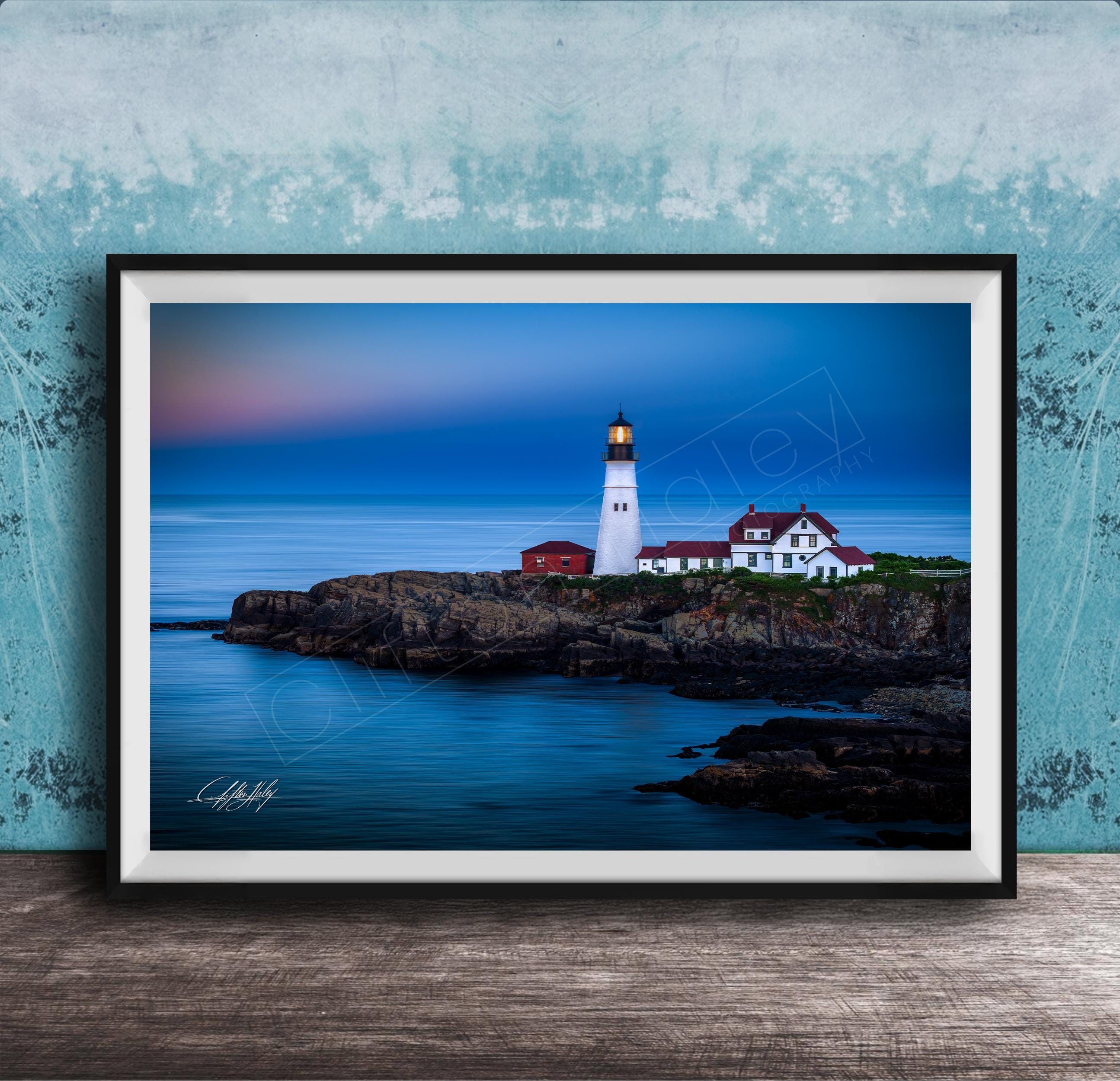 Maine Lighthouse Wall Art, Portland Head Light, Blue Hour Glow (Print)