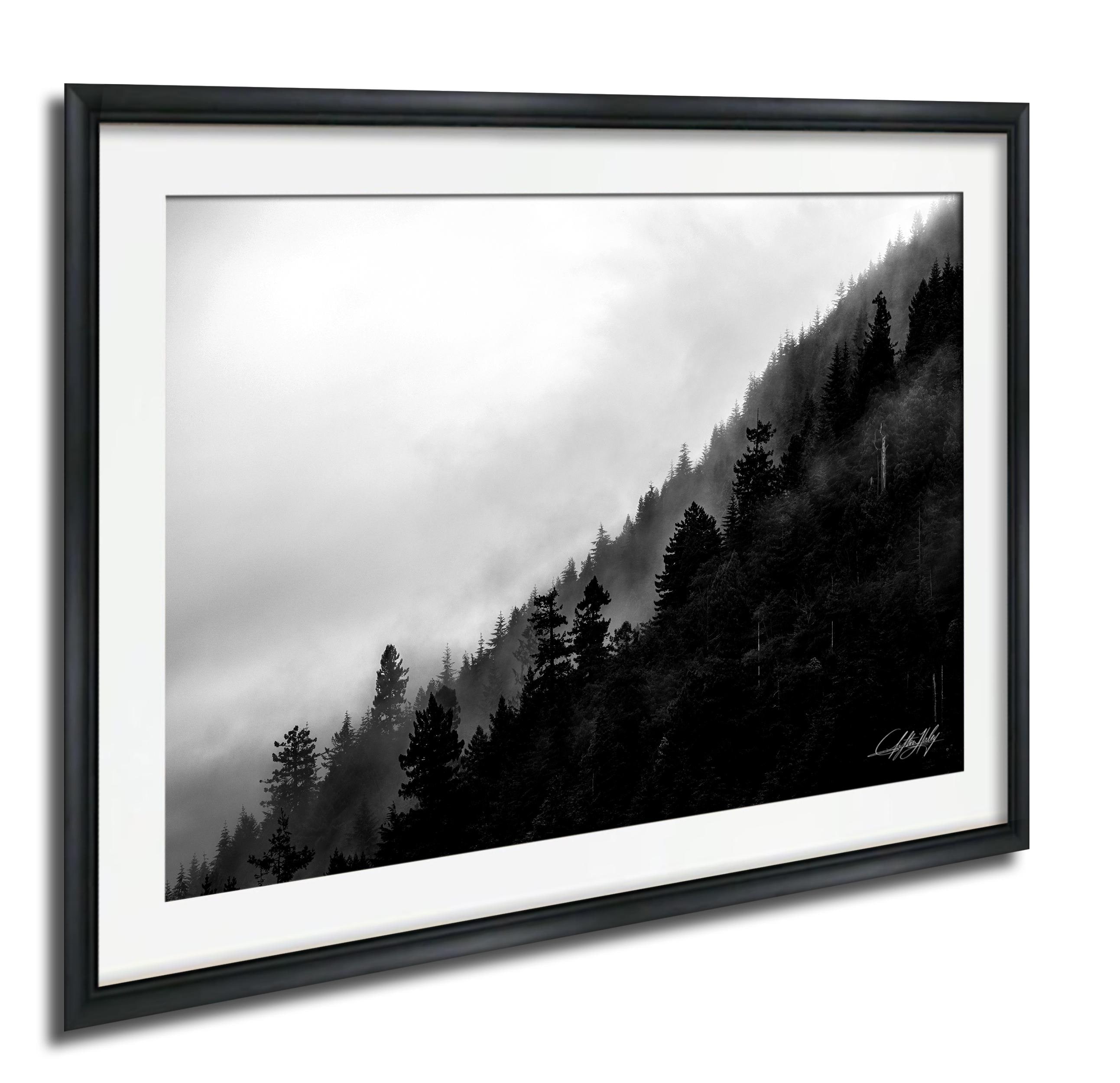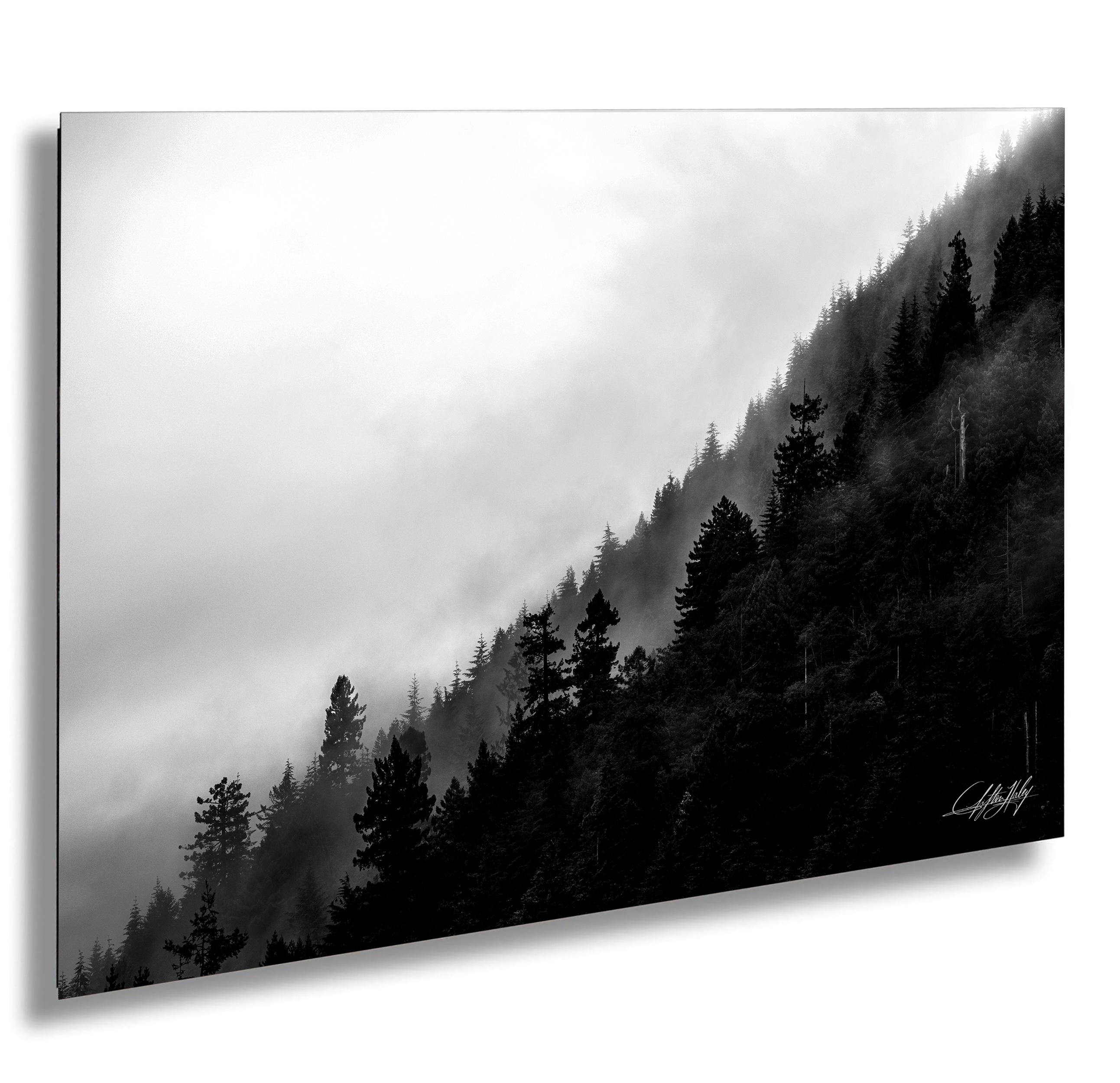 Immerse yourself in the serene beauty of this panoramic canvas print, inspired by the tranquil morning fog drifting through ancient Redwood National Forest pines. Each brushstroke reveals the silent embrace of mist weaving through towering trees, bringing a soothing atmosphere to your space.