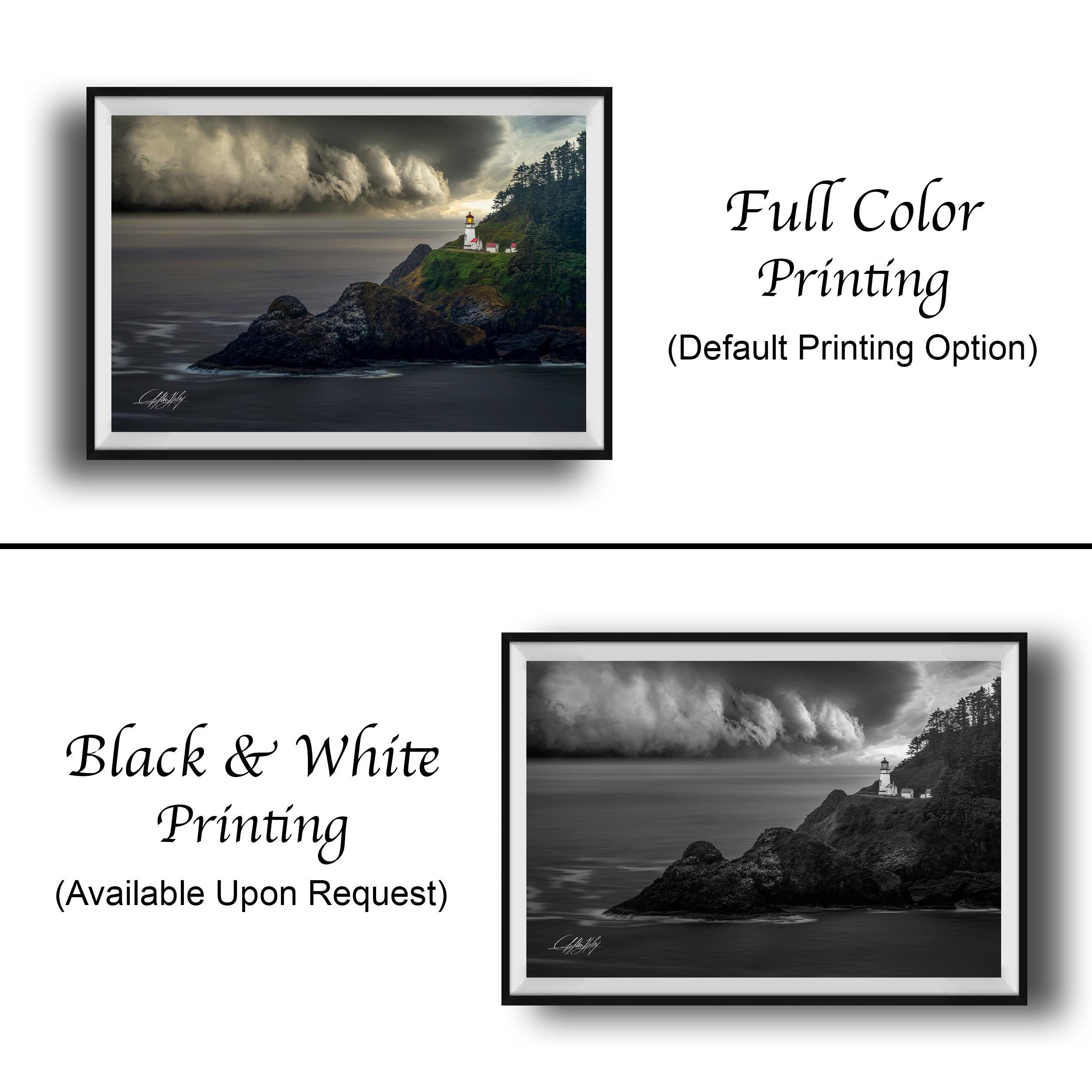 • Made-to-order fine art print featuring the historic Heceta Head Lighthouse, standing strong against stormy skies along the Oregon coast • Artist’s signature authenticates each piece, adding a unique, personal touch • Available as canvas prints (flush mounted) or framed paper prints with a 2" white mat border; acrylic and aluminum/metal prints also include the mat border • Dimensions and customization options available upon request to perfectly fit your space • Ideal gift for lovers of nautical painting, sailing ship art, old ship prints, and coastal wall decor enthusiasts