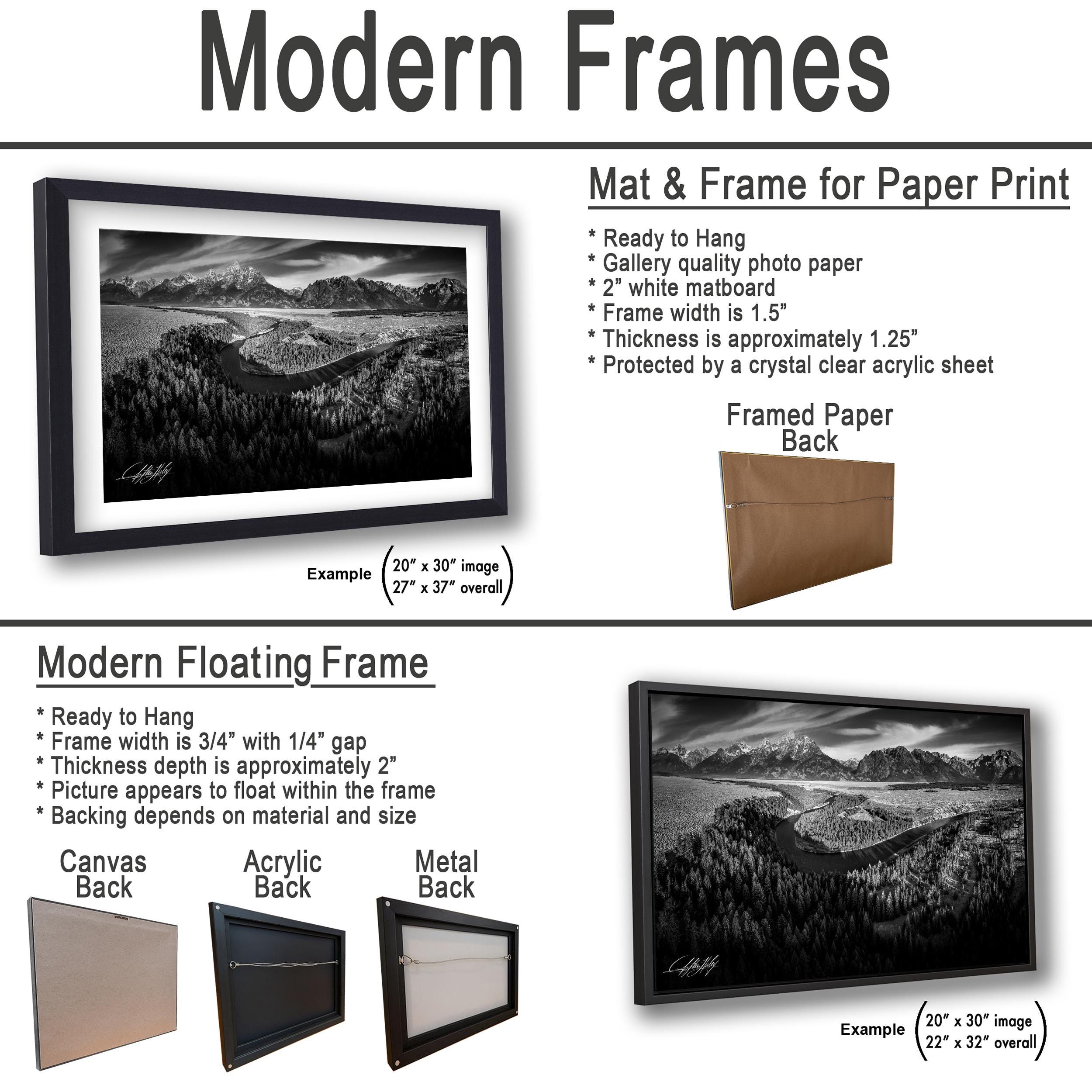 • Made-to-order fine art photography crafted uniquely for you, ensuring a personal and exclusive piece. • Artist’s signature authenticates each print, adding a special touch to your Tetons mountain art. • Available in multiple formats: framed paper prints, acrylics, aluminum/metal prints with a 2" white mat border, or canvas prints with flush mounting—choose what fits your space best.