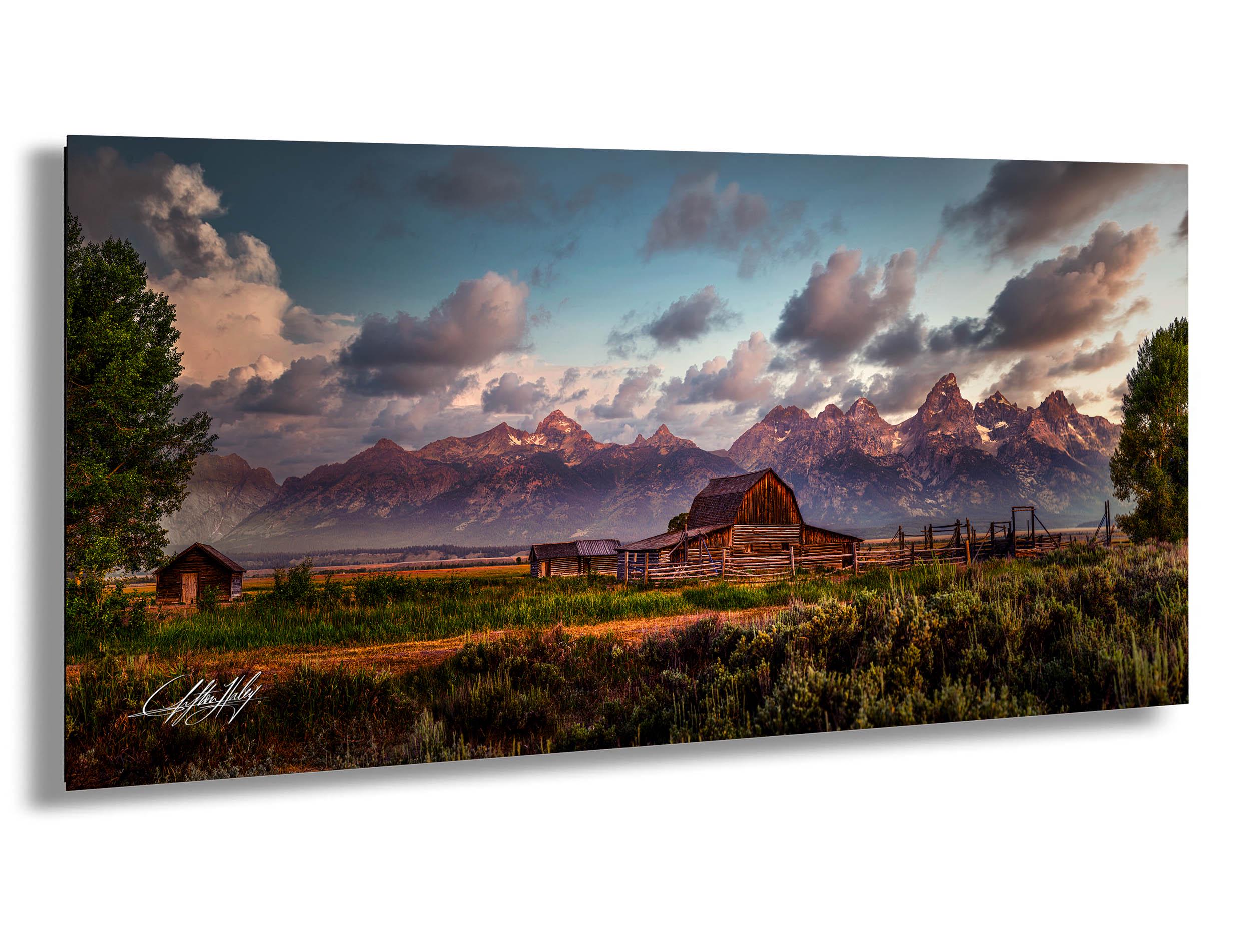 The air was crisp, carrying the scent of dew-soaked grass and the faint, earthy aroma of the surrounding sagebrush. The Tetons, still shadowed by night, began to emerge in the soft pre-dawn light, their jagged peaks cutting through the fading darkness. The barn, with its rustic wooden planks and weathered roof, stood as a witness to the endurance of those who had settled in this harsh, yet breathtaking landscape.