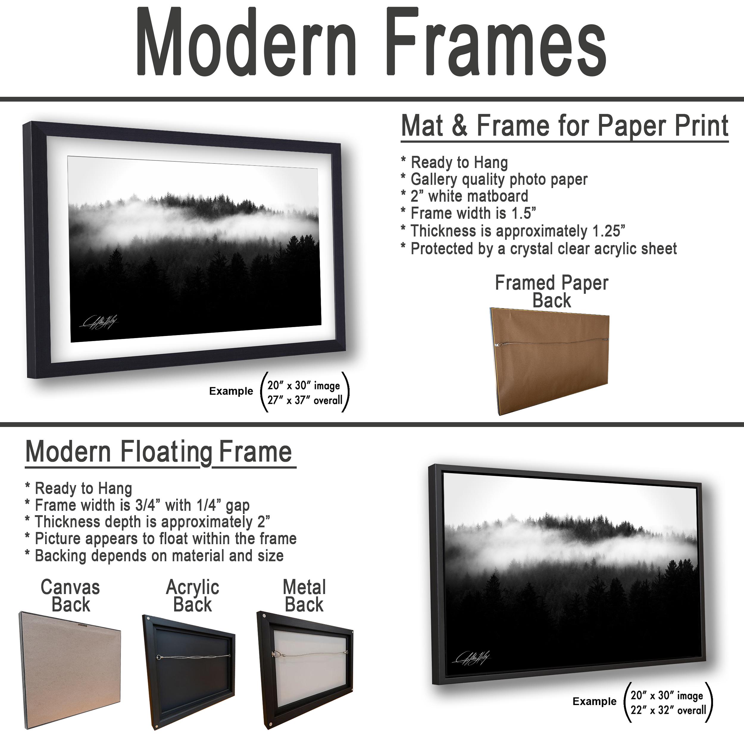 This panoramic canvas print captures the serene beauty of morning fog rolling over ancient redwoods in the Redwood National Forest. Each custom fine art piece is made-to-order, featuring the artist's signature in the bottom corner to authenticate its uniqueness. The canvas print is flush mounted to the frame, emphasizing the misty forest atmosphere without a distracting border.