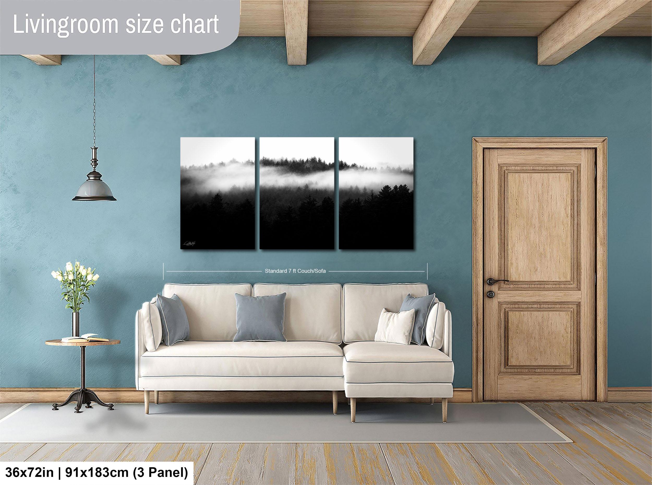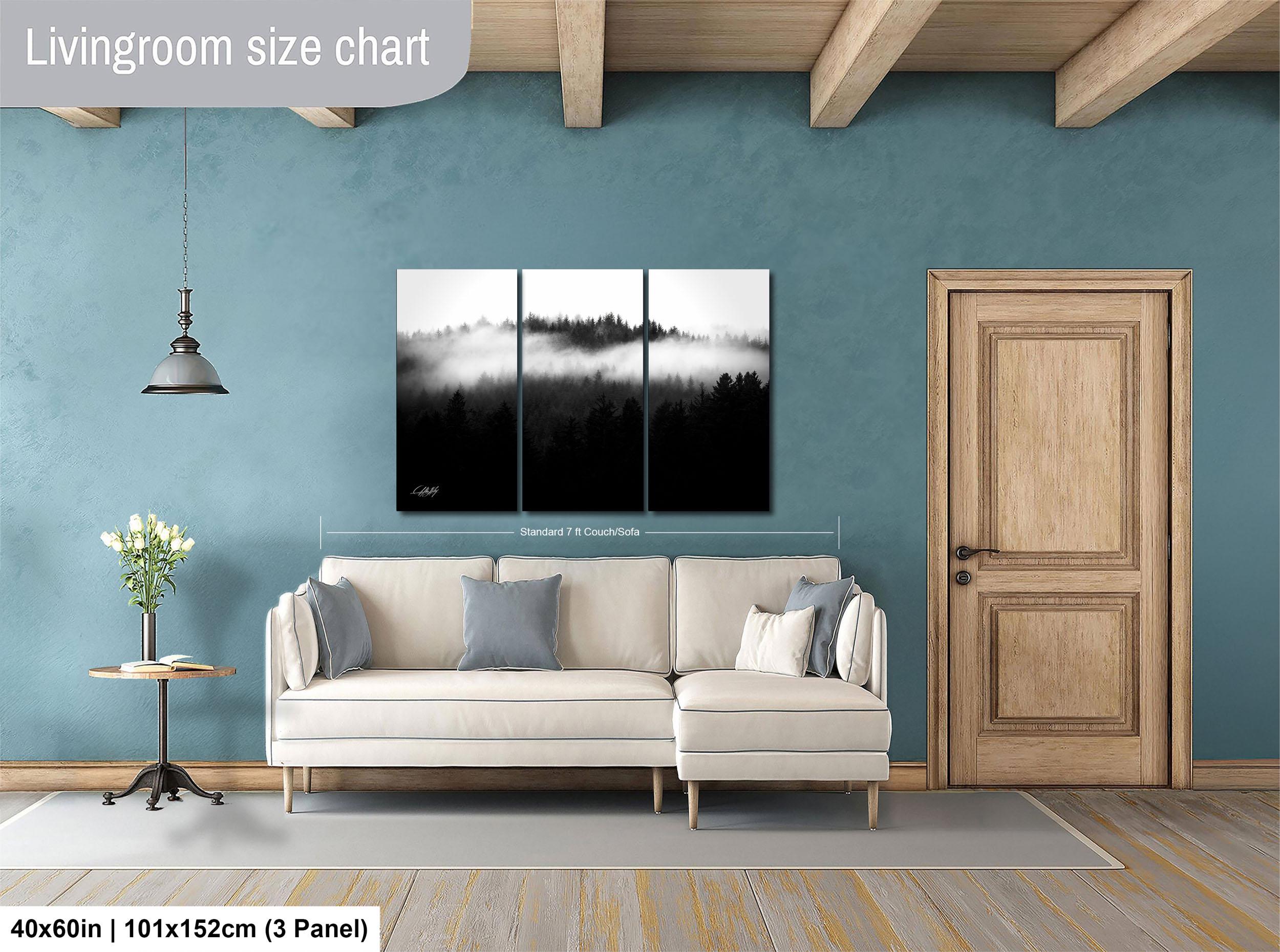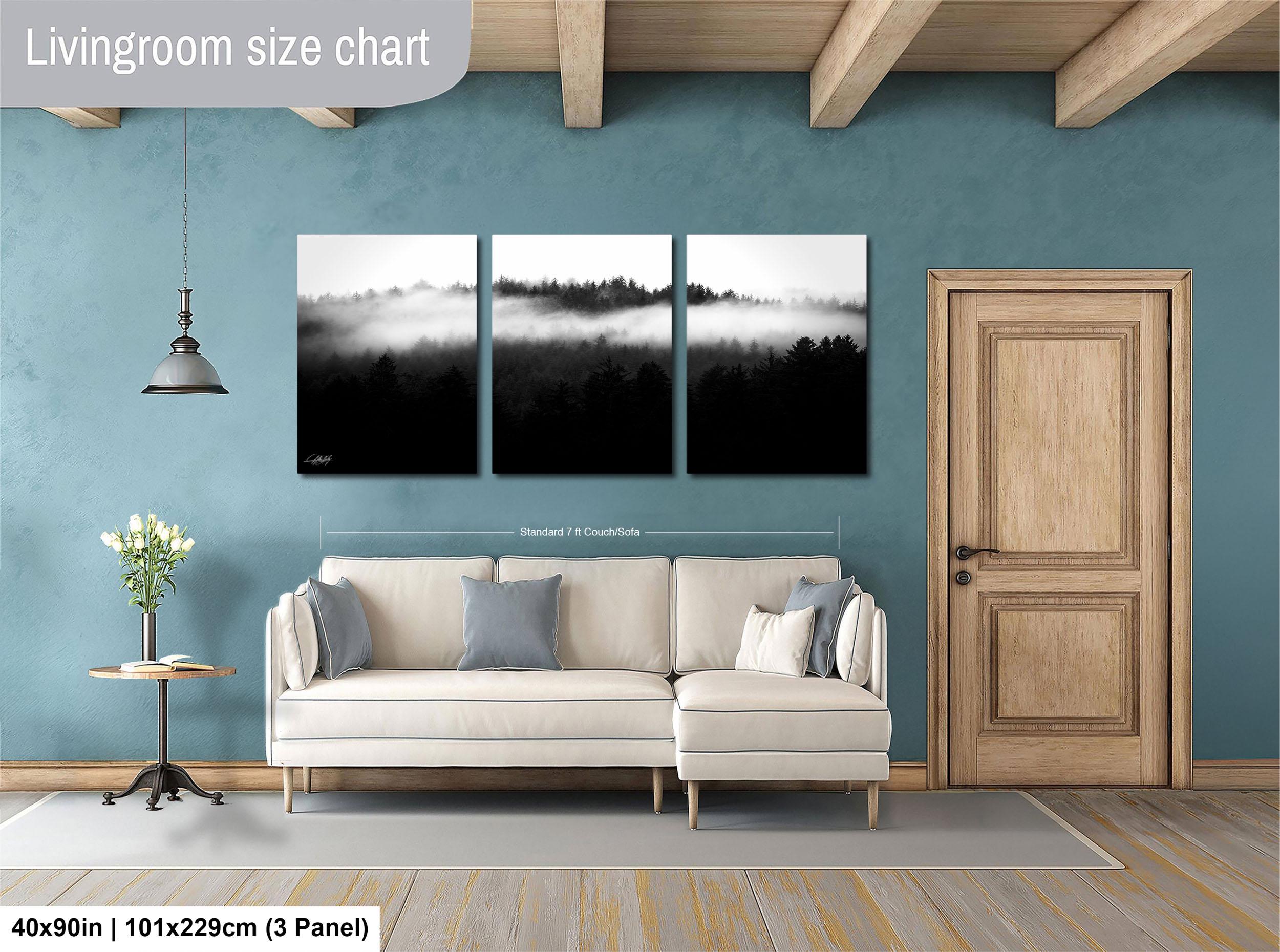 Discover this foggy forest apartment wall art, a calming relaxing art piece that brings cottagecore charm and misty pine tree landscapes into your living room.