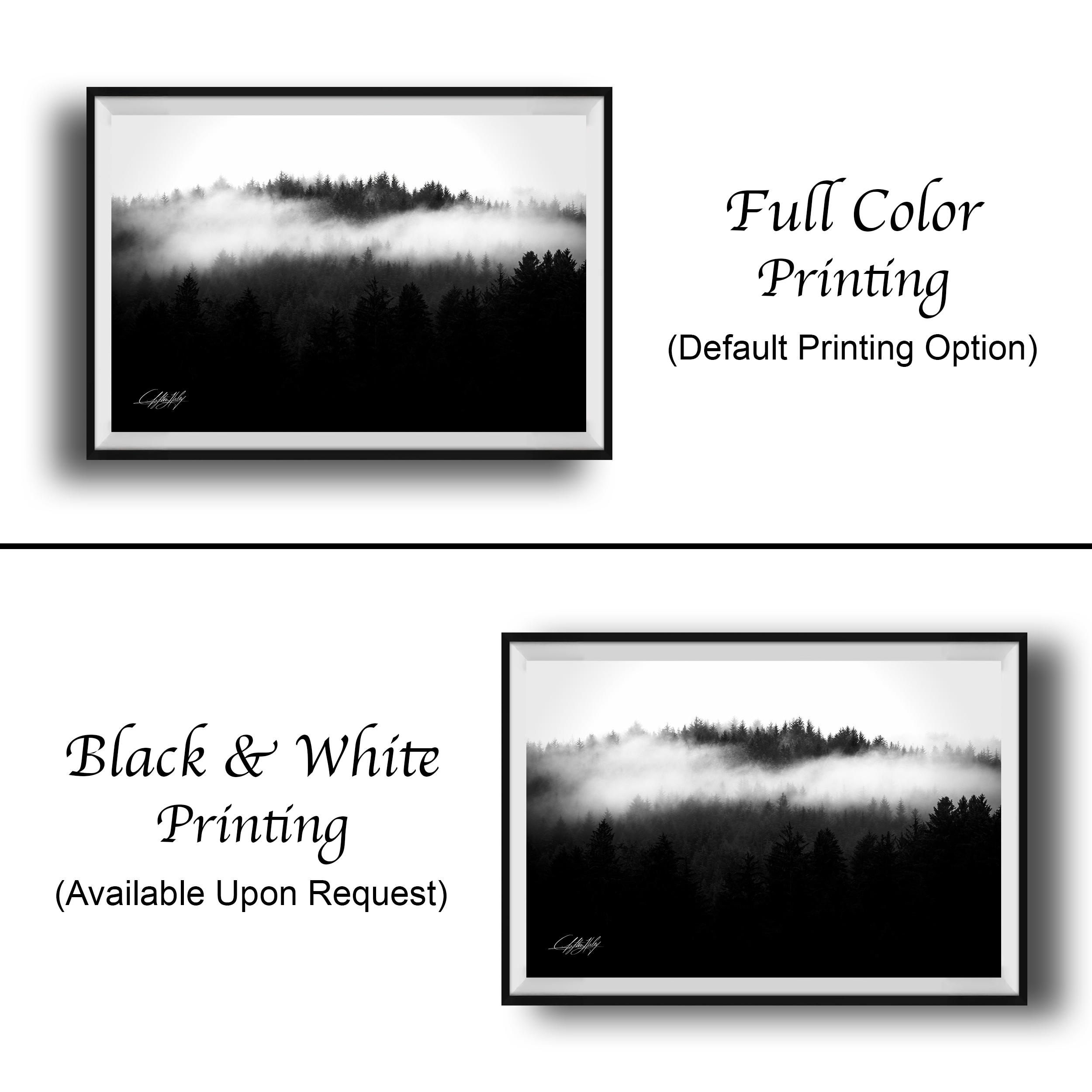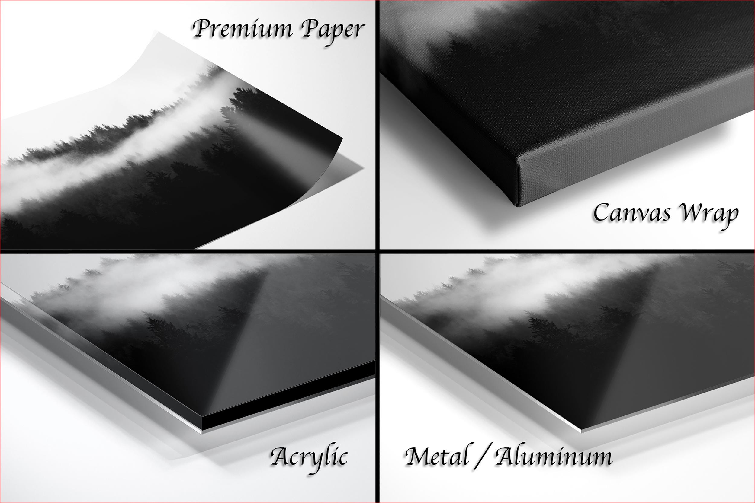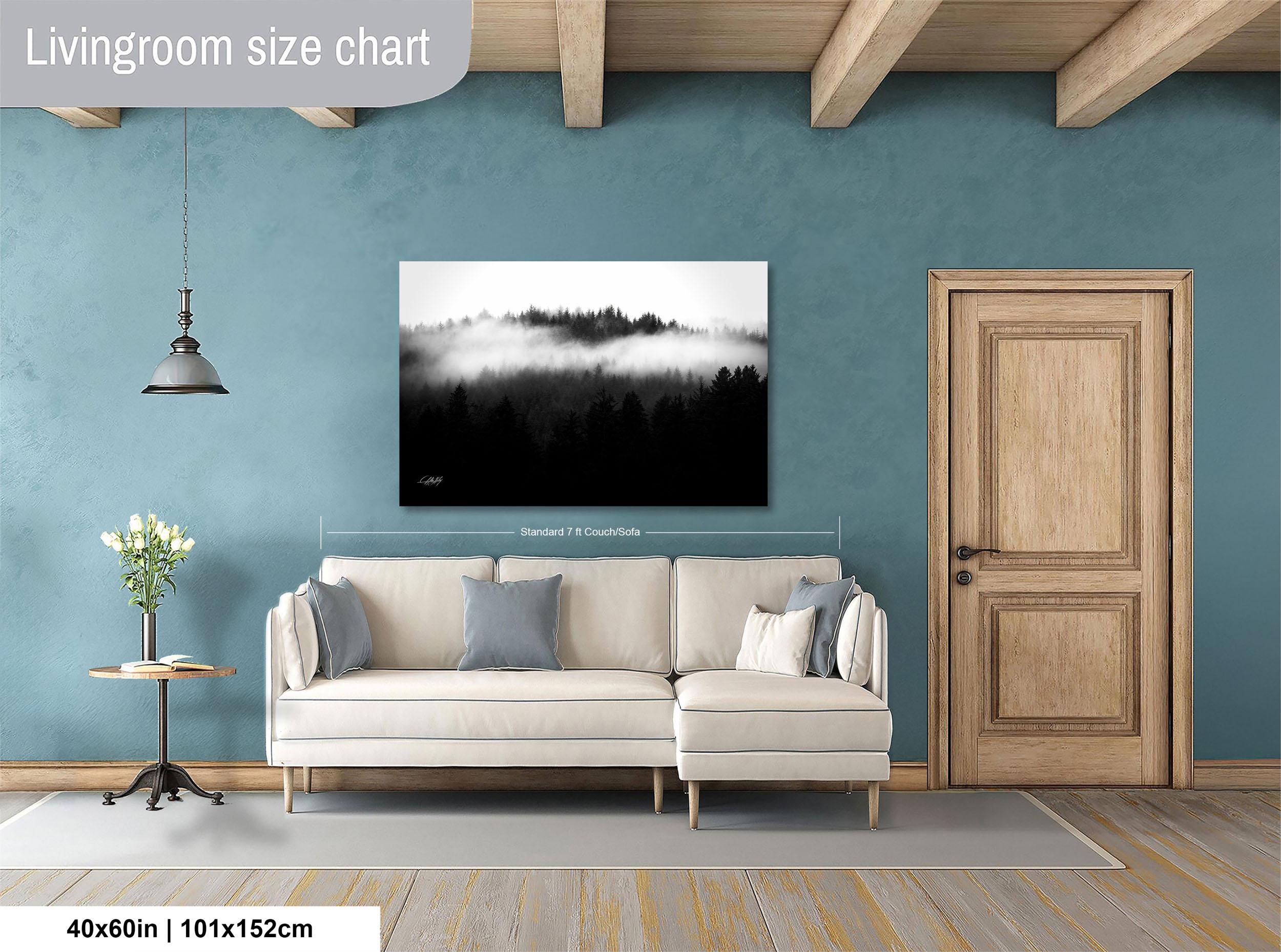 Bring nature's peacefulness indoors with this misty morning fog art, ideal for lovers of pine trees forest scenes and cottagecore aesthetics.