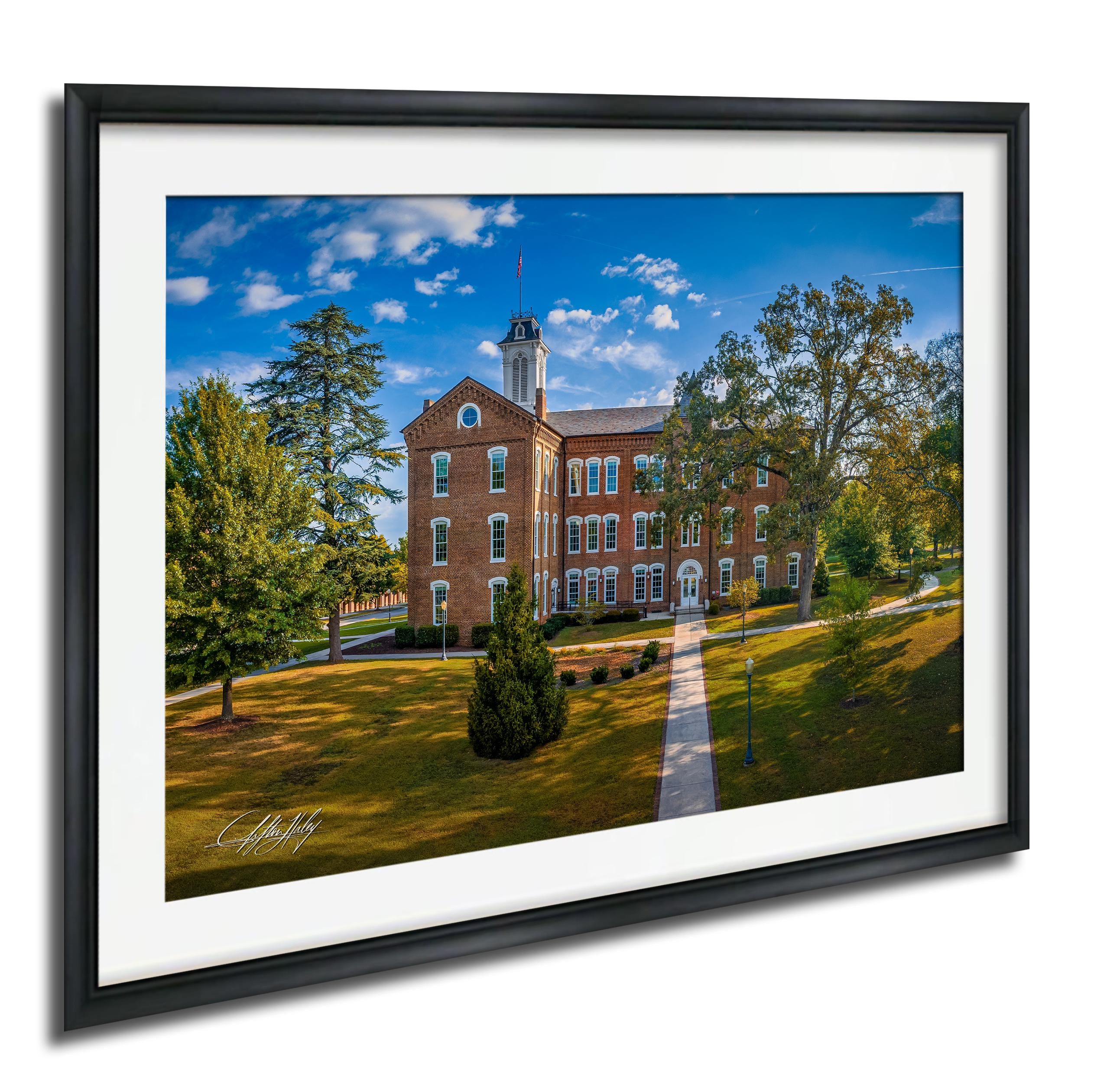 Nestled against the Smoky Mountains, Anderson Hall stands as a symbol of over 200 years of academic tradition. This brick building print reflects the golden light campus scene, evoking the peaceful early morning atmosphere. The artwork honors Isaac Anderson's legacy and the enduring spirit of this historic campus.