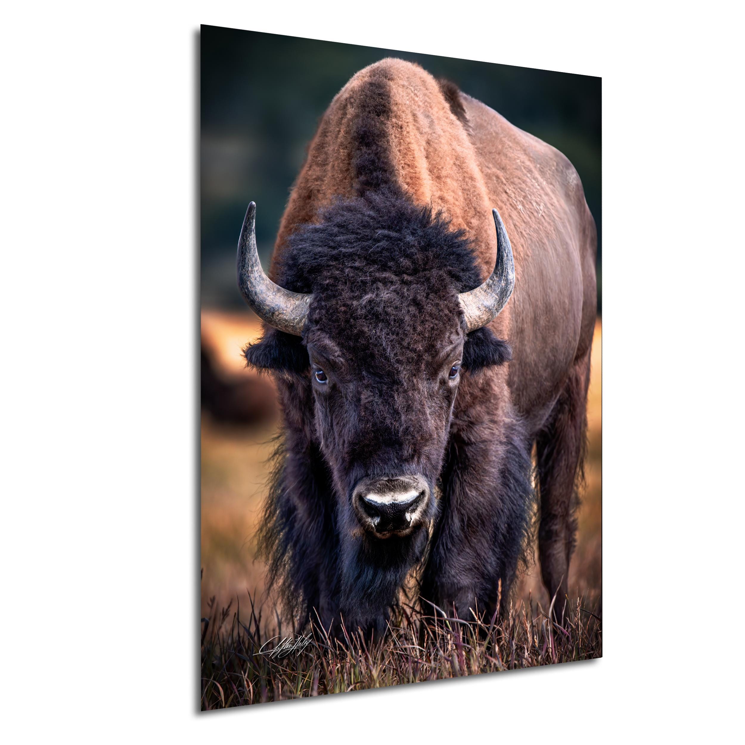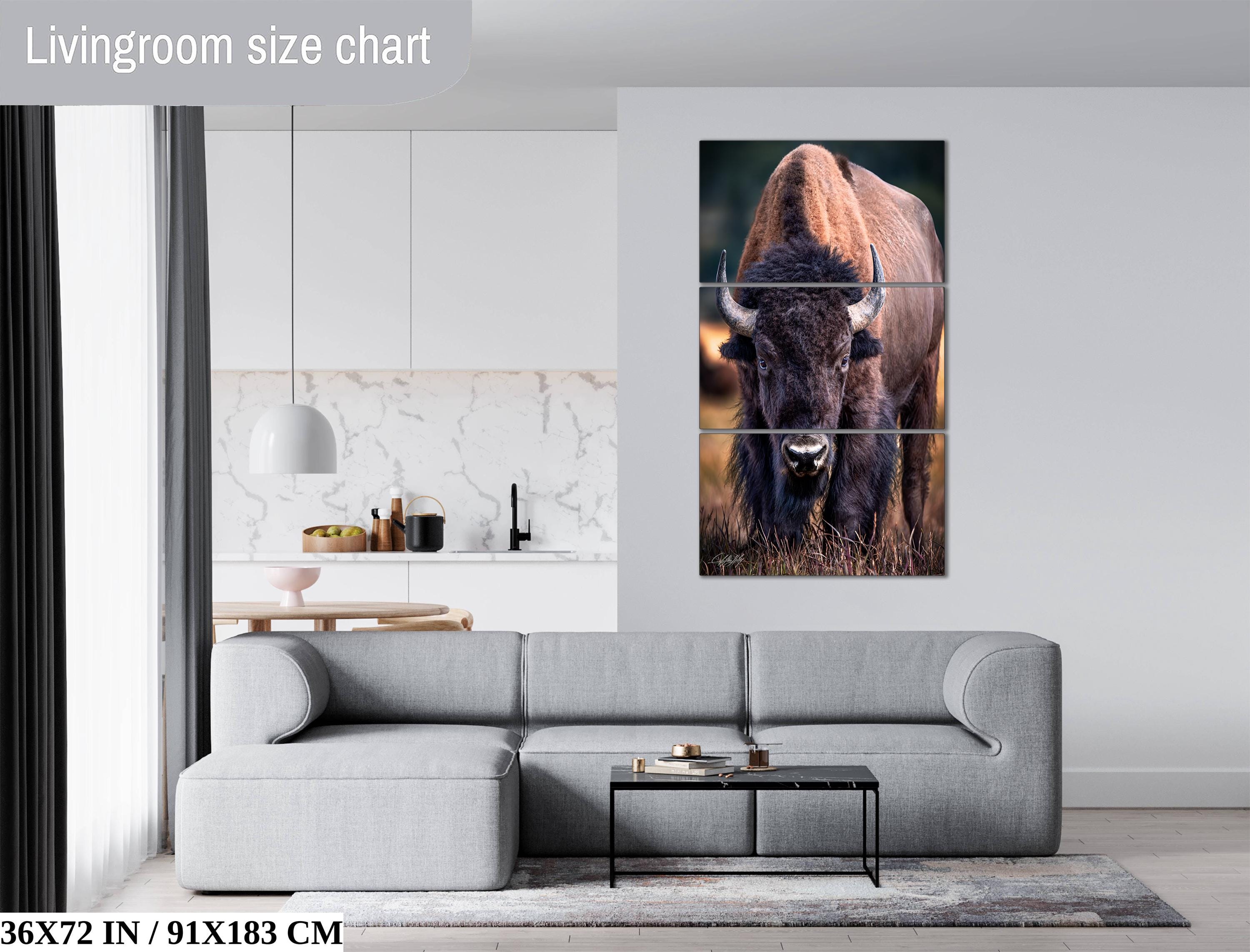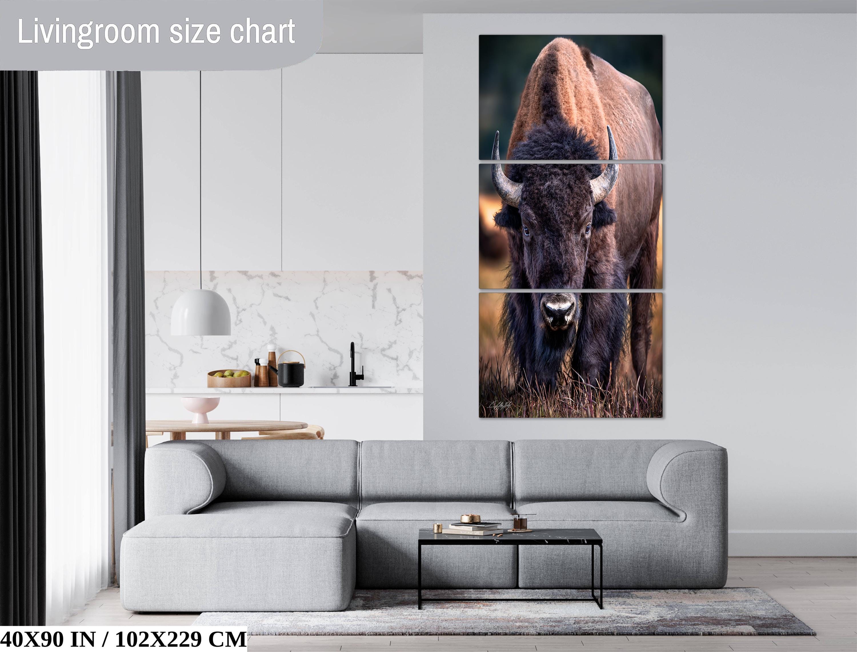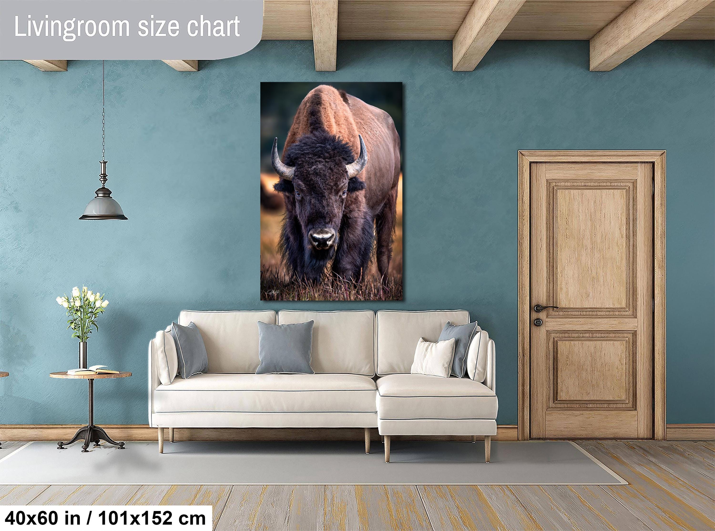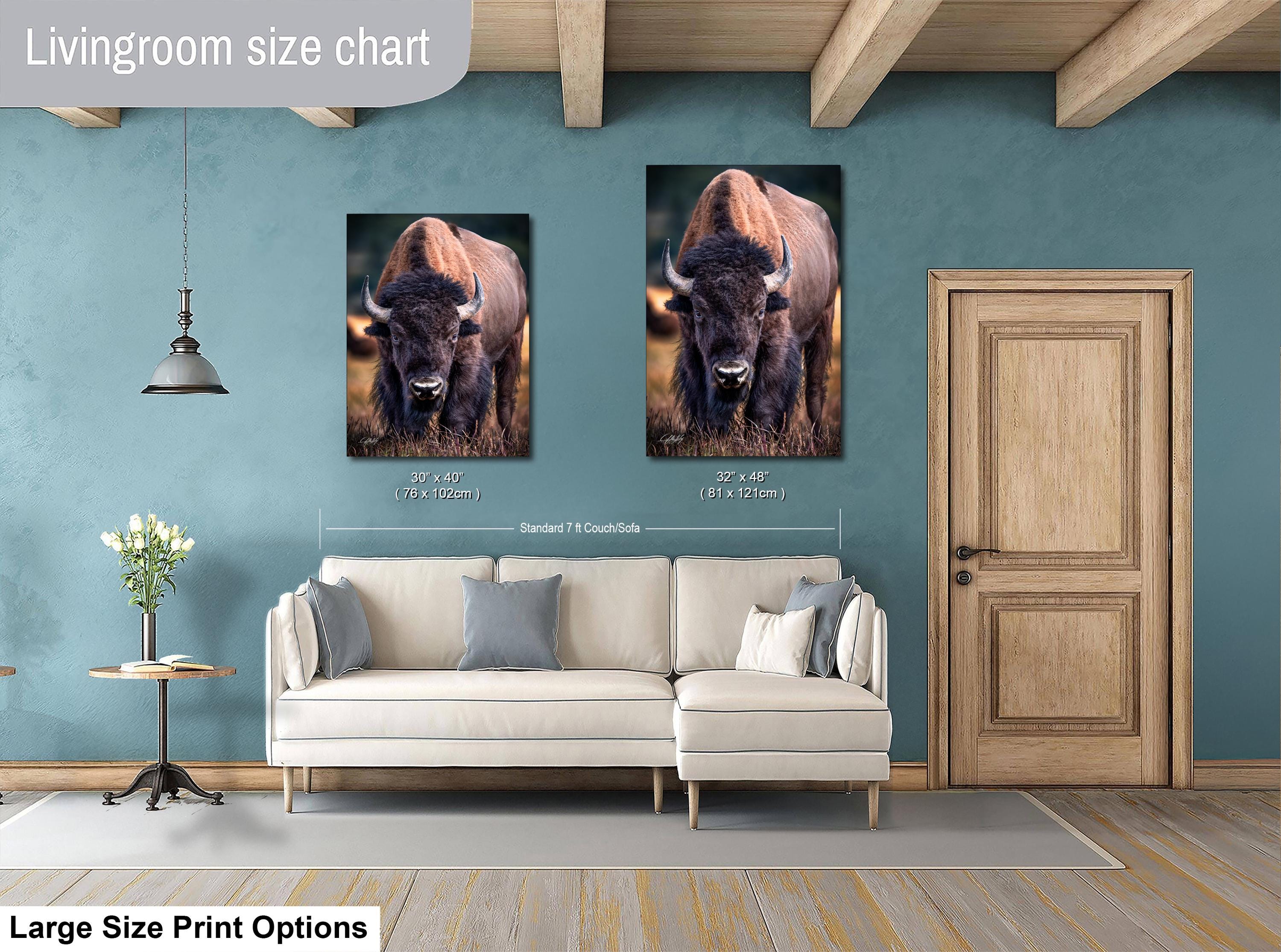 Experience the rugged beauty of American bison with this large canvas print, a perfect buffalo wall art piece to enrich rustic home office and wildlife decor.