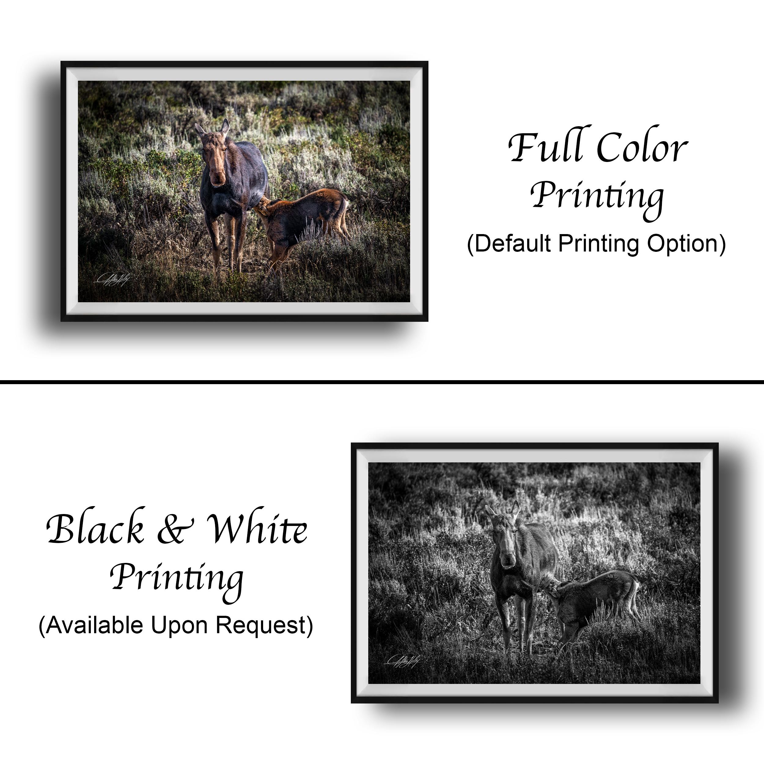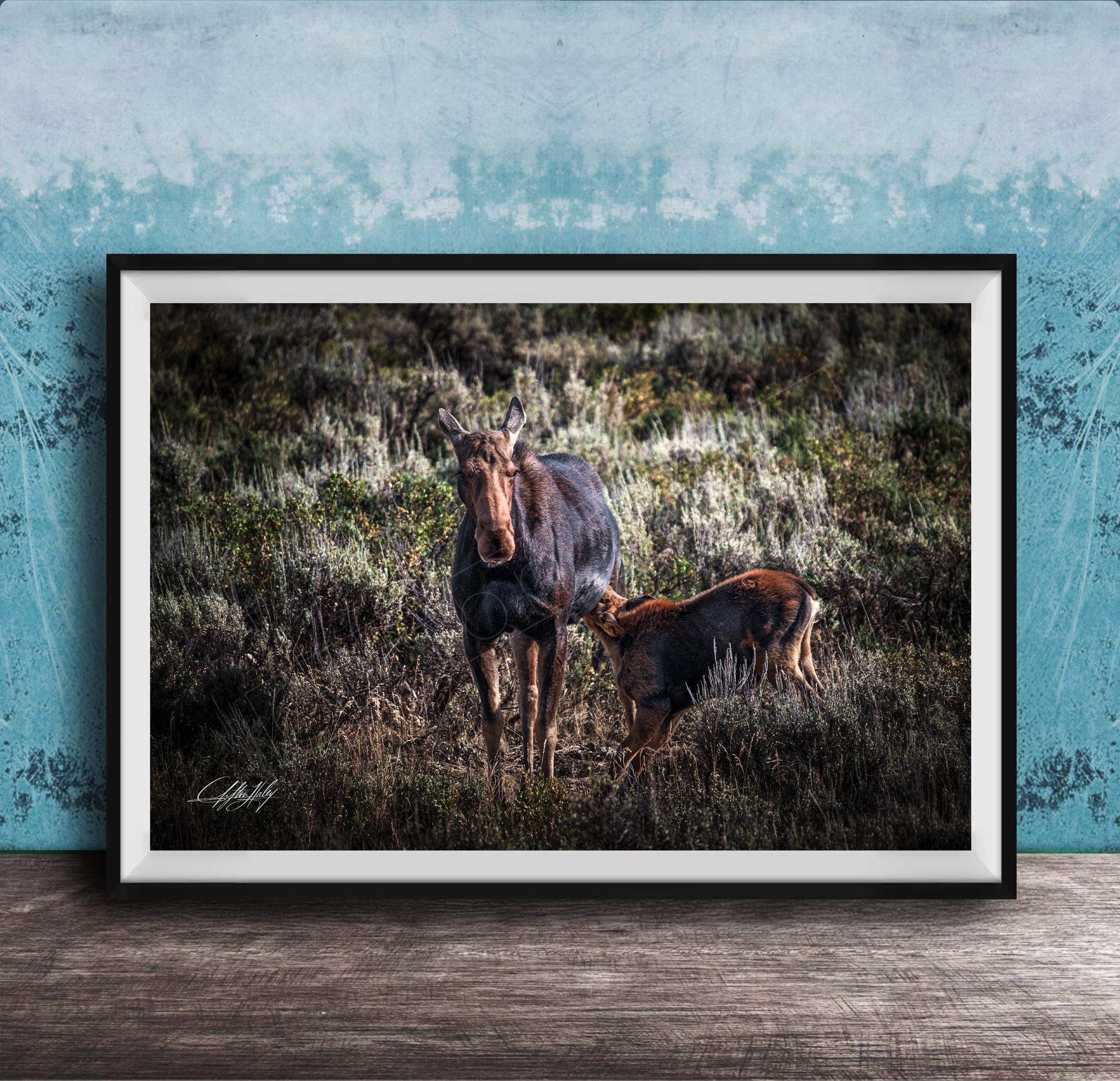 Celebrate the timeless bond of motherhood and the beauty of outdoor nature with this fine art moose print. Whether as a gift for a moose lover or a stunning addition to your wildlife photography collection, this piece brings the essence of the wild indoors.