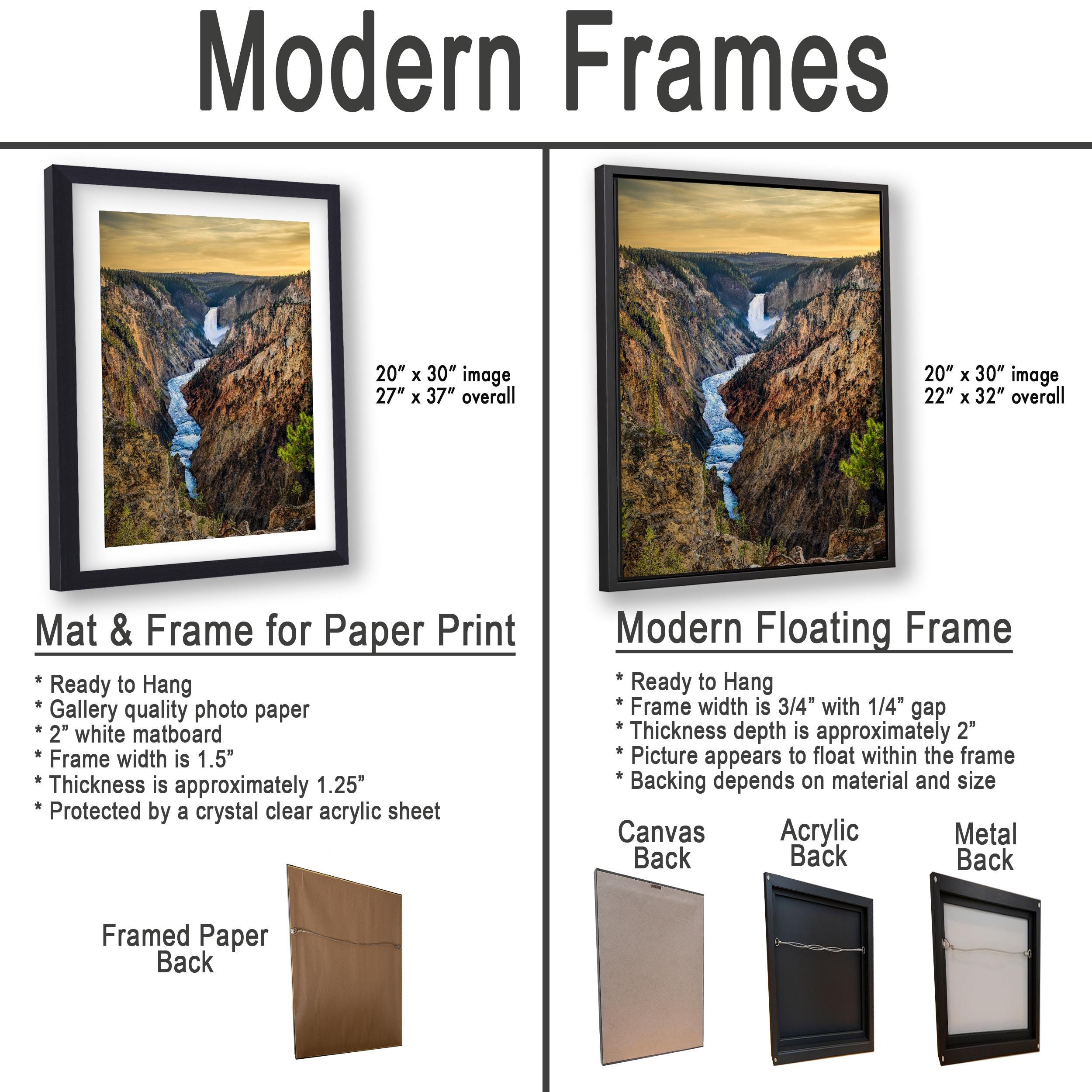3.1) Only framed paper prints, acrylics and aluminum/metal prints will have a 2" white mat border. 3.2) Canvas prints will be a flush mounted (no mat border) to the frame.